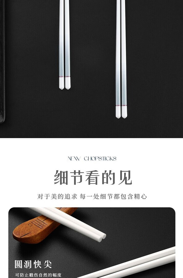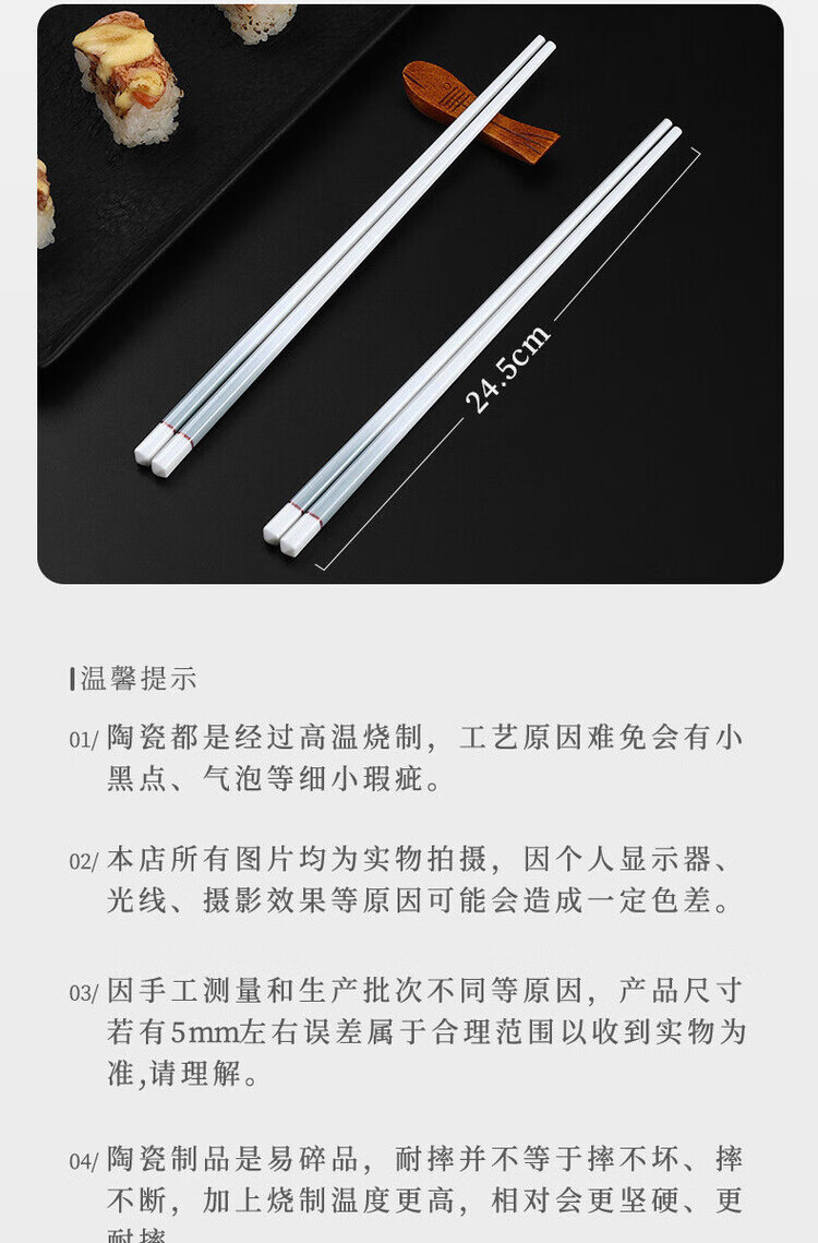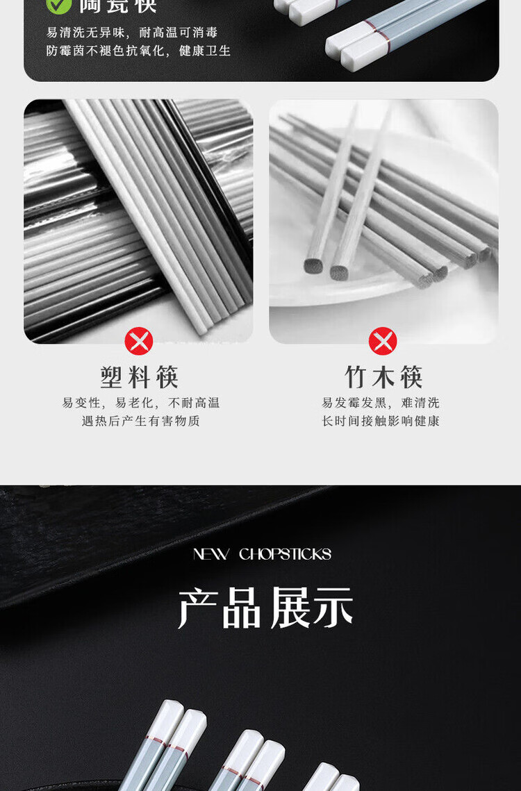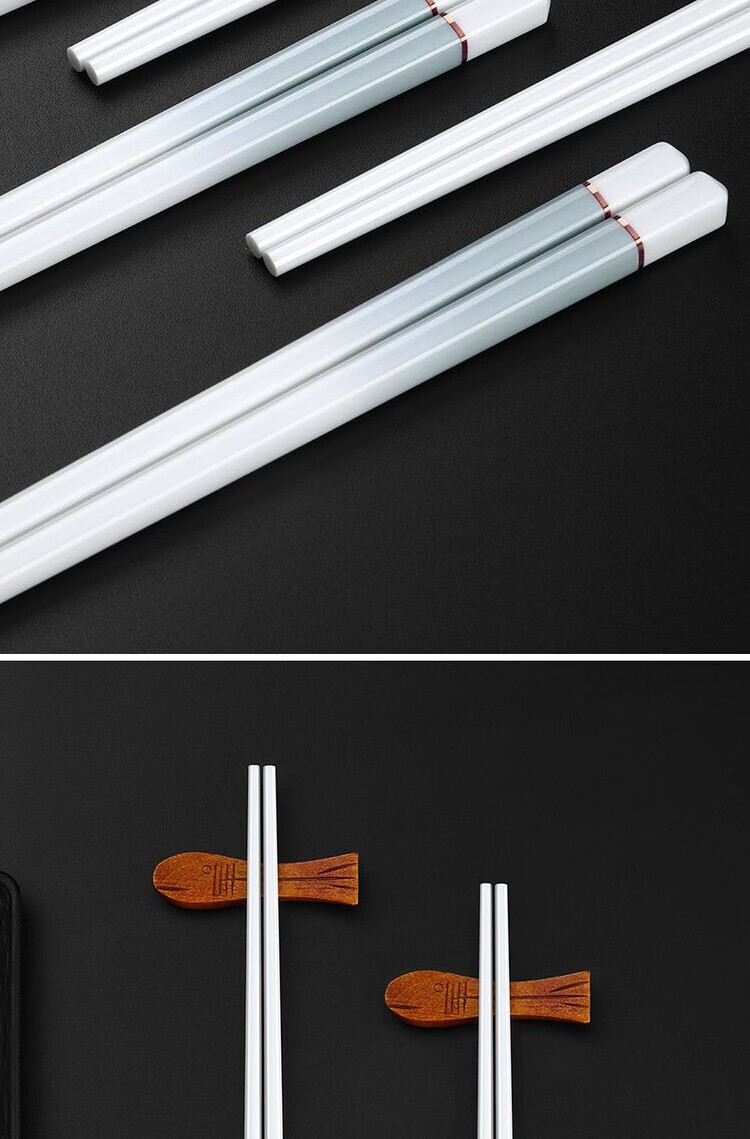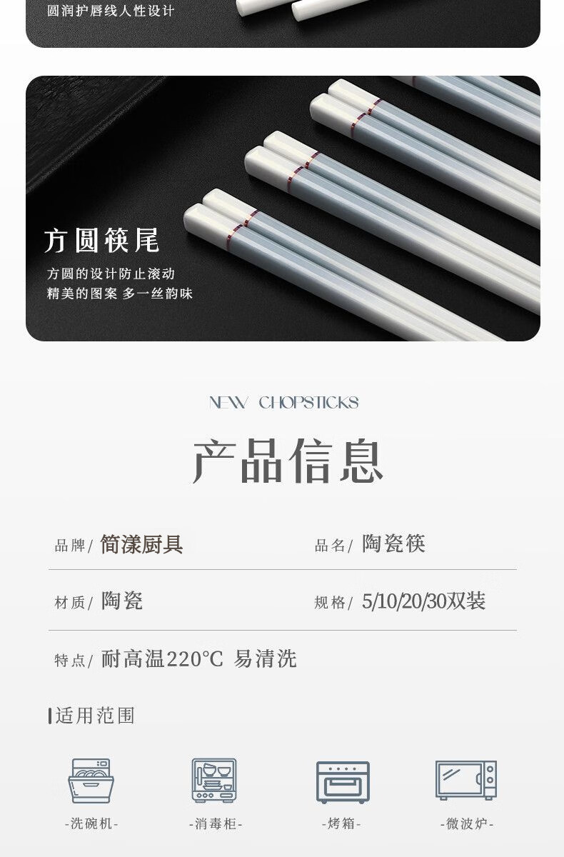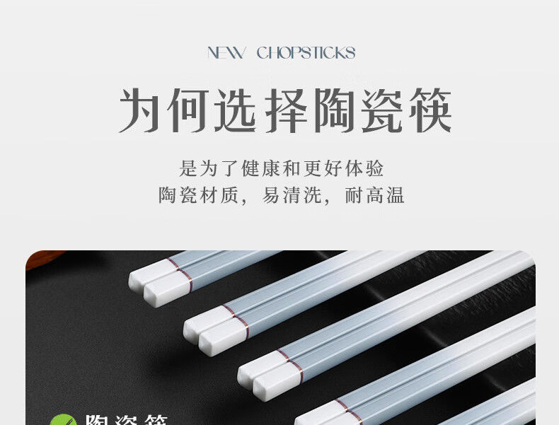 简漾景德镇陶瓷筷子家用高档防霉易清洗耐高温家庭餐具防滑新款食品级 简约灰陶瓷筷-5双