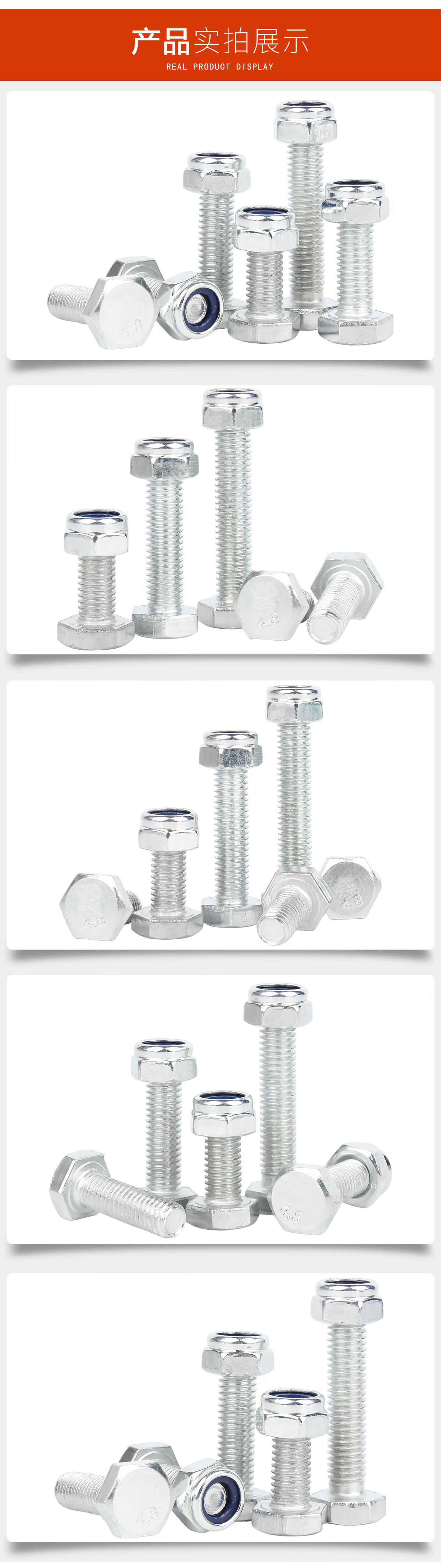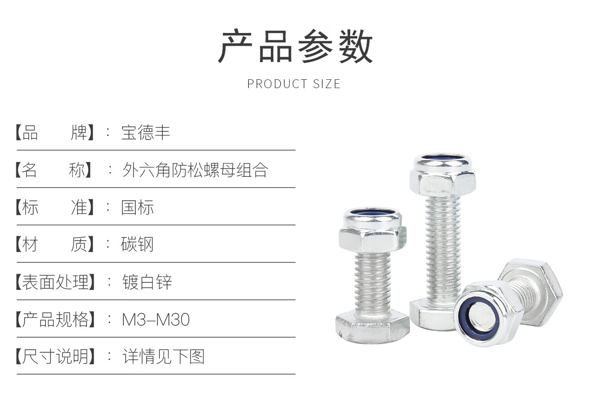 宝德丰4.8级镀锌外六角螺丝螺母套装防松螺丝母加长螺栓组合大全M3-M30 M3x6[100套]