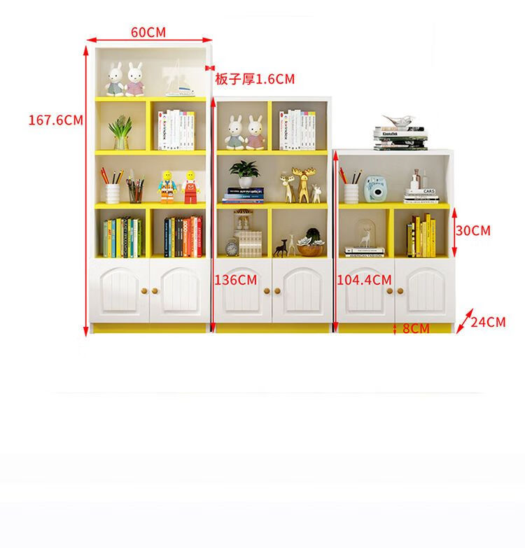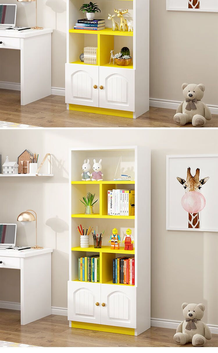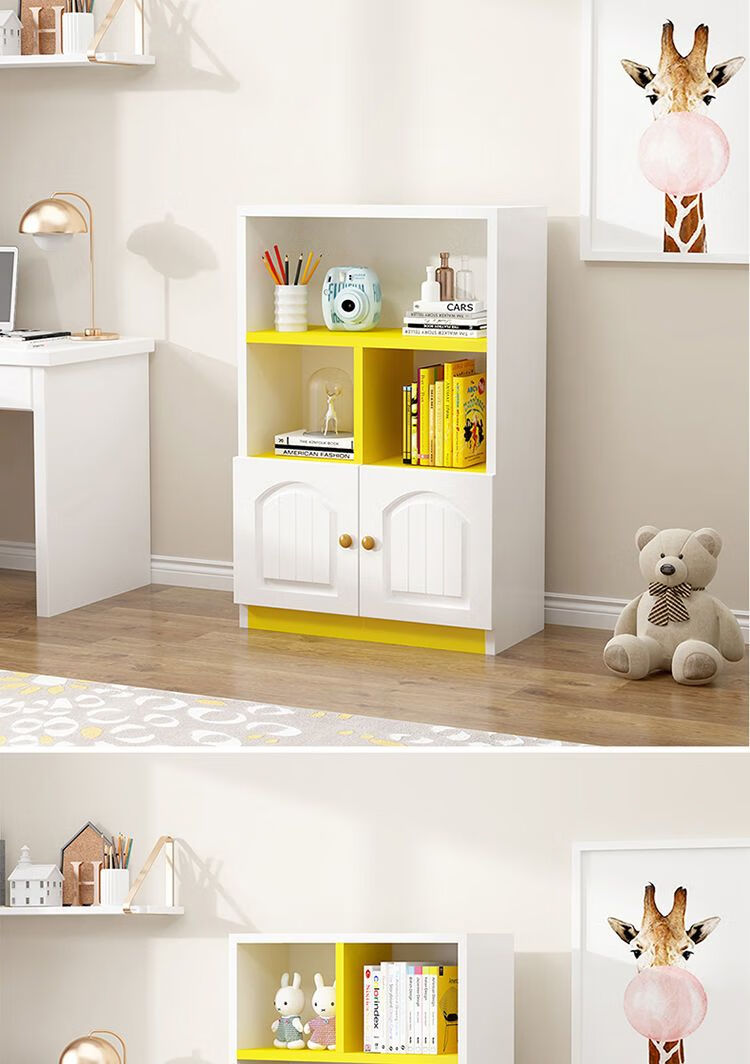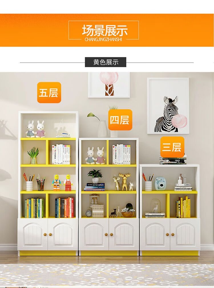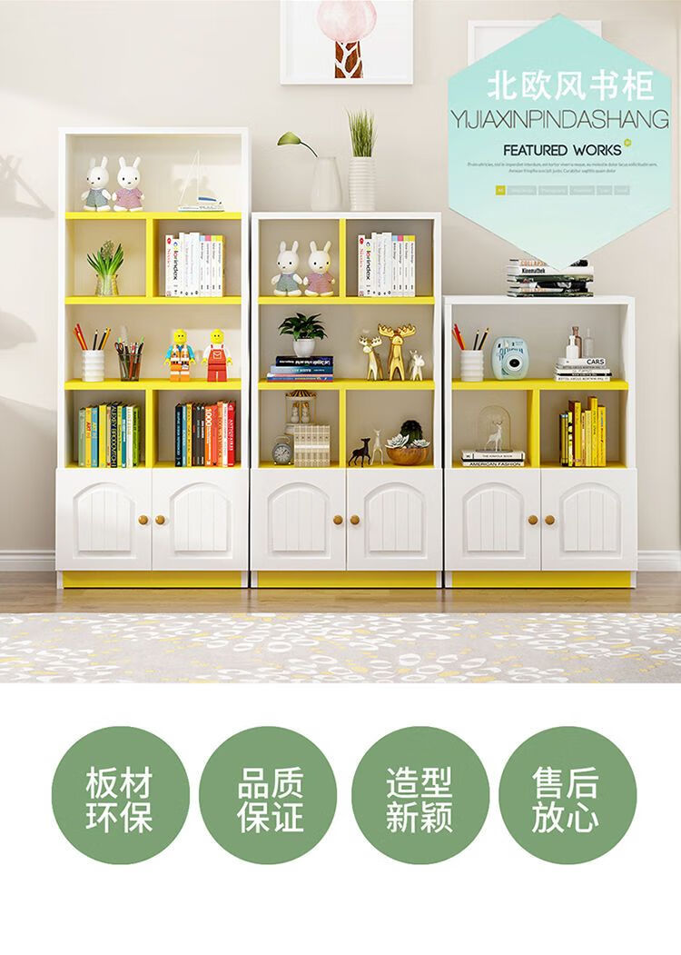 弘星隆北欧实木儿童书柜书架置物架简约现代玩具收纳柜储物柜落地经济型 (实木柜体)60长三层黄色