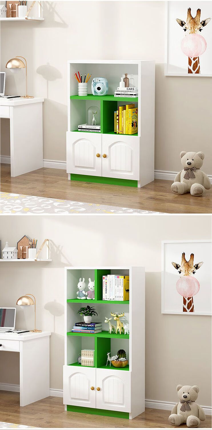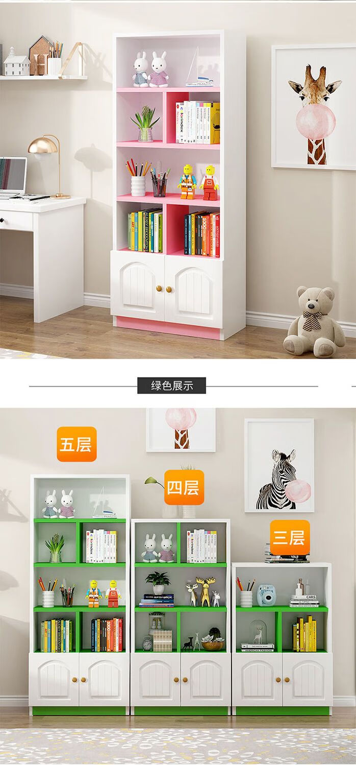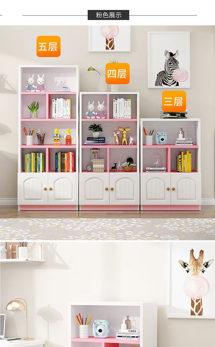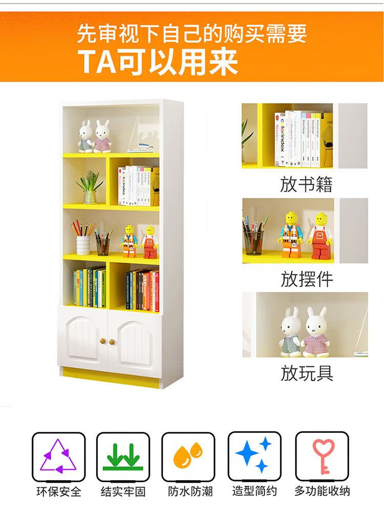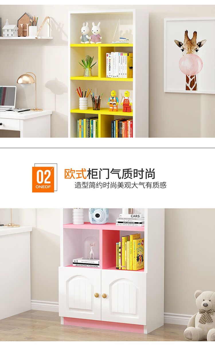 弘星隆北欧实木儿童书柜书架置物架简约现代玩具收纳柜储物柜落地经济型 (实木柜体)60长三层黄色