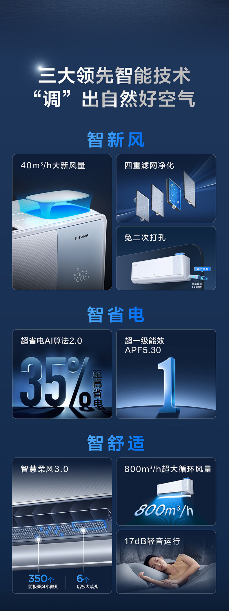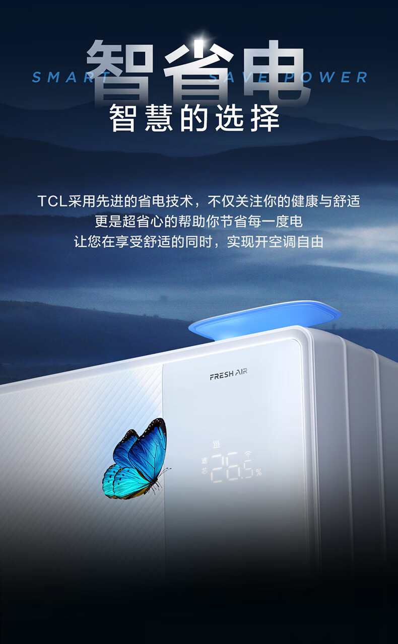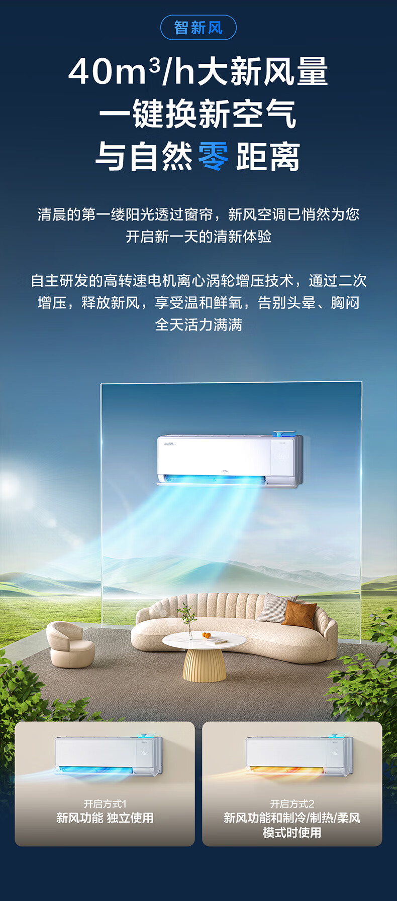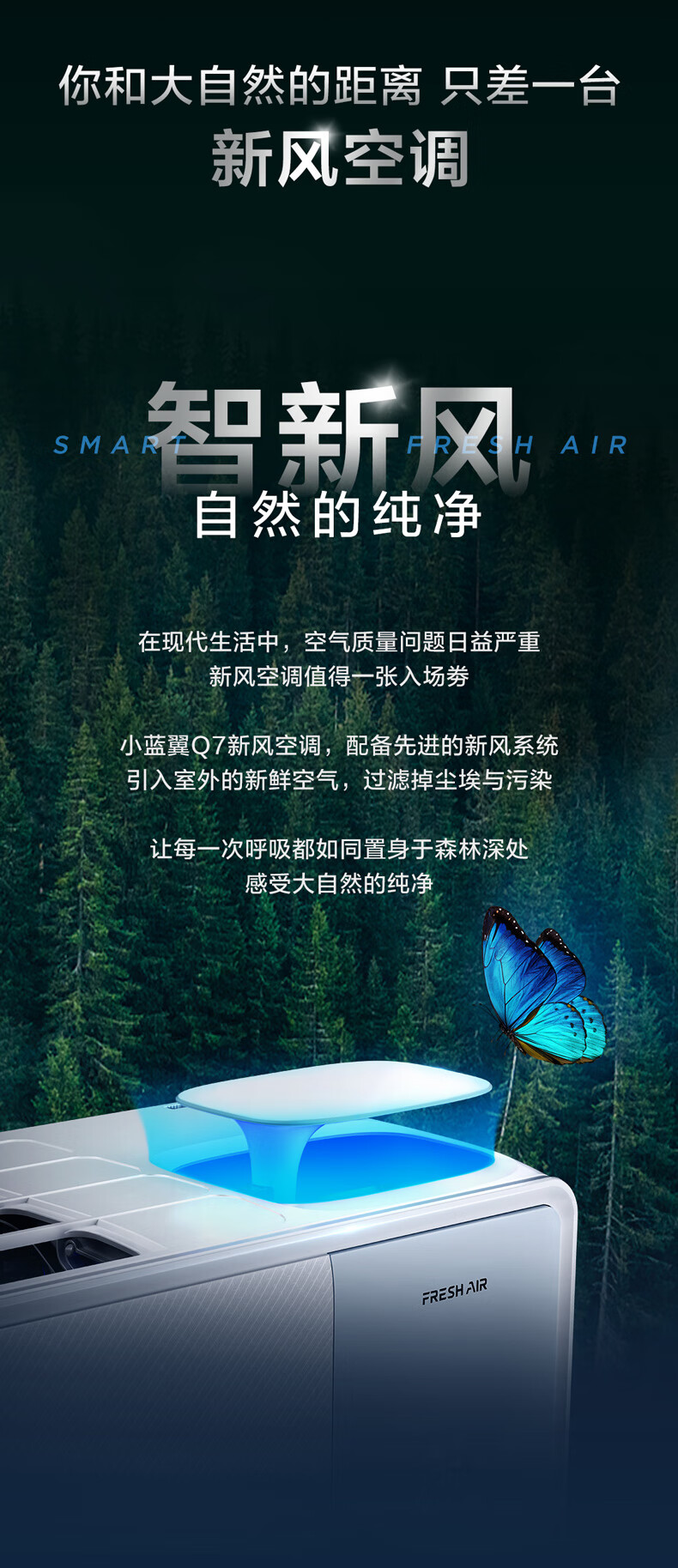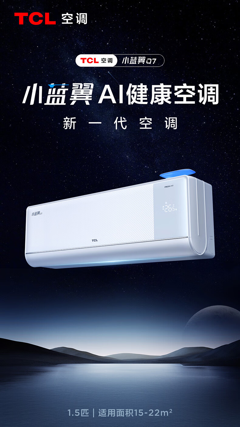 TCL新风空调 1.5匹新一级能效 小蓝翼Q7 新风挂机 省电变频冷暖 卧室壁挂式大新风量 以旧换新补贴 1.5匹 一级能效 Q7新风空调