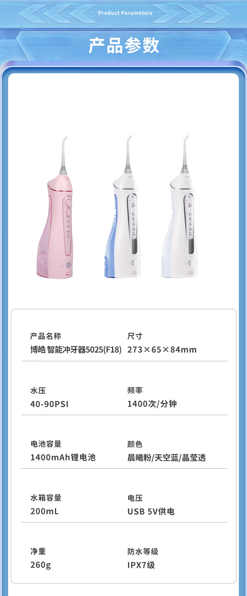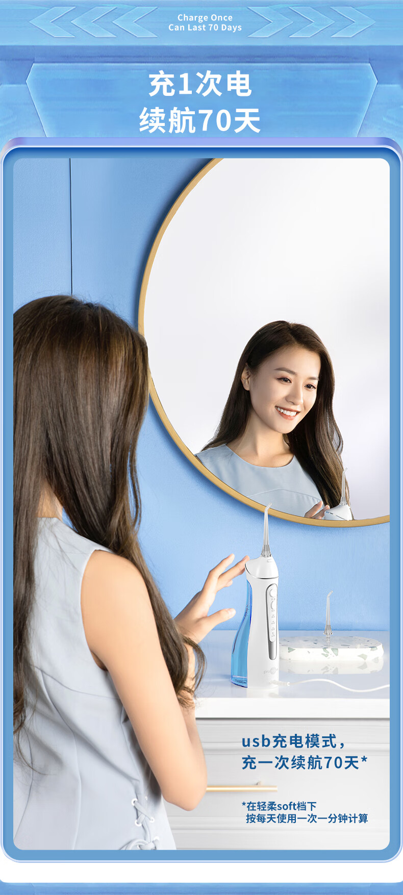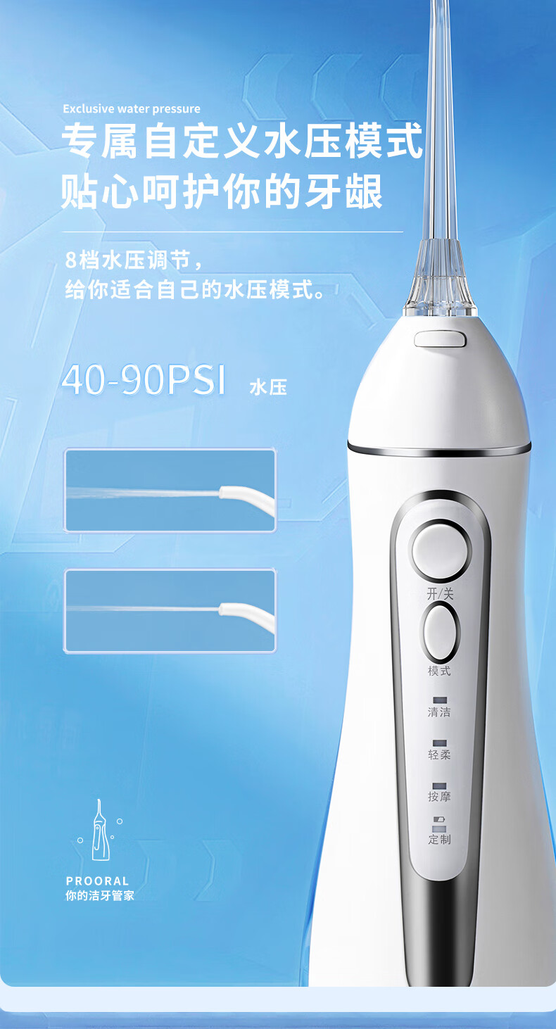 博皓(prooral)冲牙器便携家用洗牙器冲洗器水牙线正畸专用电动洁牙器牙垢去除器 送朋友父母礼物 5025 白色