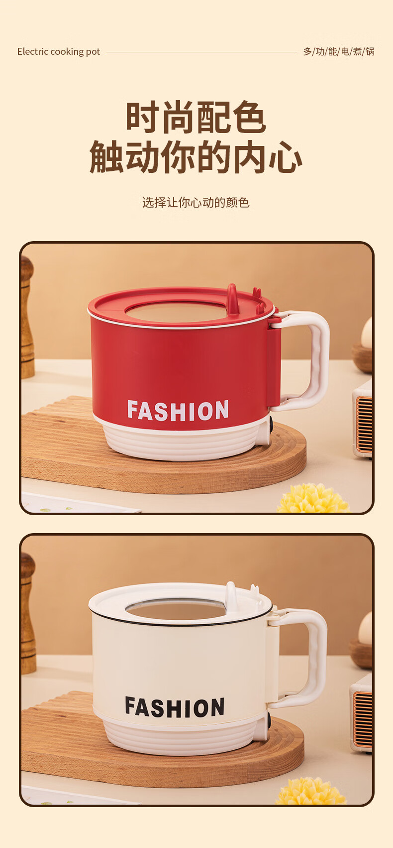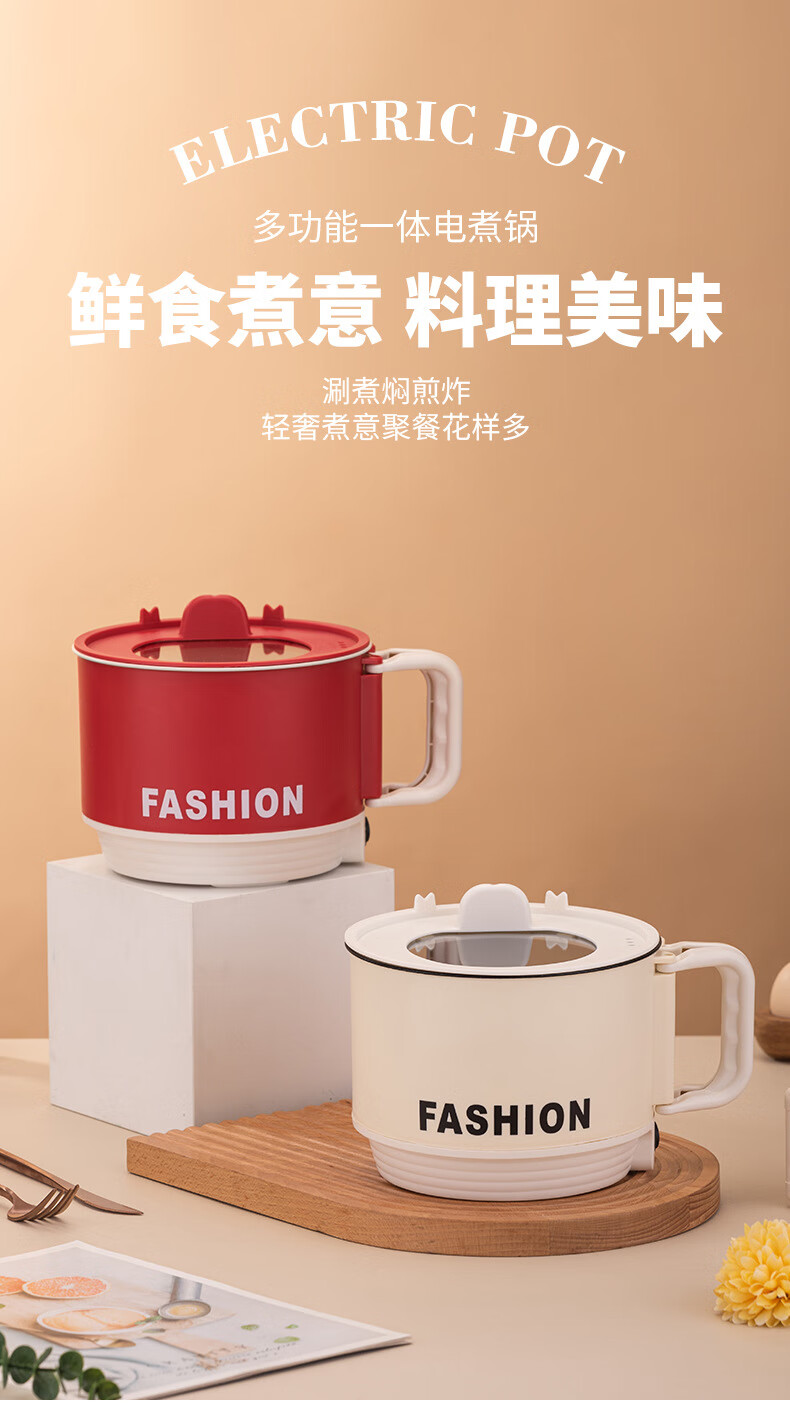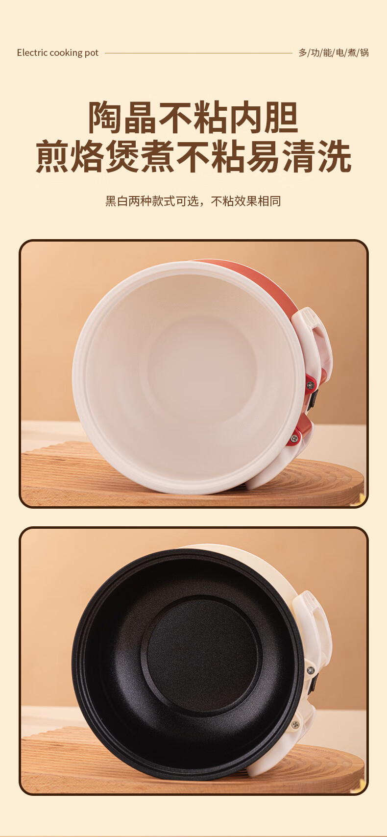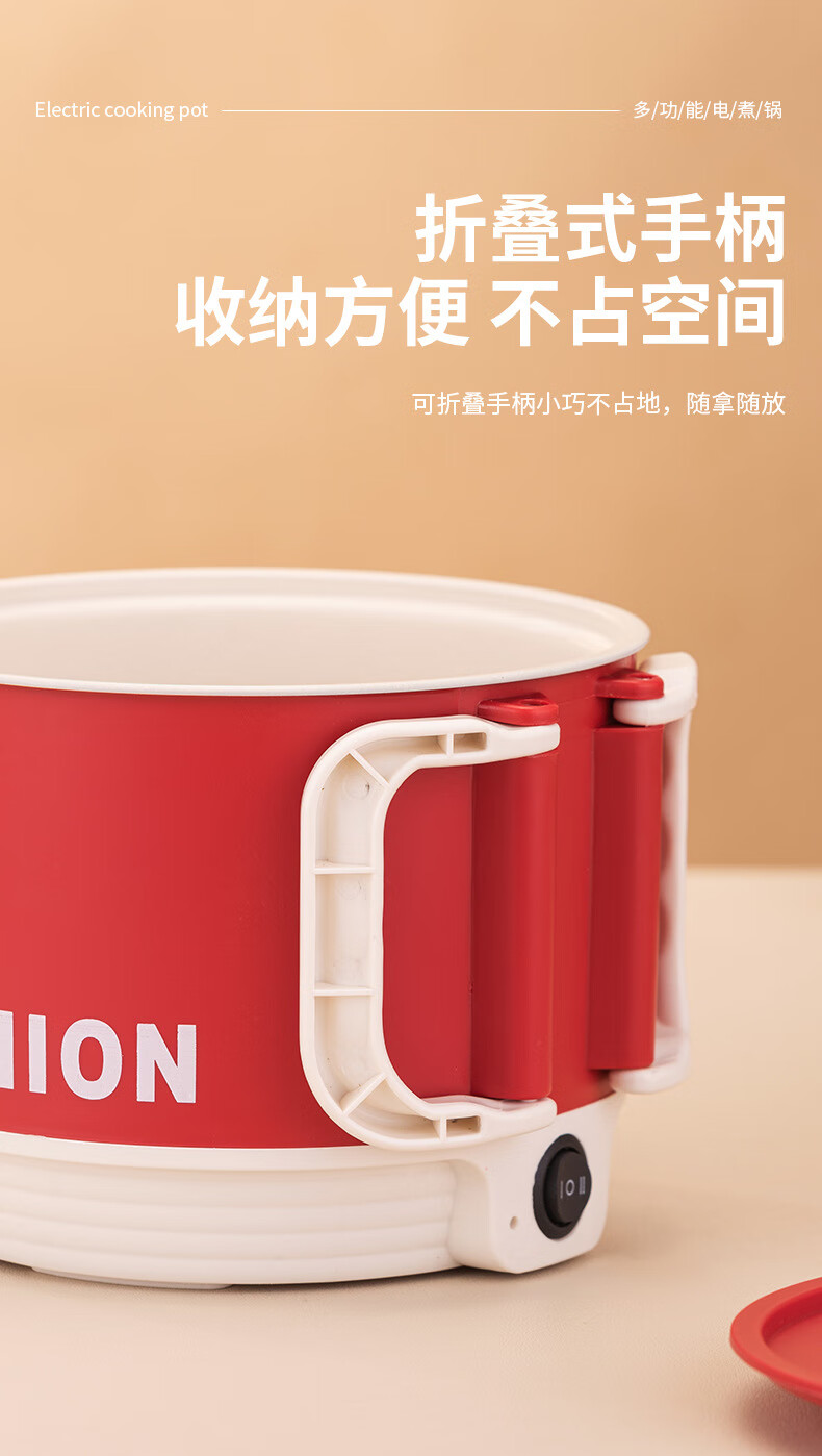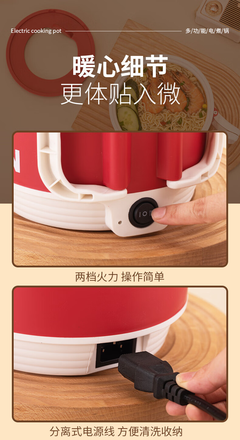折叠电煮锅多功能泡面锅家用小火锅学生宿舍锅迷你小型小电锅速食 18cm米白色折叠把(黑色内胆220v