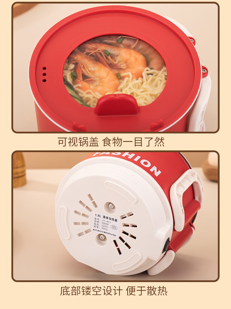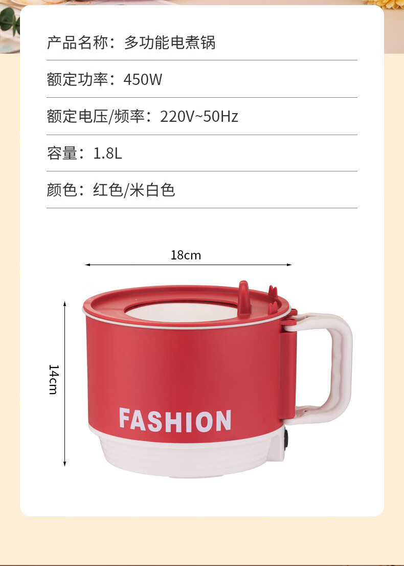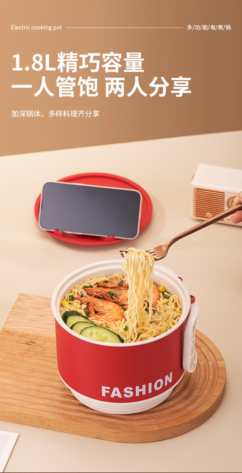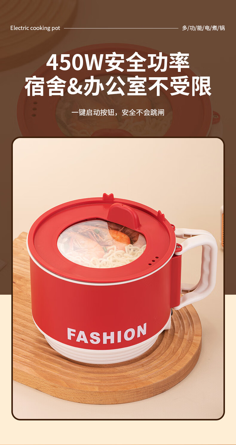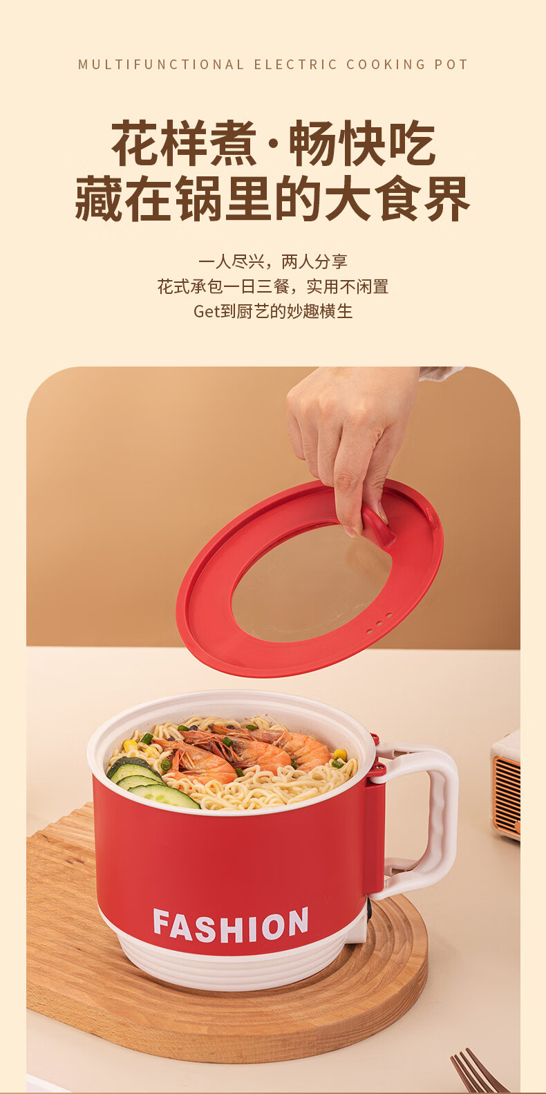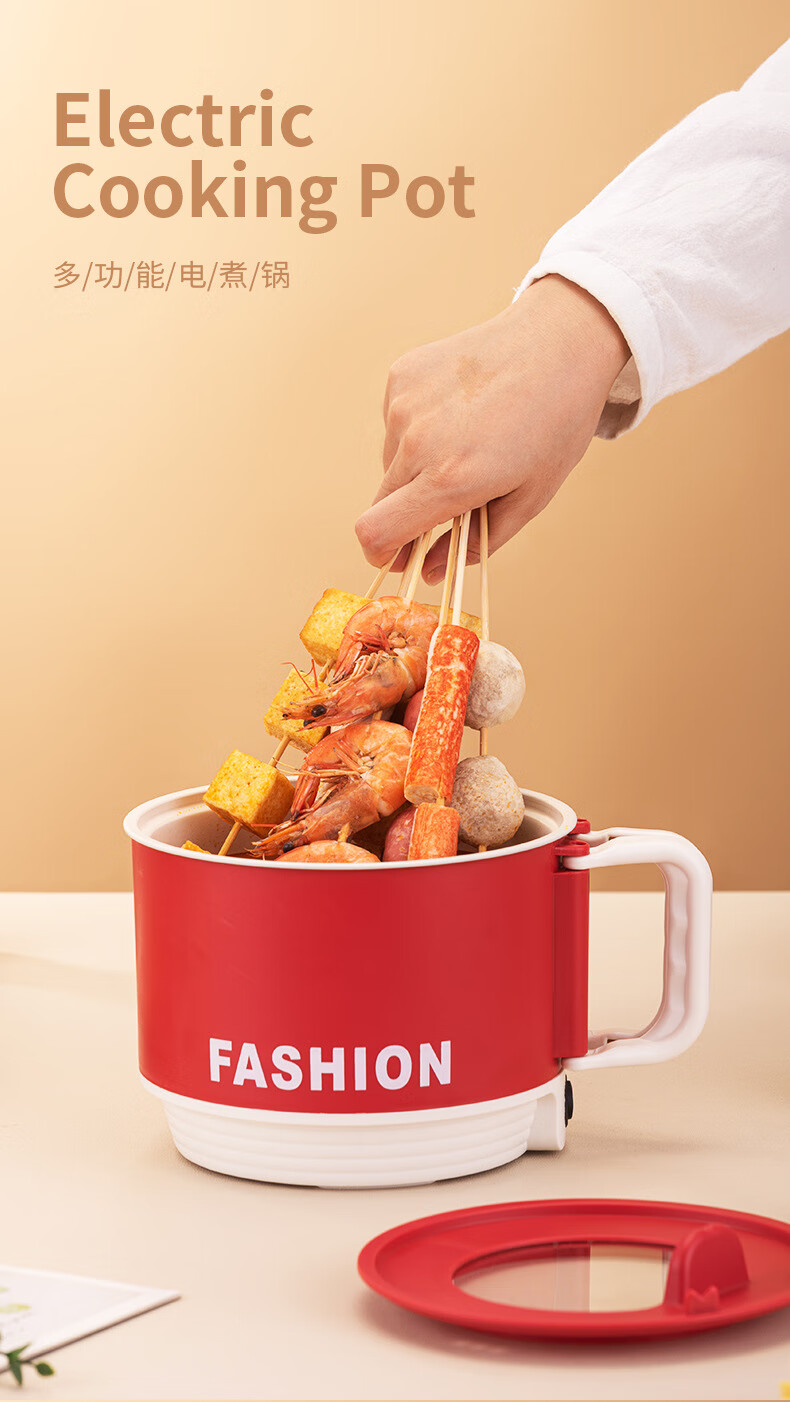 折叠电煮锅多功能泡面锅家用小火锅学生宿舍锅迷你小型小电锅速食 18cm米白色折叠把(黑色内胆220v