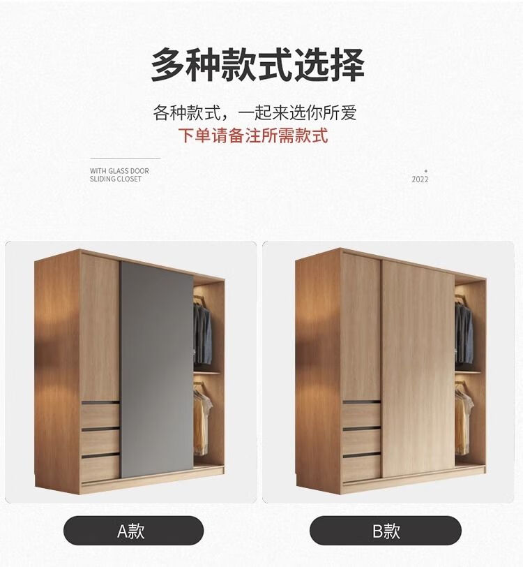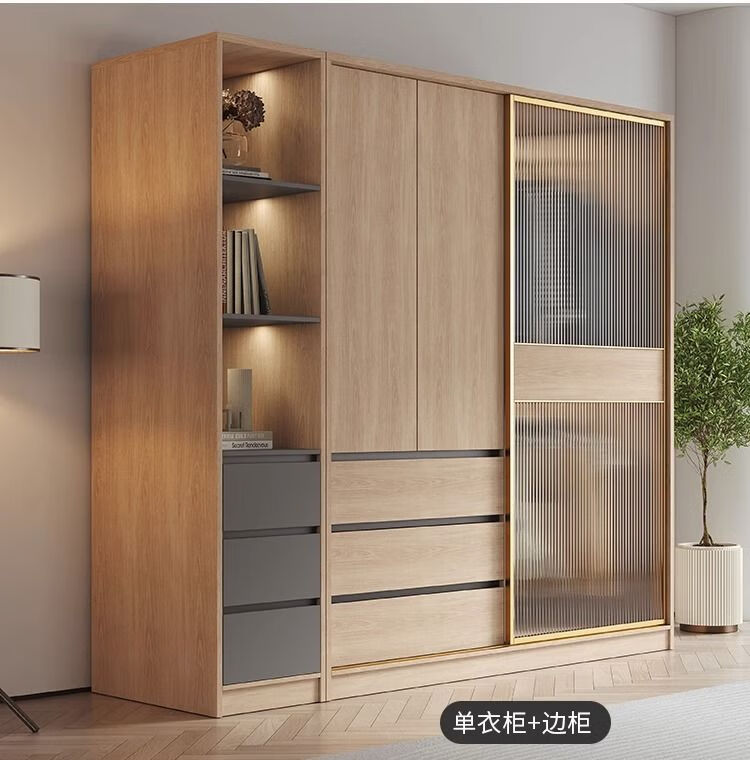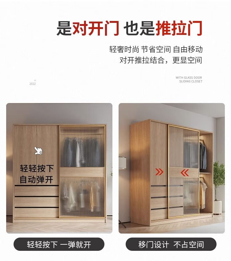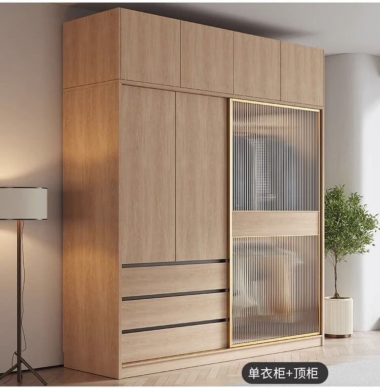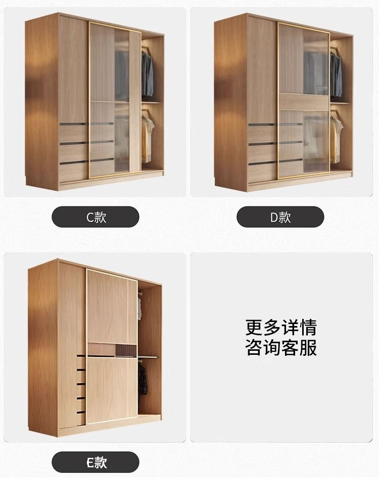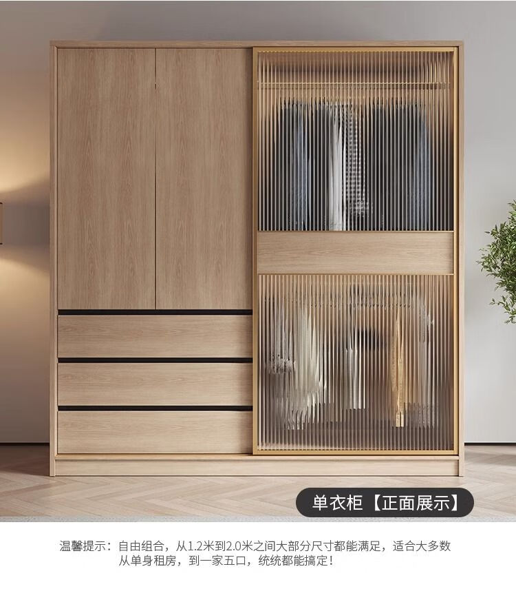 卡罗荣2025新款推拉门衣柜卧室奶油风家用卧室小户型移门柜子大衣橱 单衣柜 1.2米