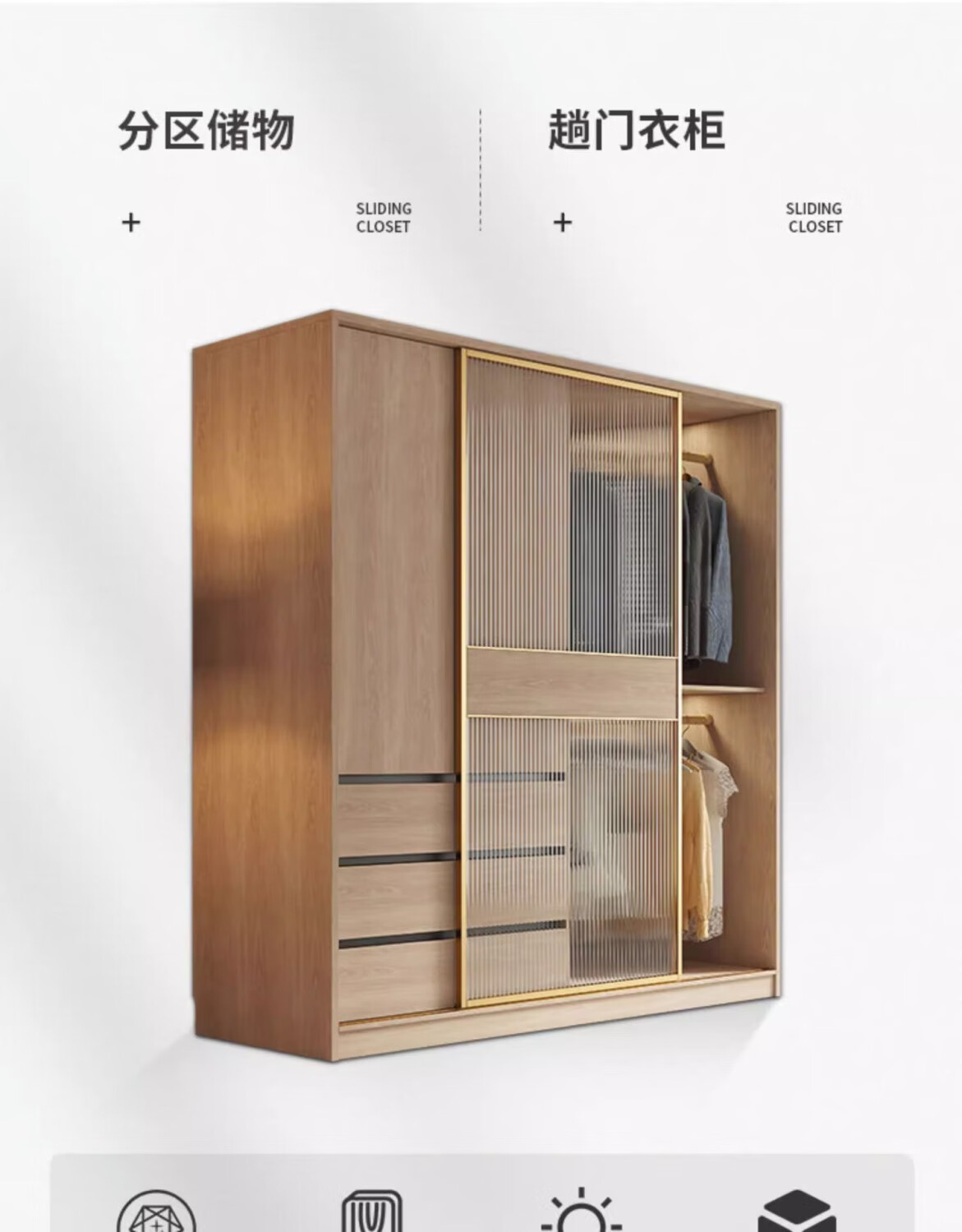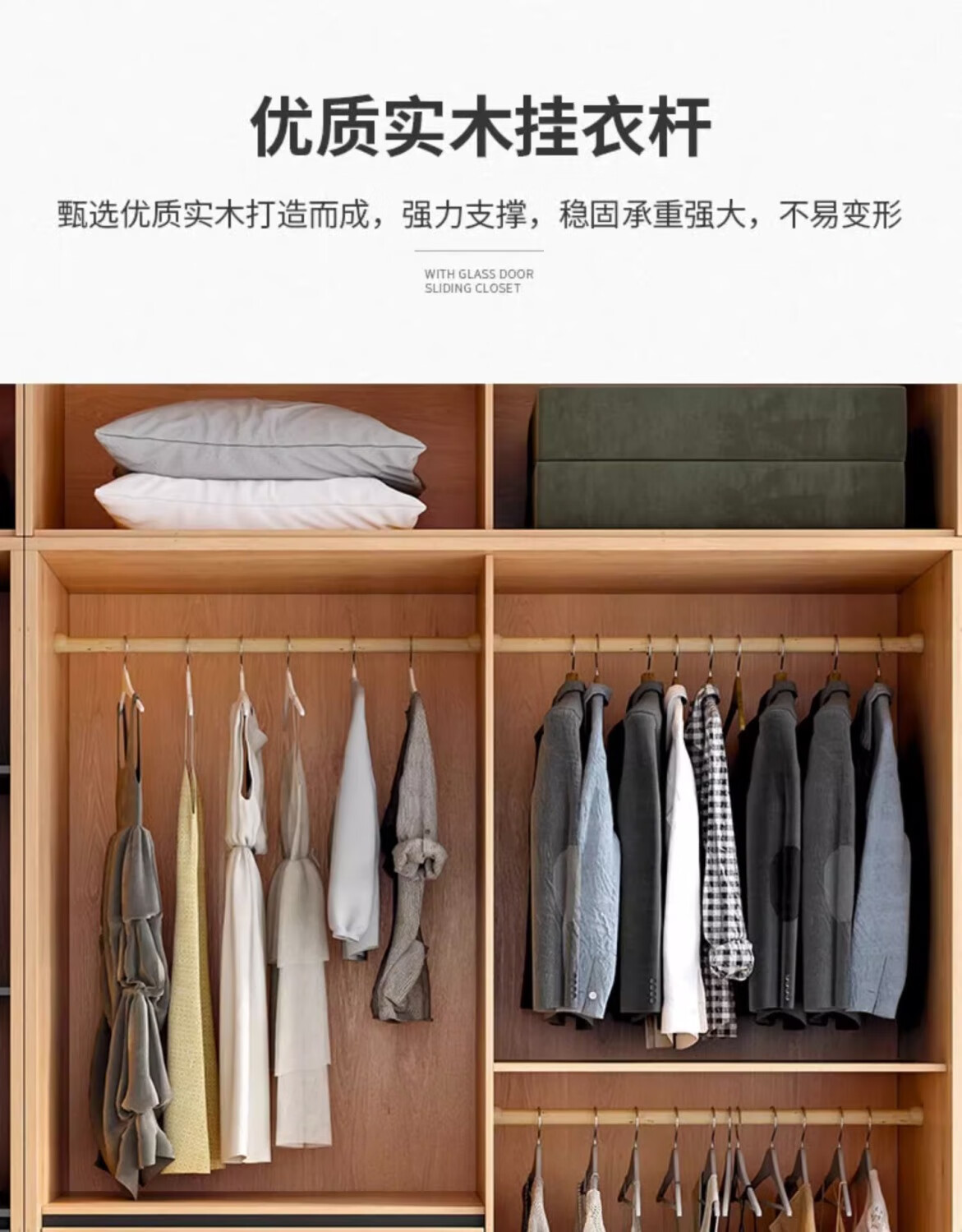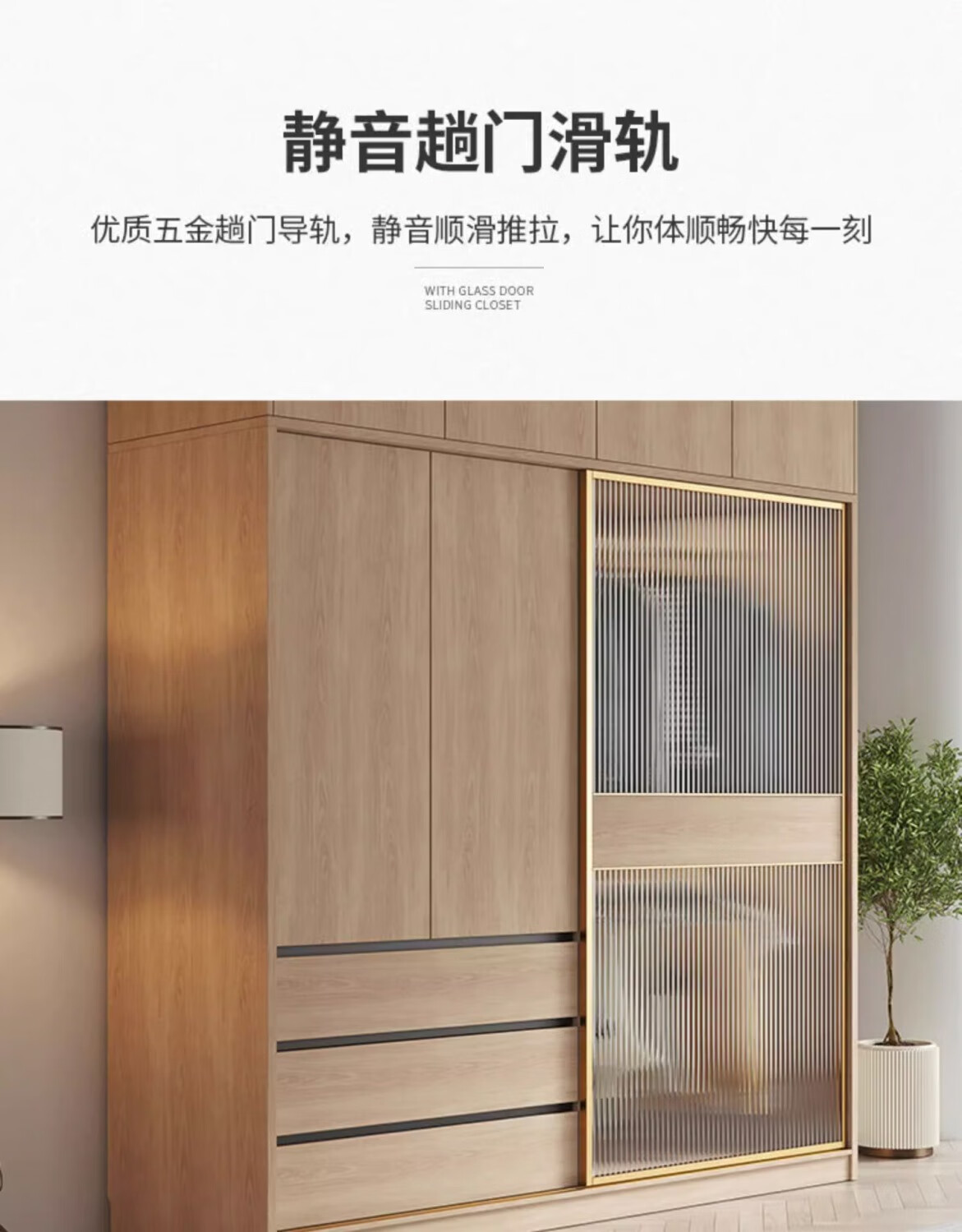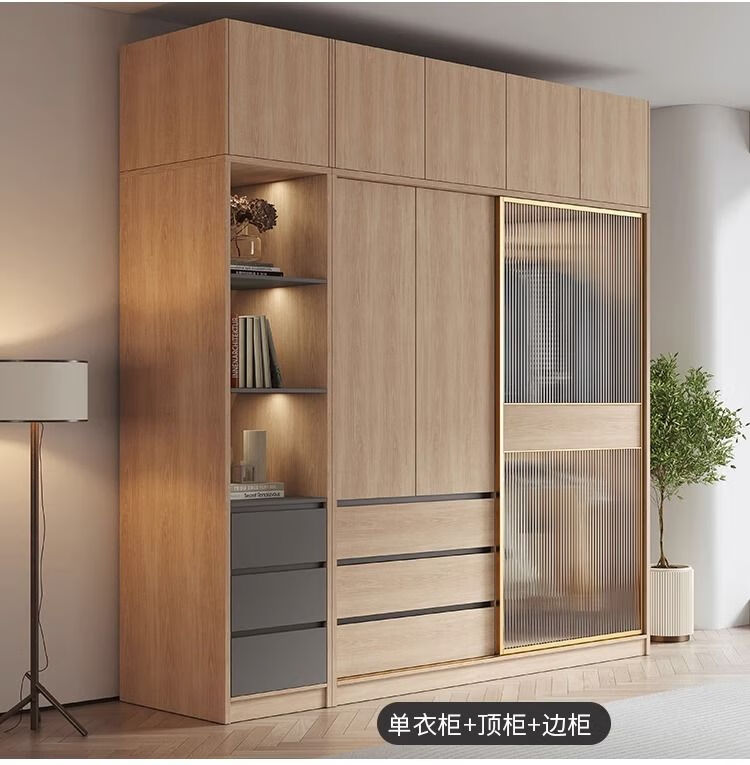 卡罗荣2025新款推拉门衣柜卧室奶油风家用卧室小户型移门柜子大衣橱 单衣柜 1.2米