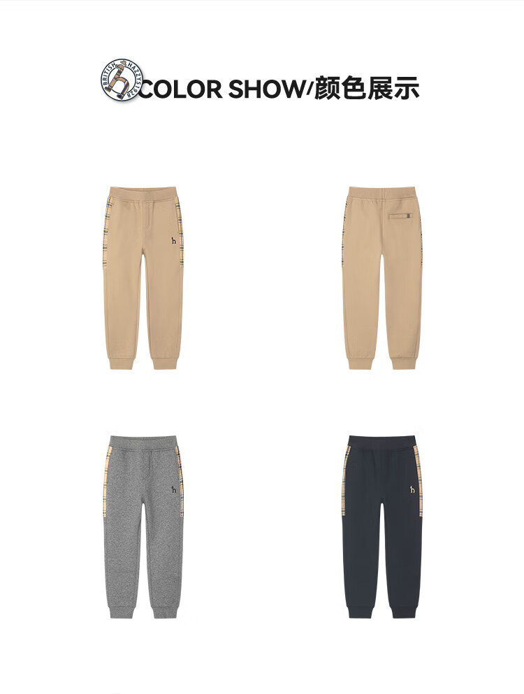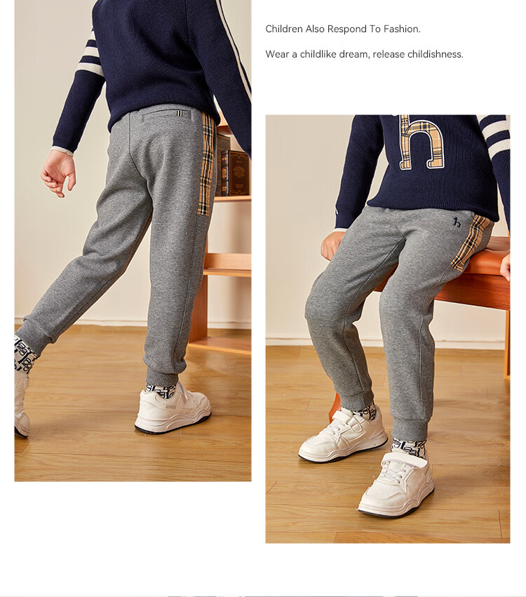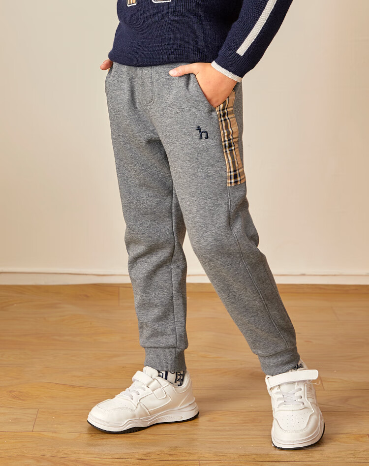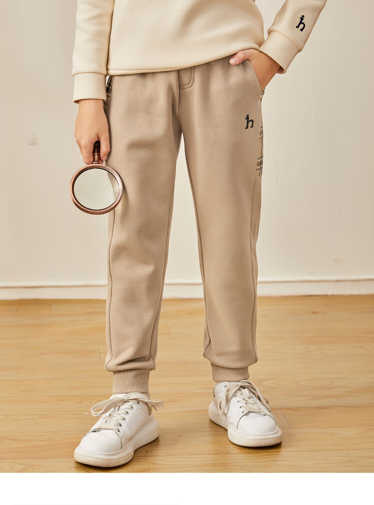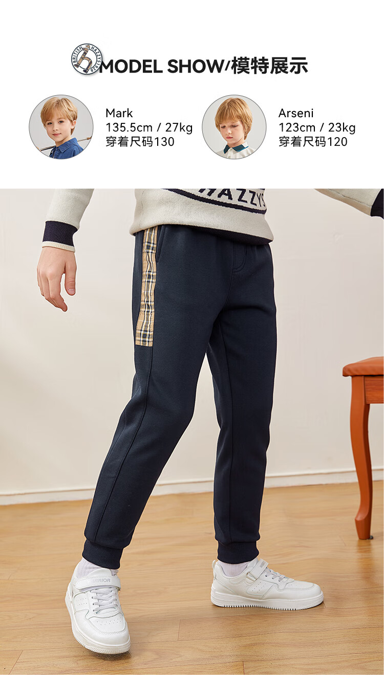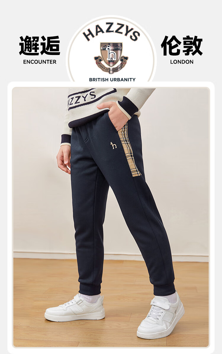 哈吉斯(HAZZYS)男童裤子冬新品加厚一体绒舒适长裤 藏蓝 165