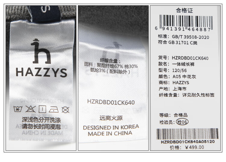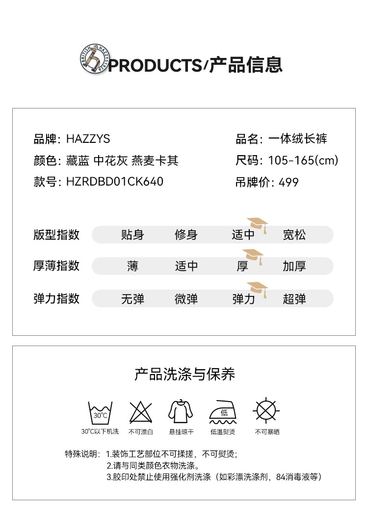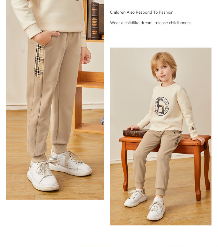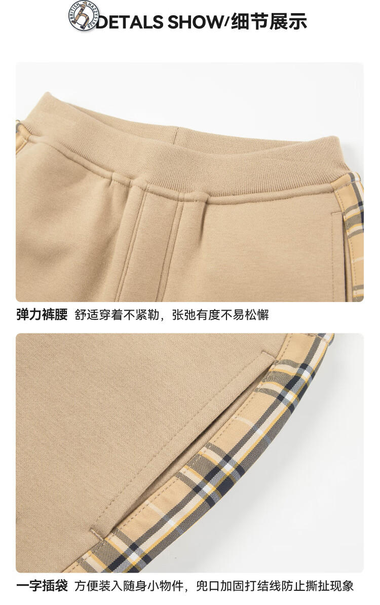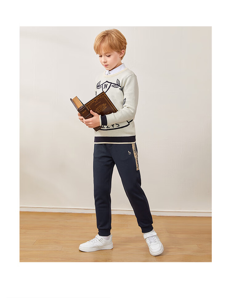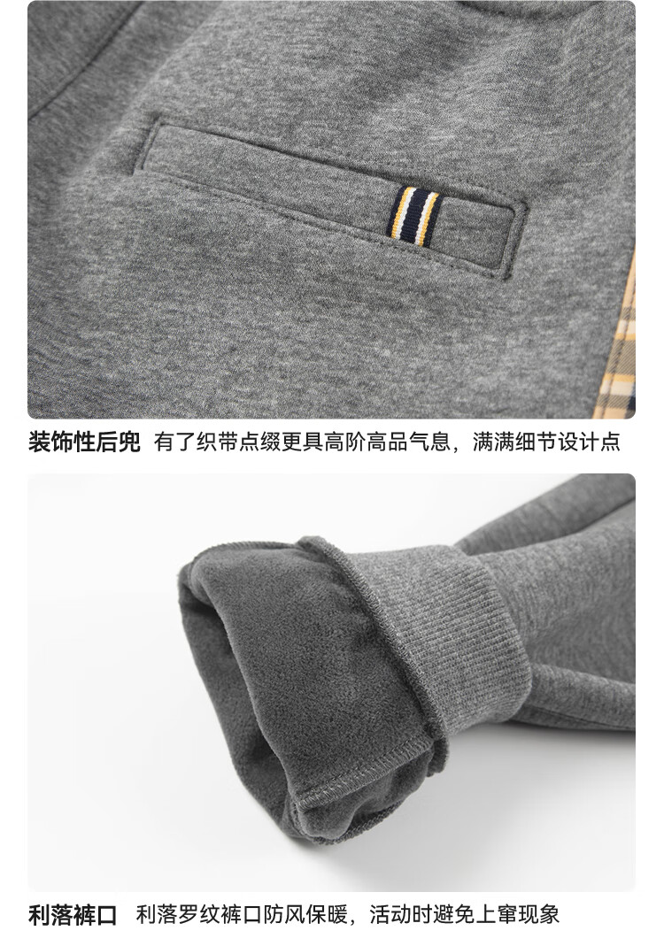 哈吉斯(HAZZYS)男童裤子冬新品加厚一体绒舒适长裤 藏蓝 165
