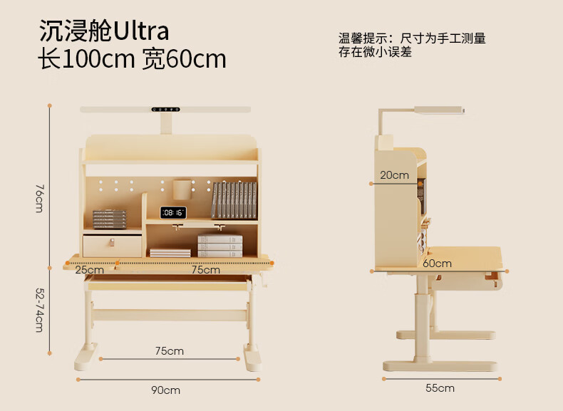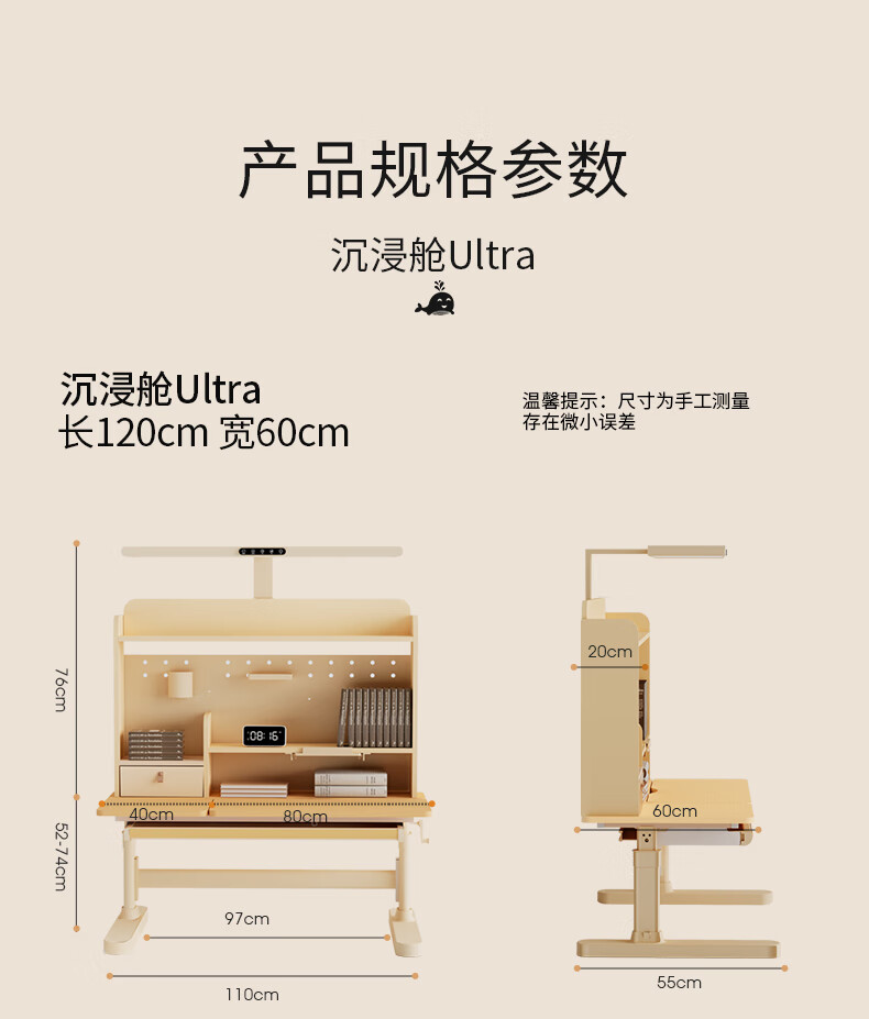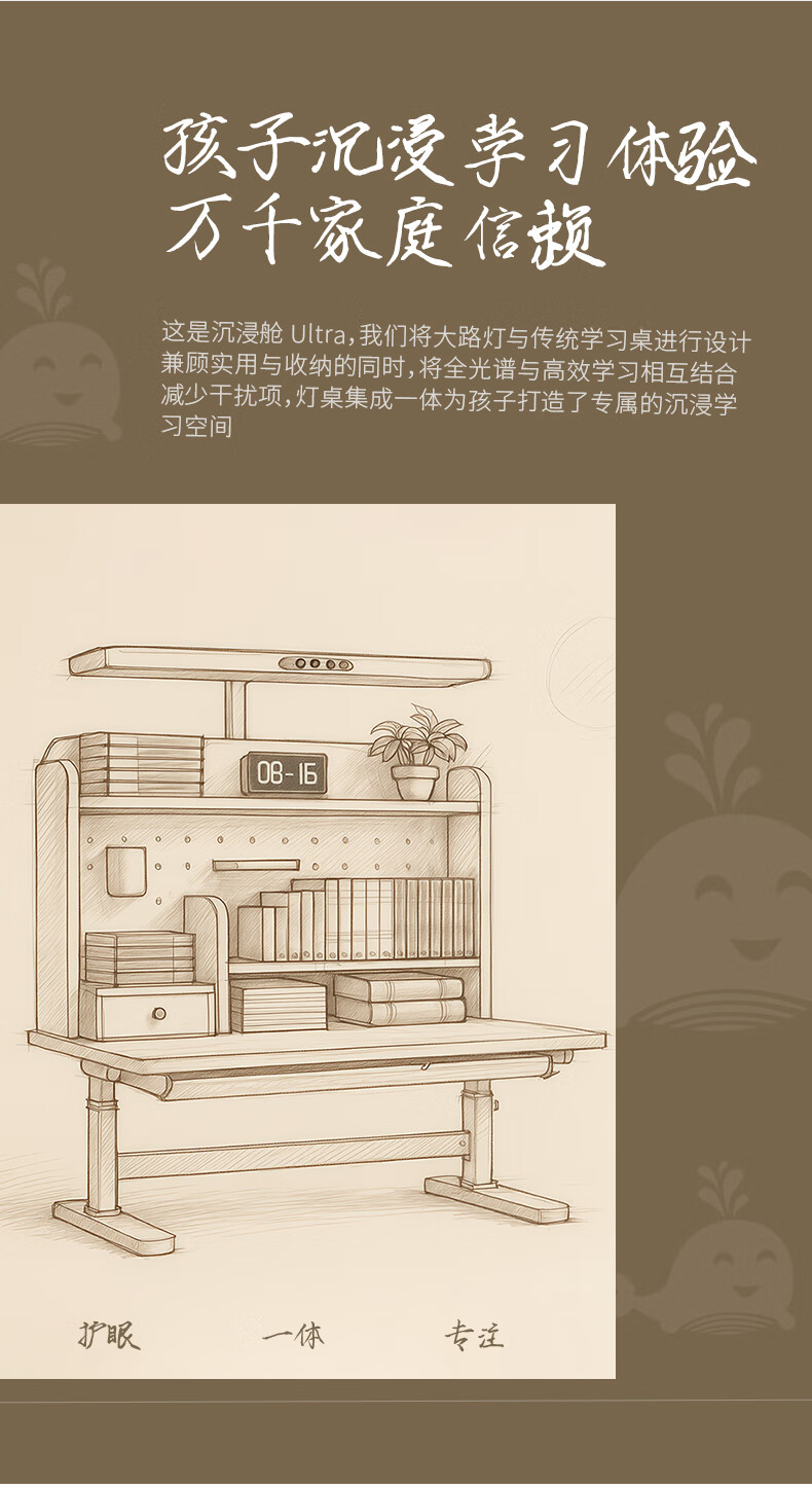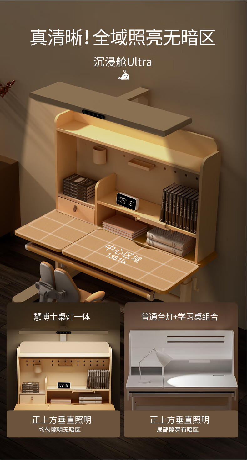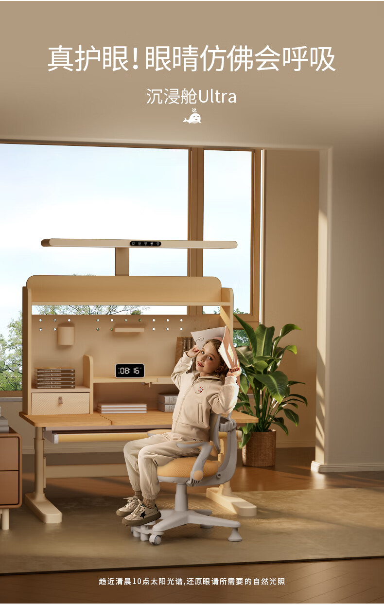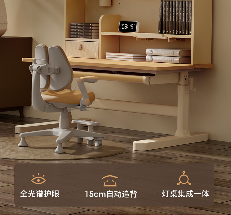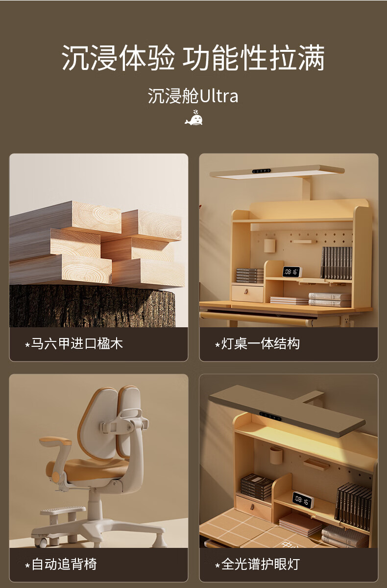 多彩鱼儿童学习书桌椅套装实木书桌中小学生多功能可升降写字家用课桌椅 1.2米沉浸舱Ultra套装 · 枫糖咖