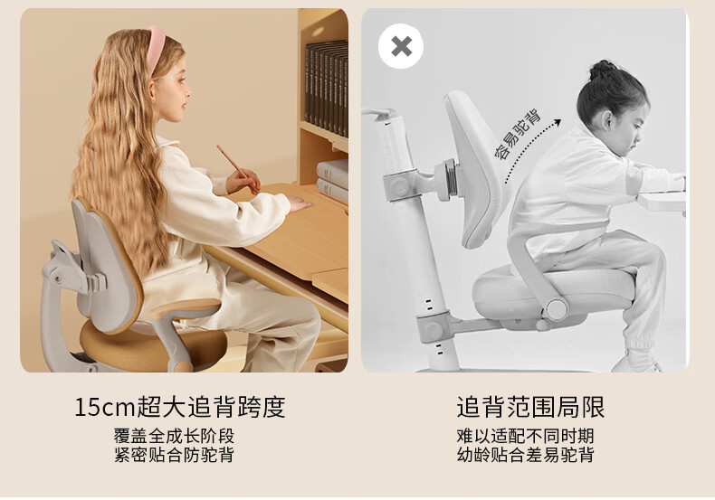 喵同学儿童学习椅子儿童座椅可升降调节中小学生专用写字椅追背椅靠背椅 自由升降+经典脚踏-加高款-灰