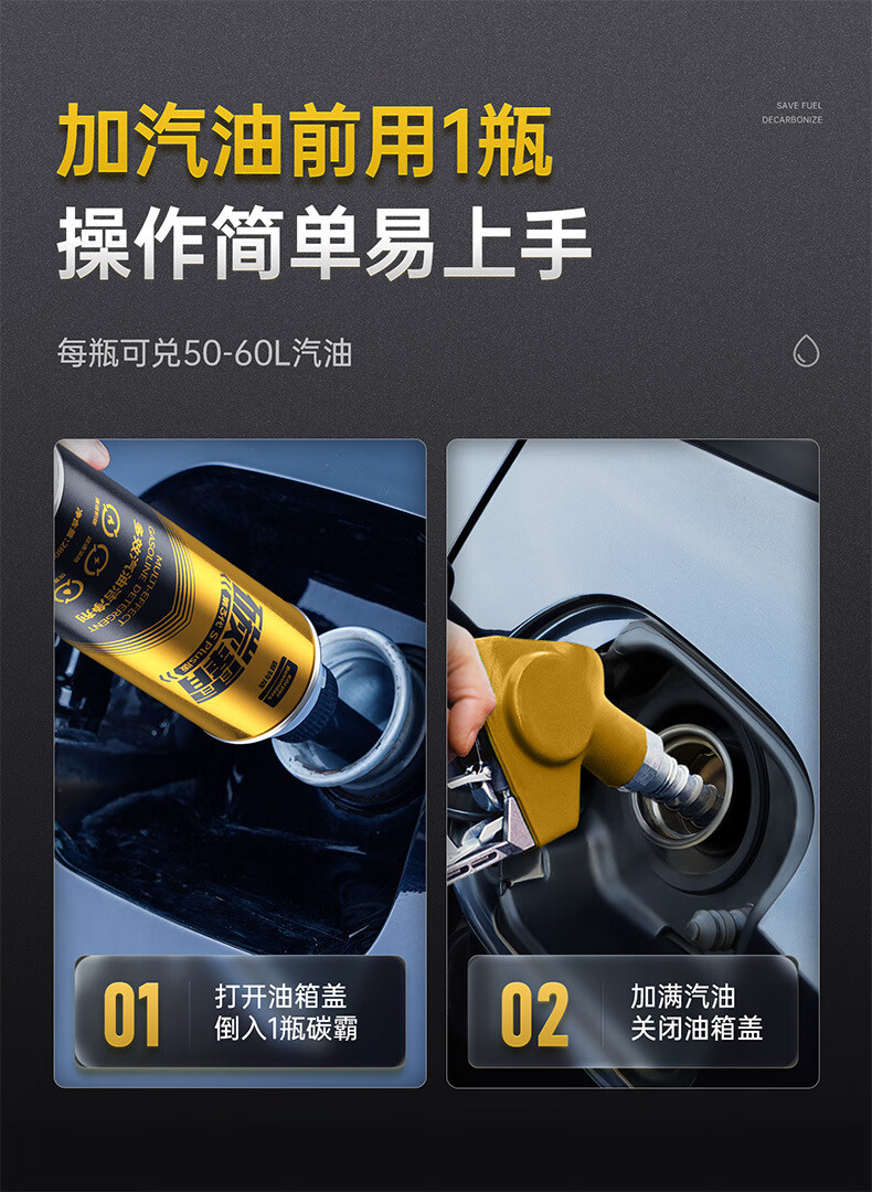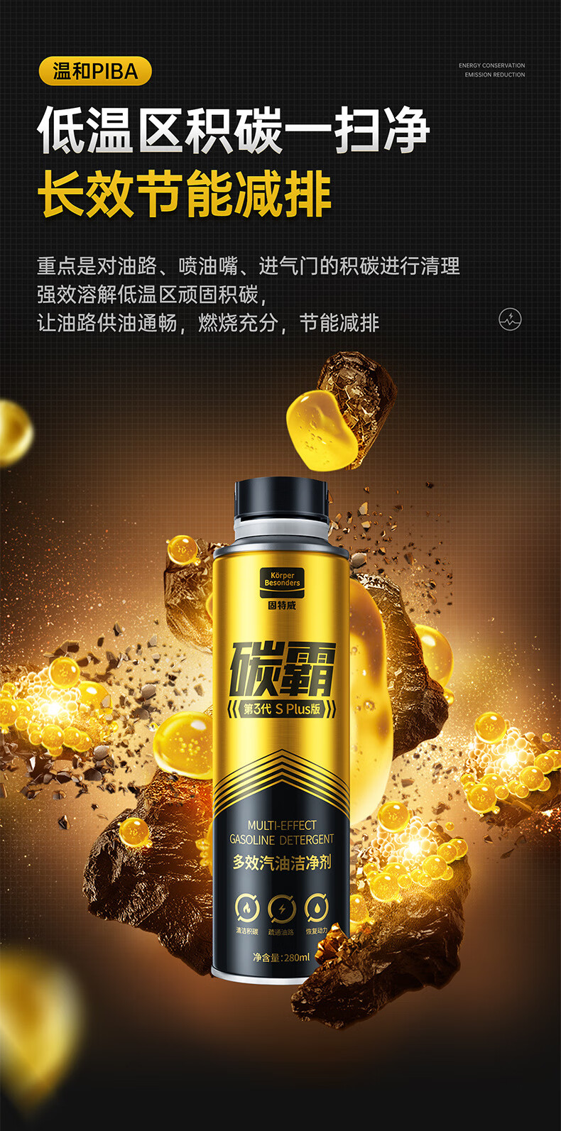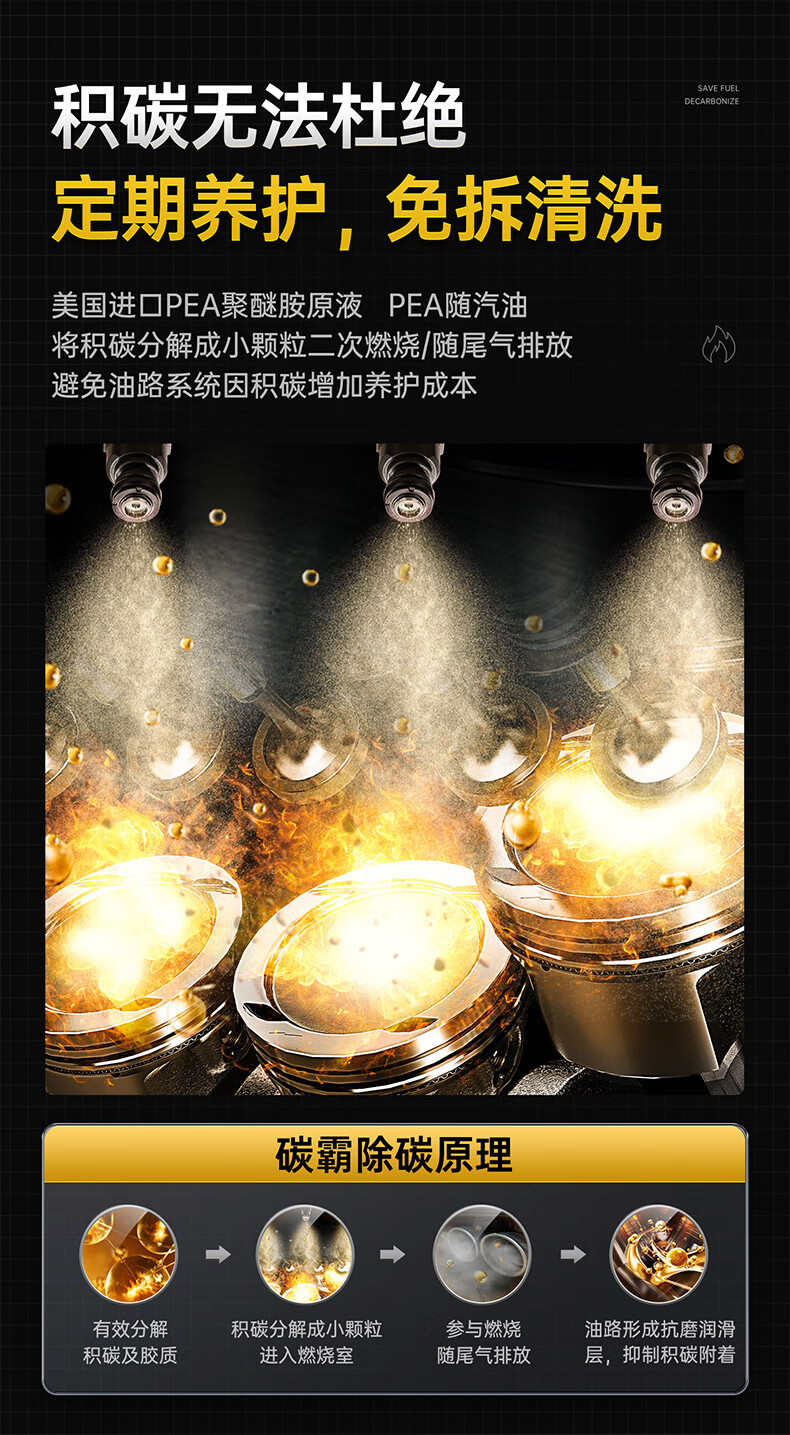 碳霸S 汽车燃油宝 多效汽油清洁剂多部位除积碳保护剂 燃油添加剂 汽车积碳减少改善油耗油路喷油嘴进气阀燃烧清洗积碳 汽油车燃油宝PEA聚醚胺PLI减磨因子保护发动机