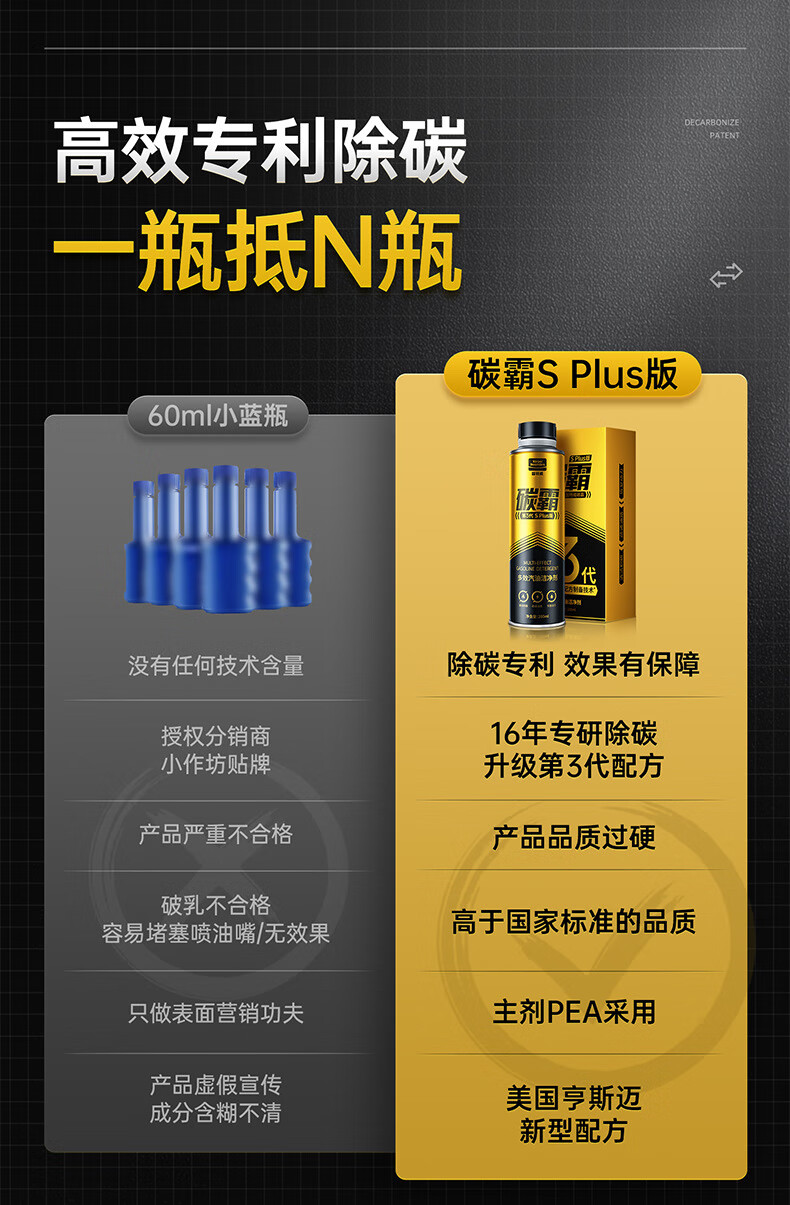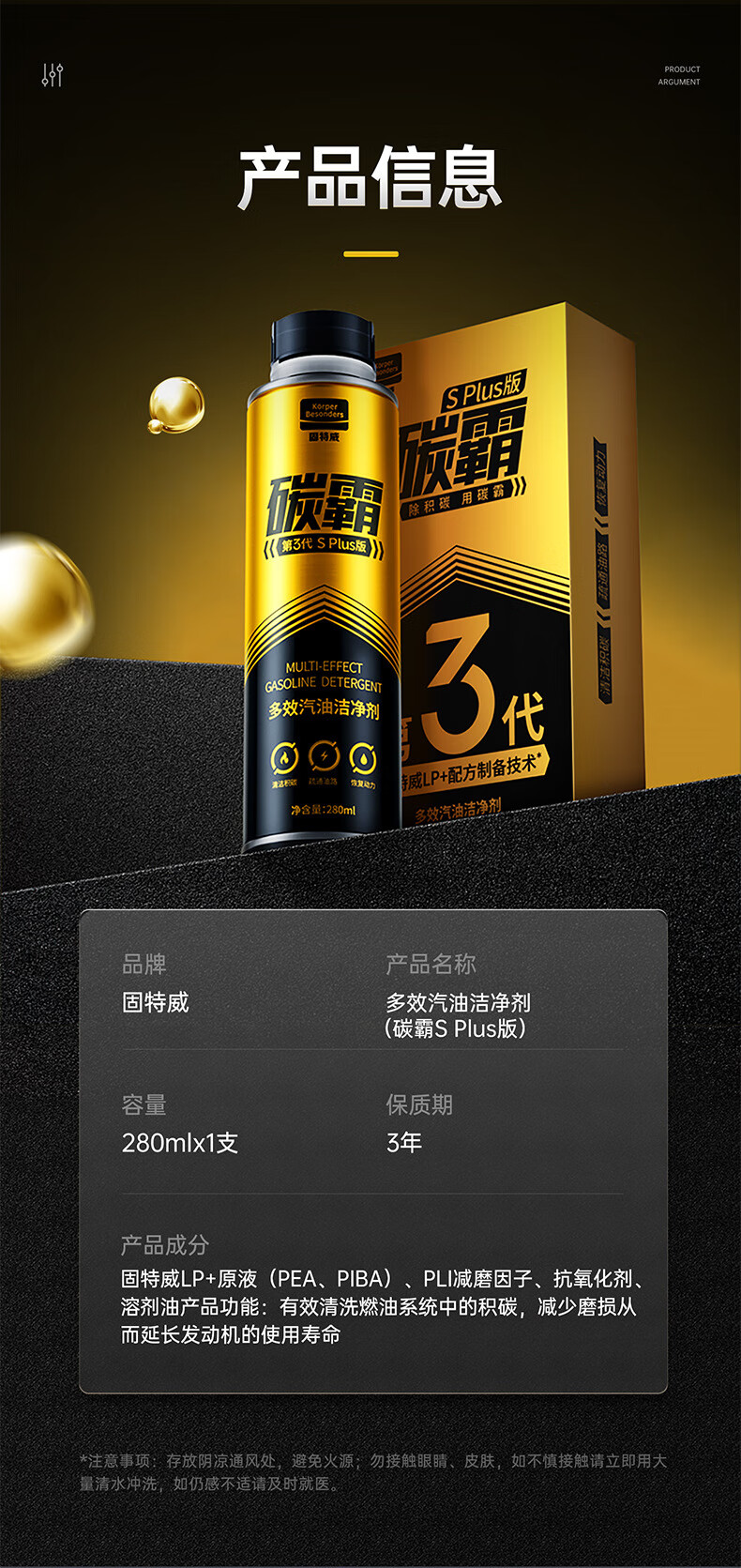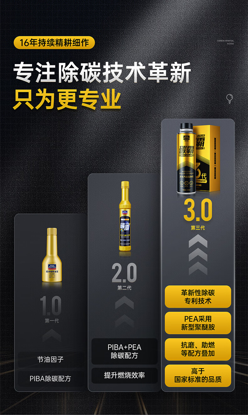 碳霸S 汽车燃油宝 多效汽油清洁剂多部位除积碳保护剂 燃油添加剂 汽车积碳减少改善油耗油路喷油嘴进气阀燃烧清洗积碳 汽油车燃油宝PEA聚醚胺PLI减磨因子保护发动机