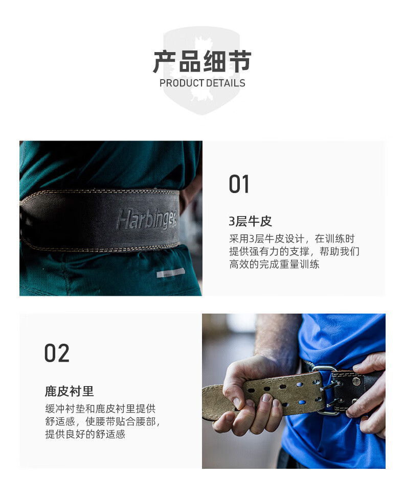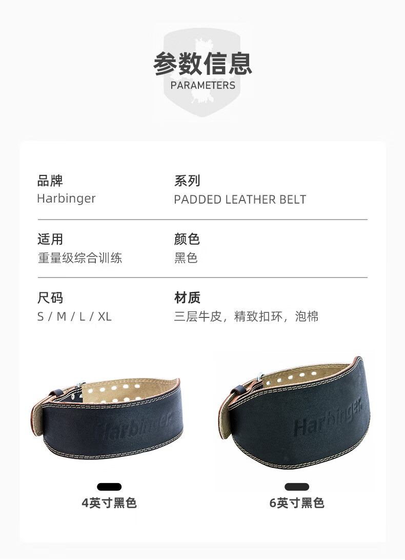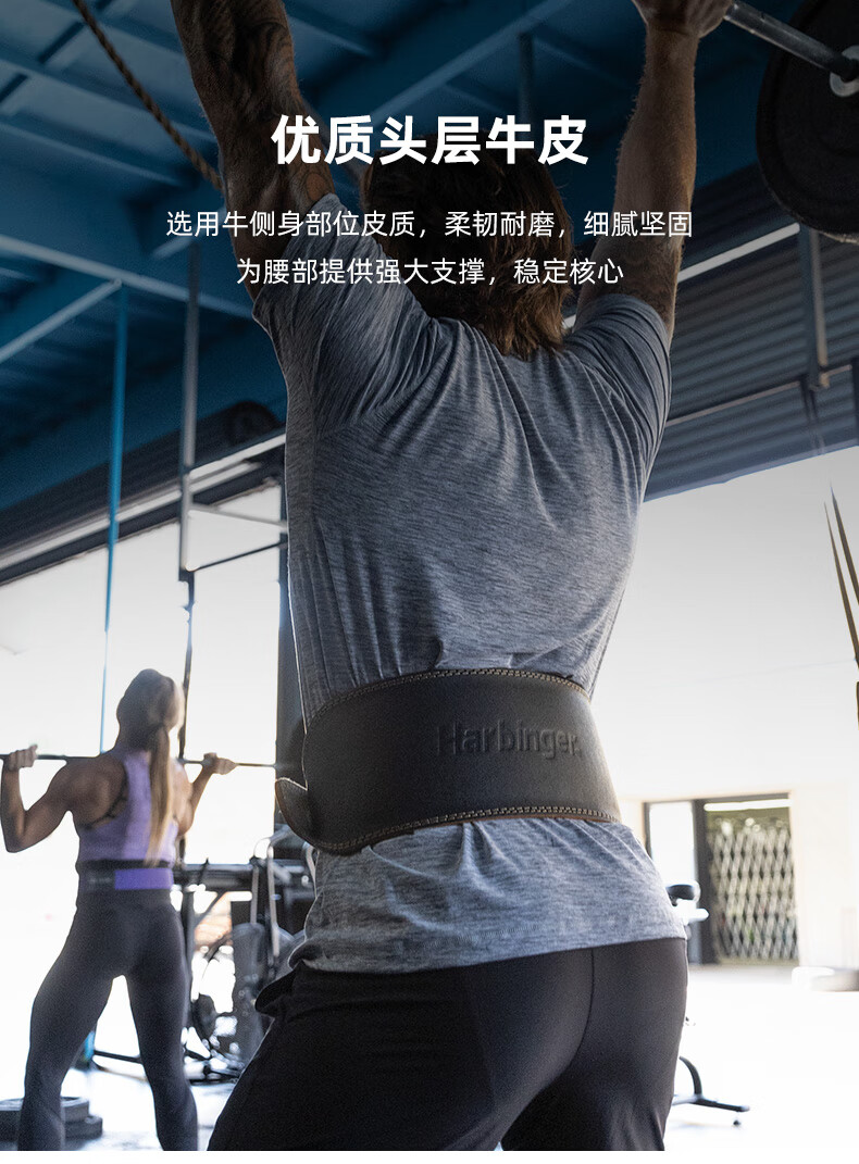 Harbinger哈彬者进口健身腰带力量举重深蹲硬拉牛皮杠杆运动训练 宽约15cm/三层牛皮/麂皮内衬 L(腰围86-97cm)