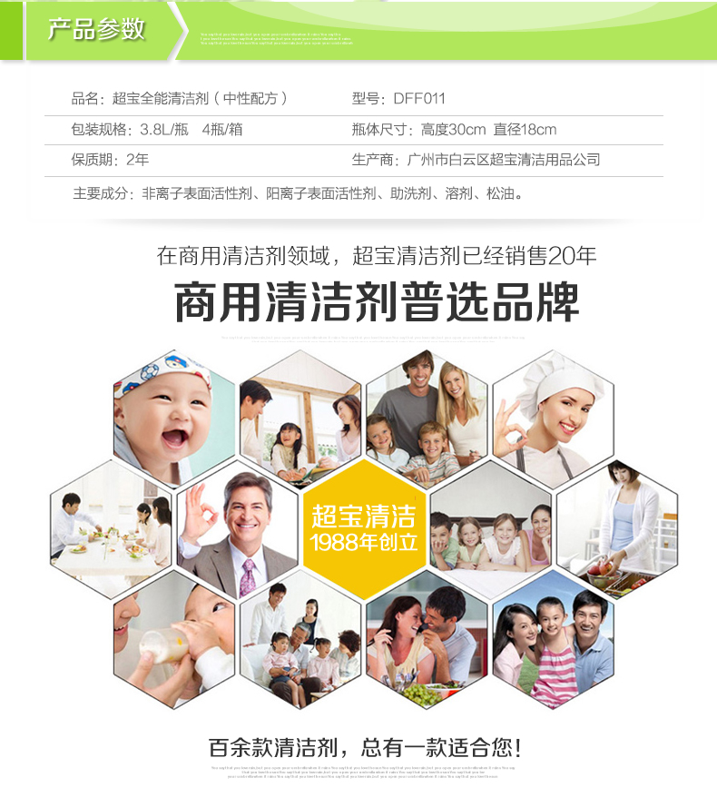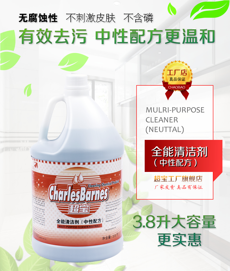 超宝全能清洁剂中性3.8升大瓶实惠装地板地面多功能清洗液 3.8升箱装4瓶