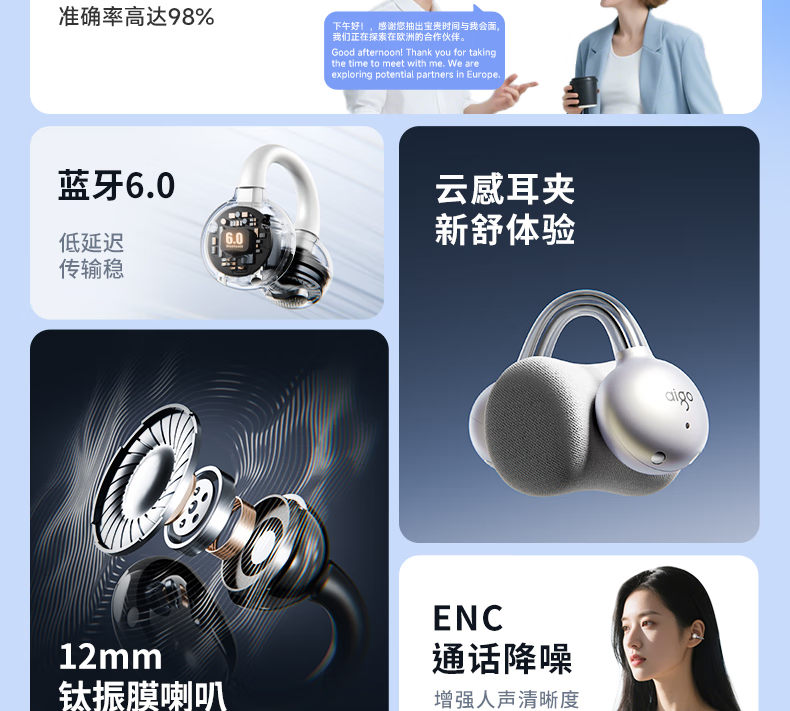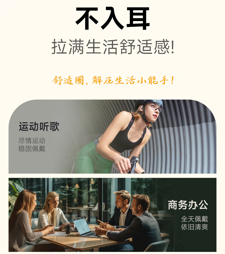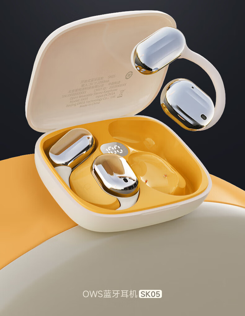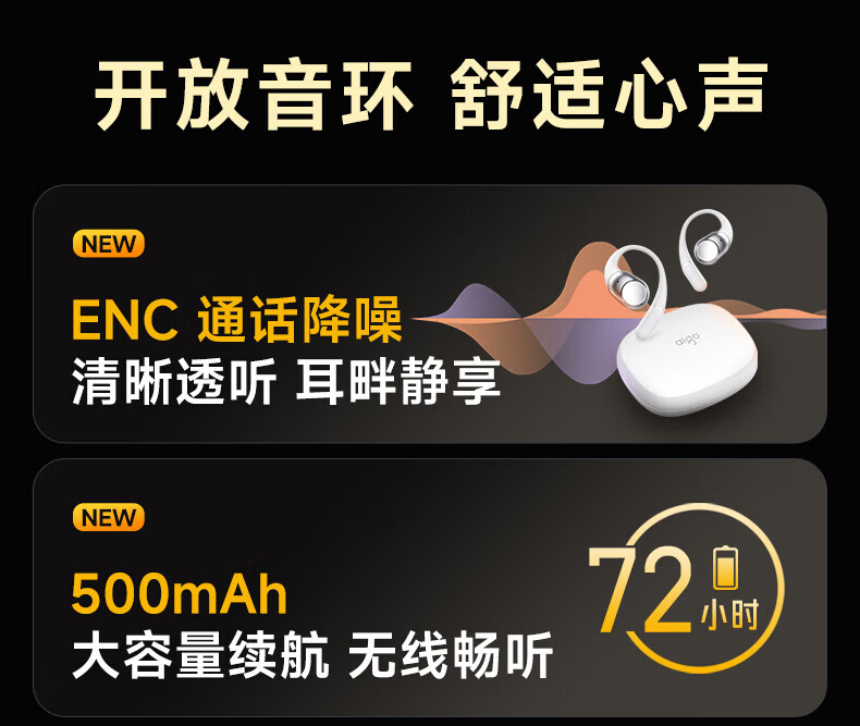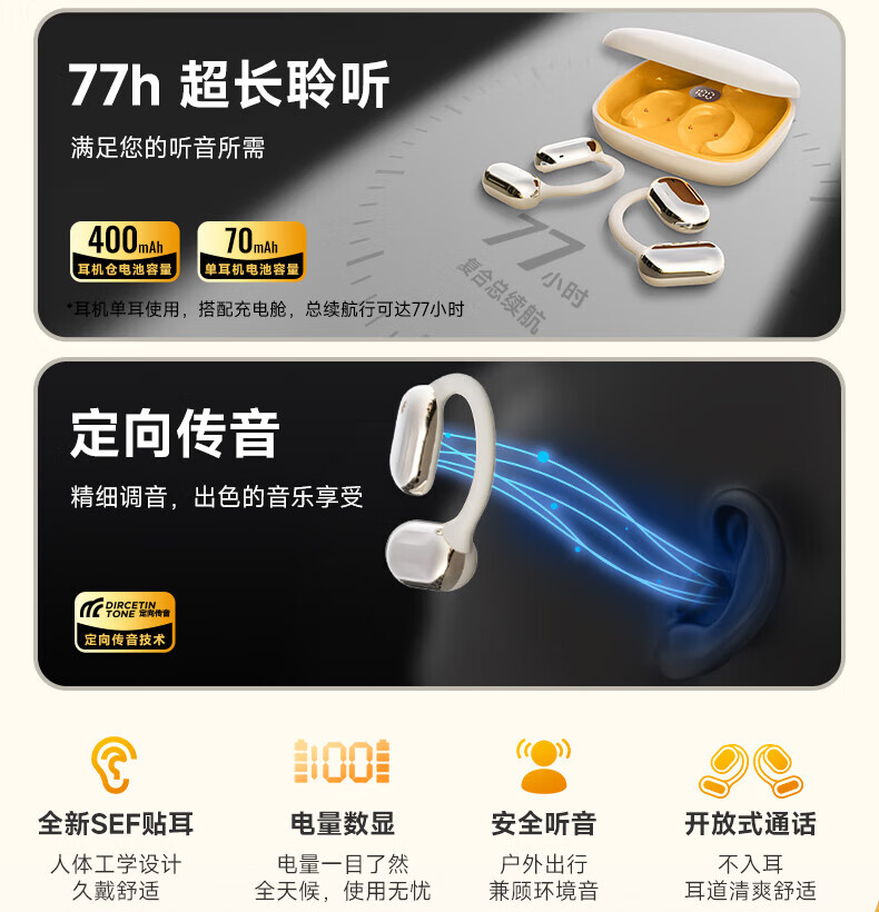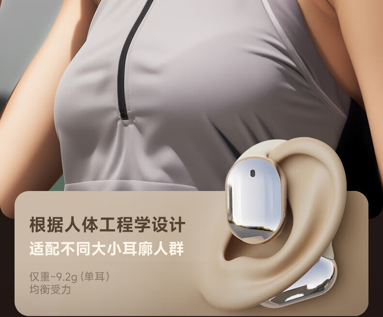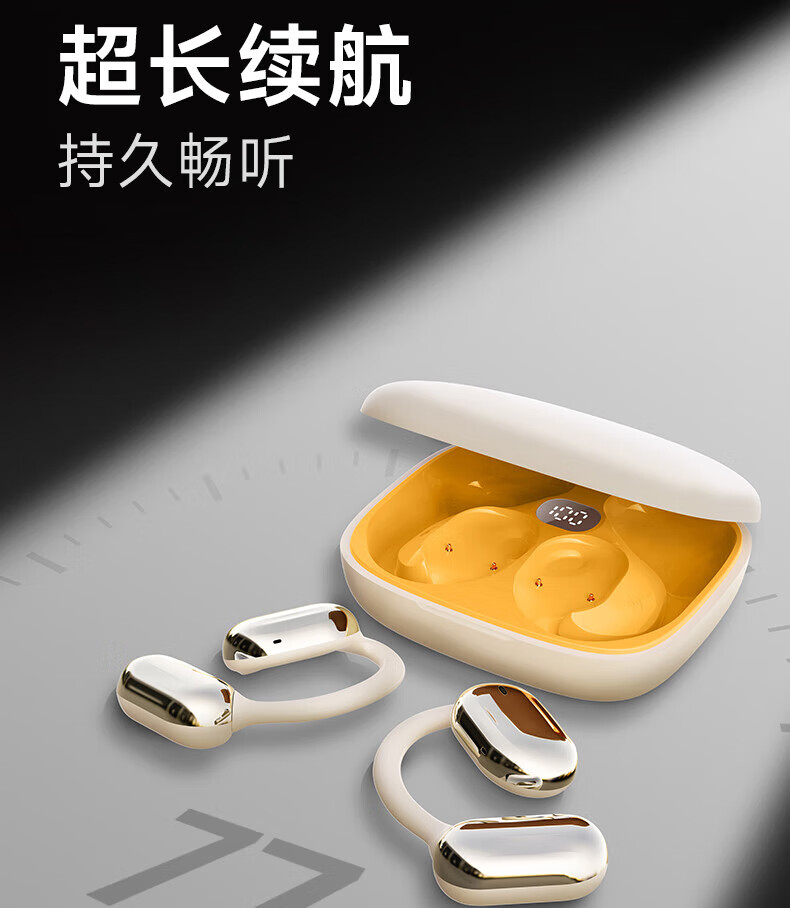 爱国者蓝牙耳机挂耳式 不入耳无线耳机 AI翻译耳机骨传导概念运动跑步高音质降噪超长续航CA05 蓝牙5.4_77小时超长续航/重低音(米黄)