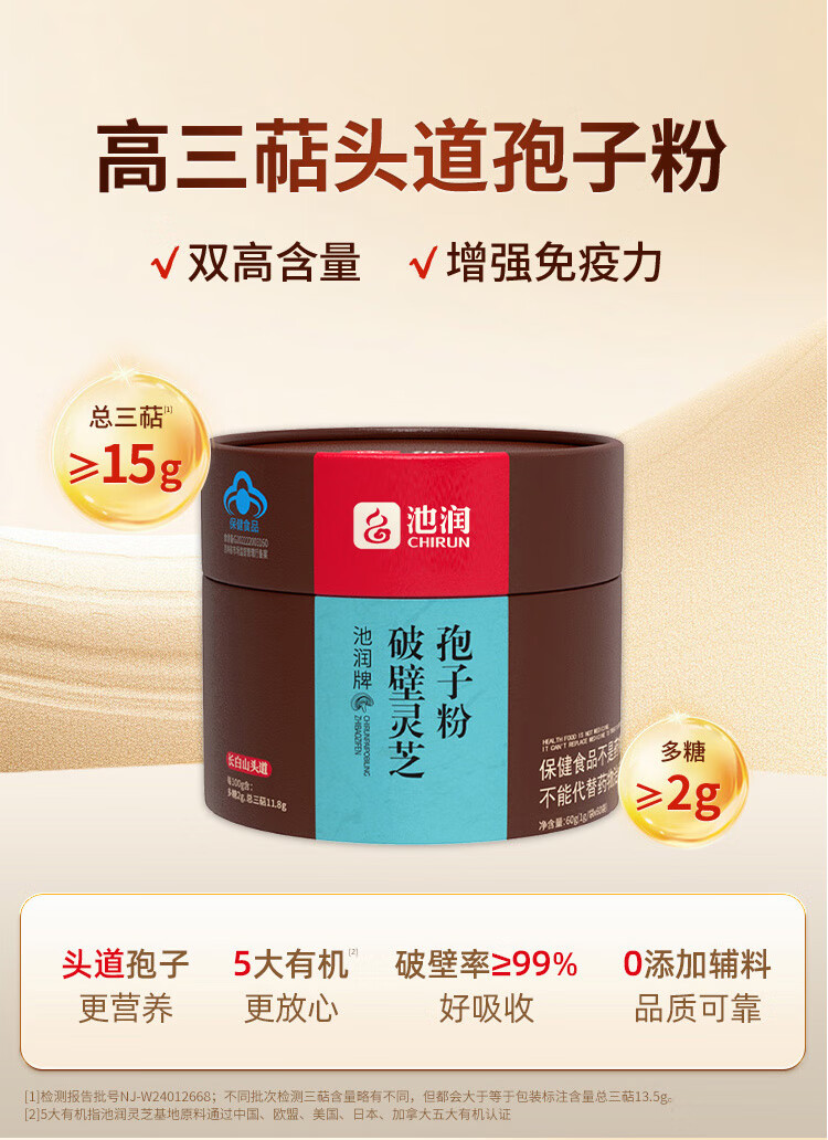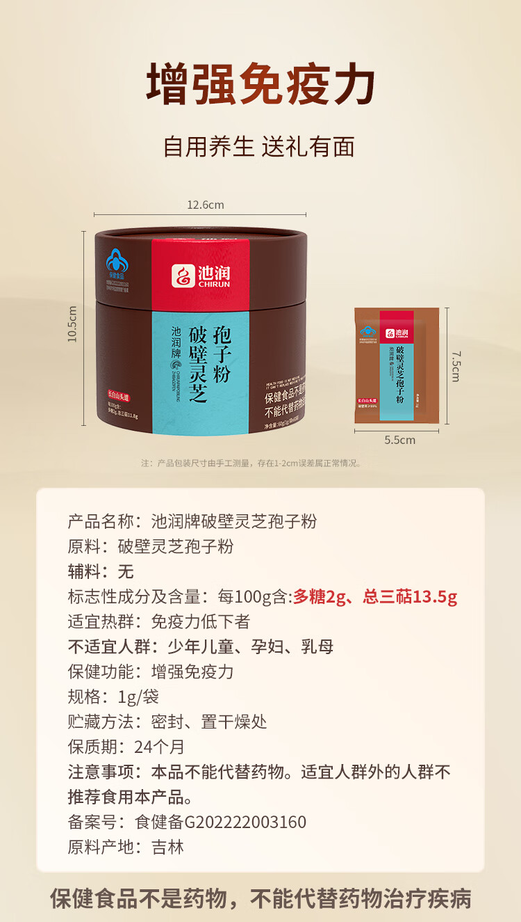 池润【高品质】长白山头道破壁灵芝孢子粉增强免疫力富含孢子油 第四代破壁灵芝孢子粉胶囊40粒*4盒【阶段量】