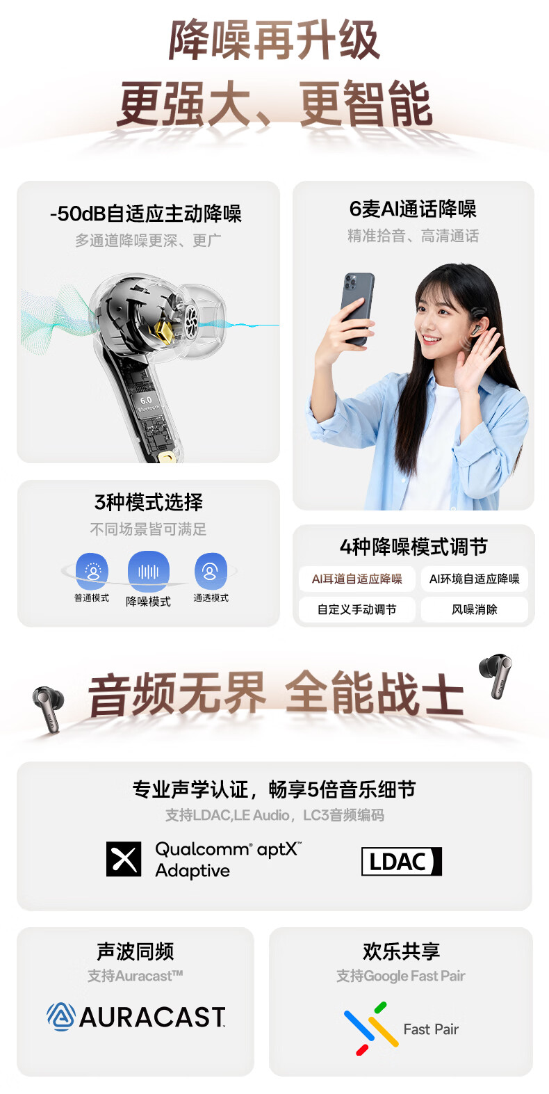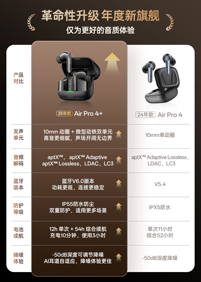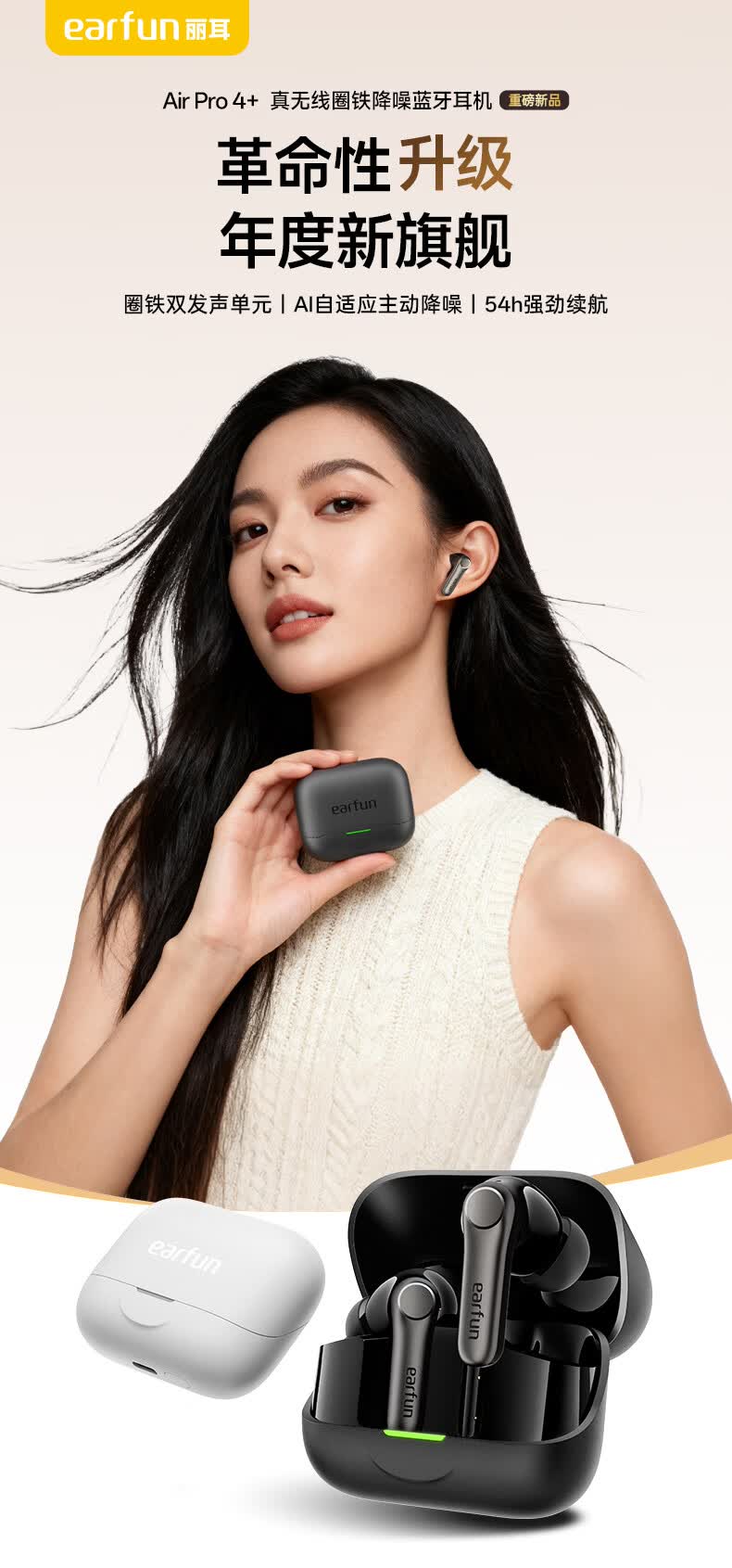 EarFun 丽耳【2026最新款】AirPro4+AI翻译主动降噪蓝牙耳机圈铁入耳式LDAC无损音质适用于苹果华为小米安卓 【圈铁双单元丨 AI 翻译免费】 曜石黑 可拆封试用丨赠运费险丨18个月质保