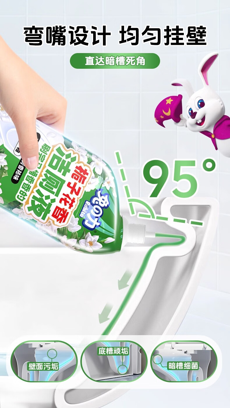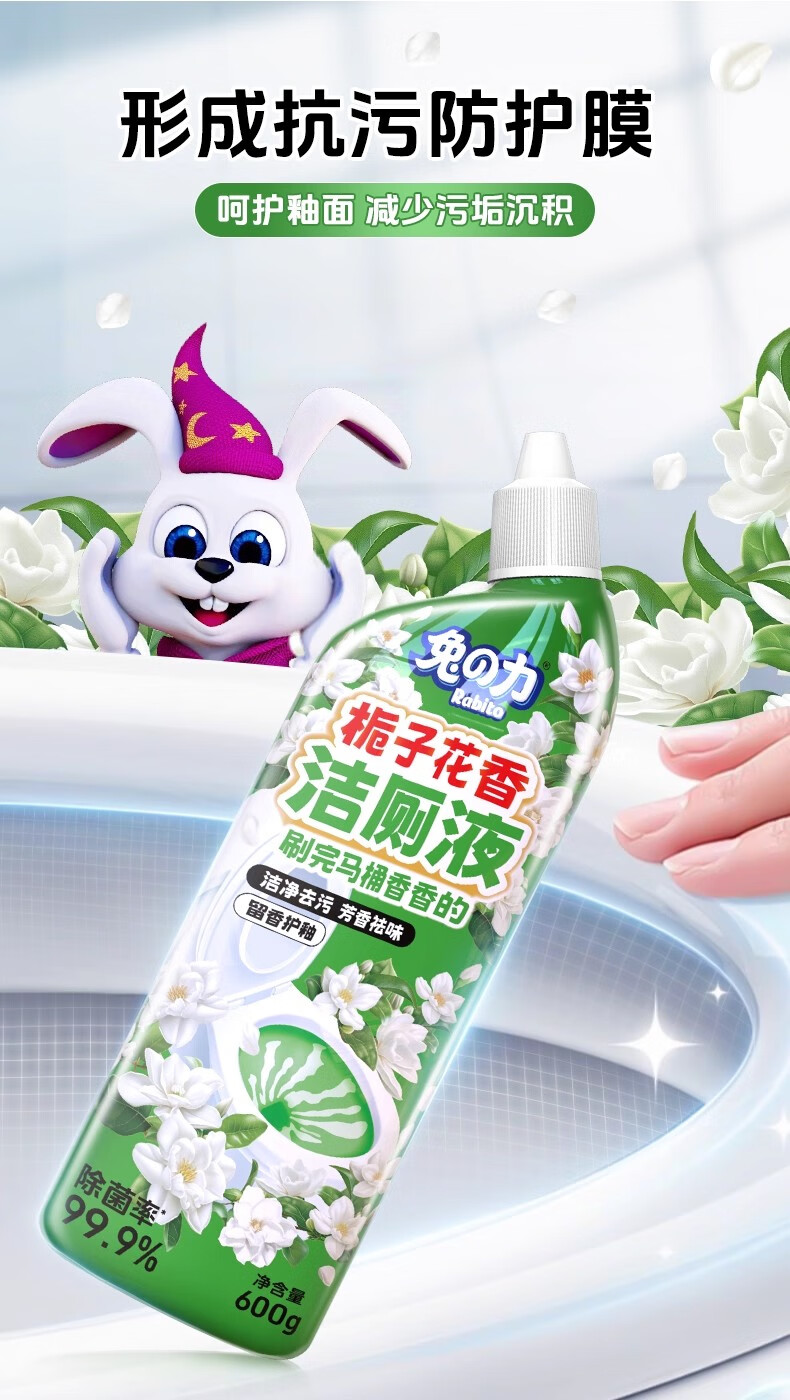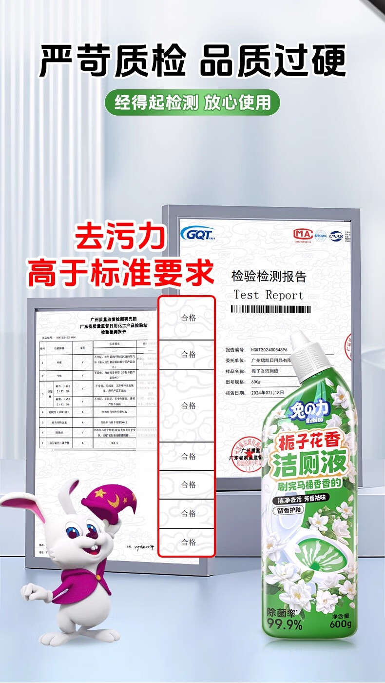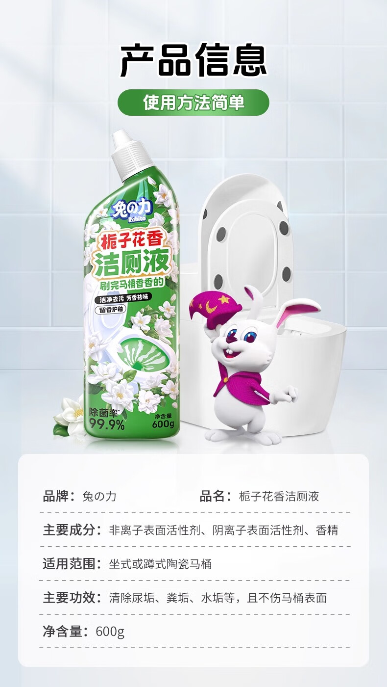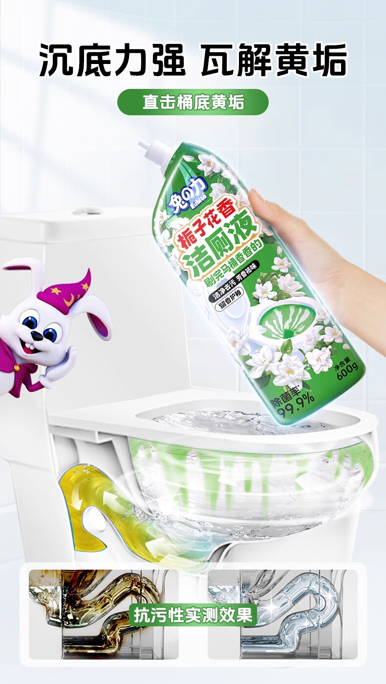 兔力洁厕灵家庭清洁马桶清洁剂卫生间洁厕液除臭去污除垢剂厕所清洁剂 3瓶【囤货装】1800ml/轻松用半年