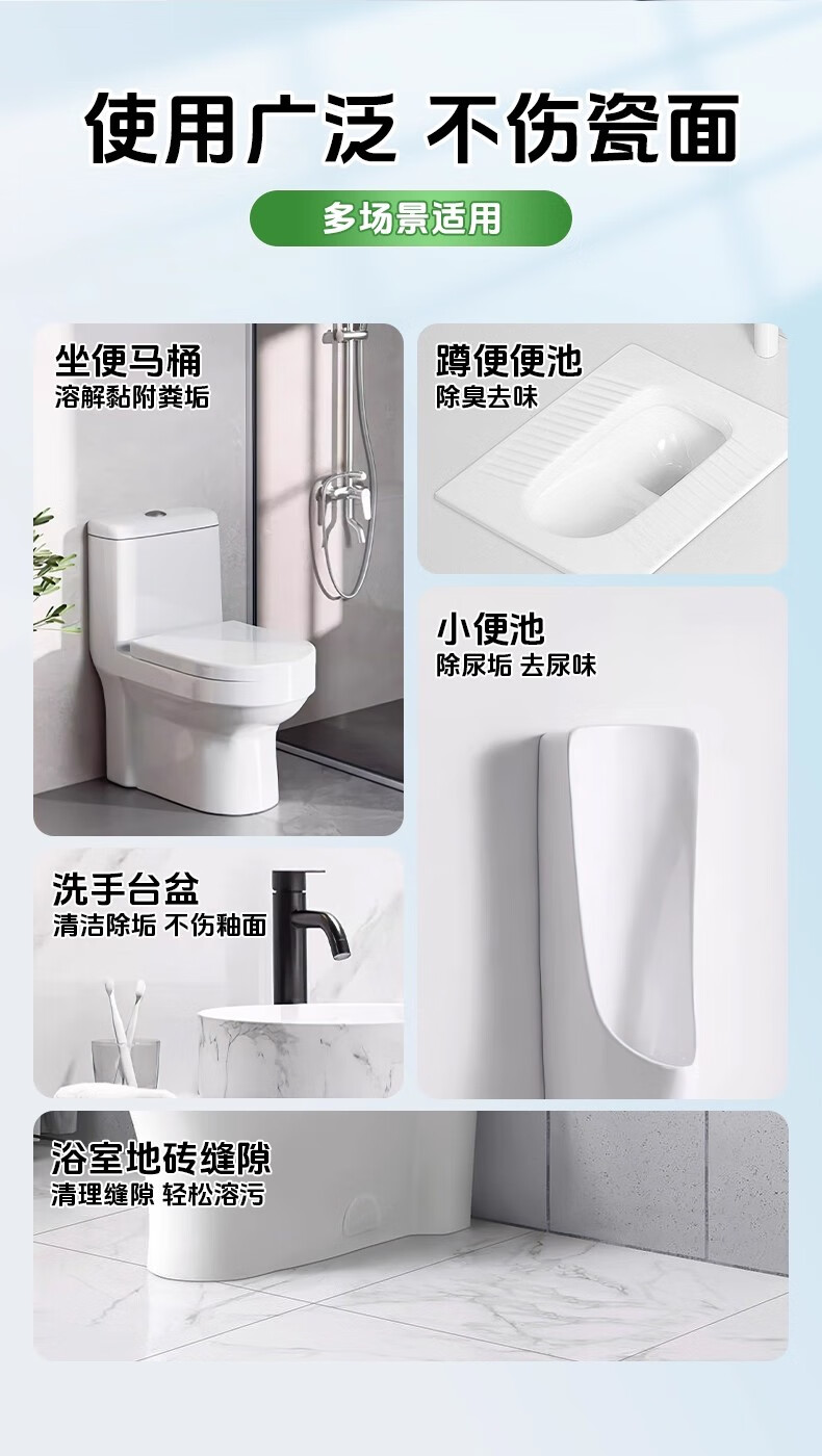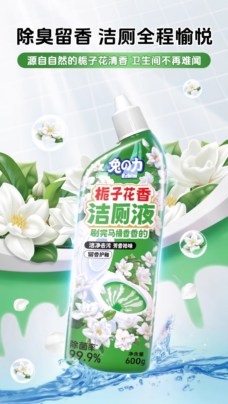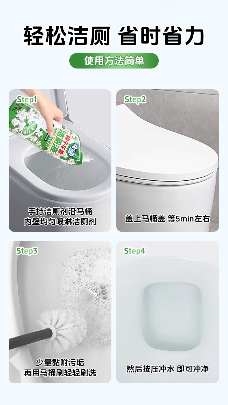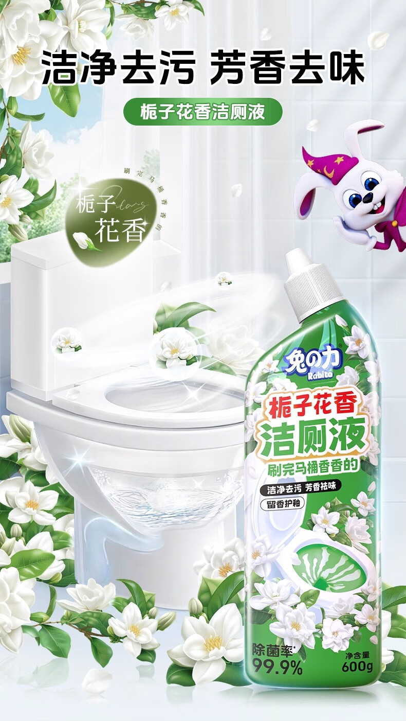 兔力洁厕灵家庭清洁马桶清洁剂卫生间洁厕液除臭去污除垢剂厕所清洁剂 3瓶【囤货装】1800ml/轻松用半年