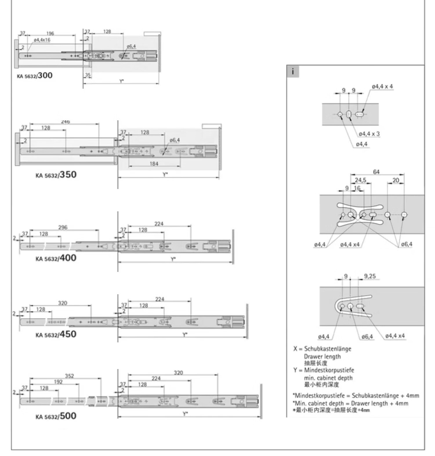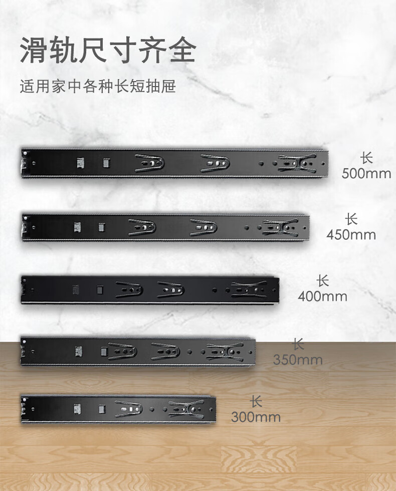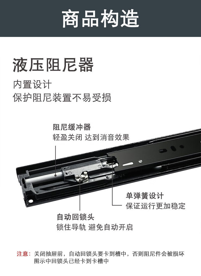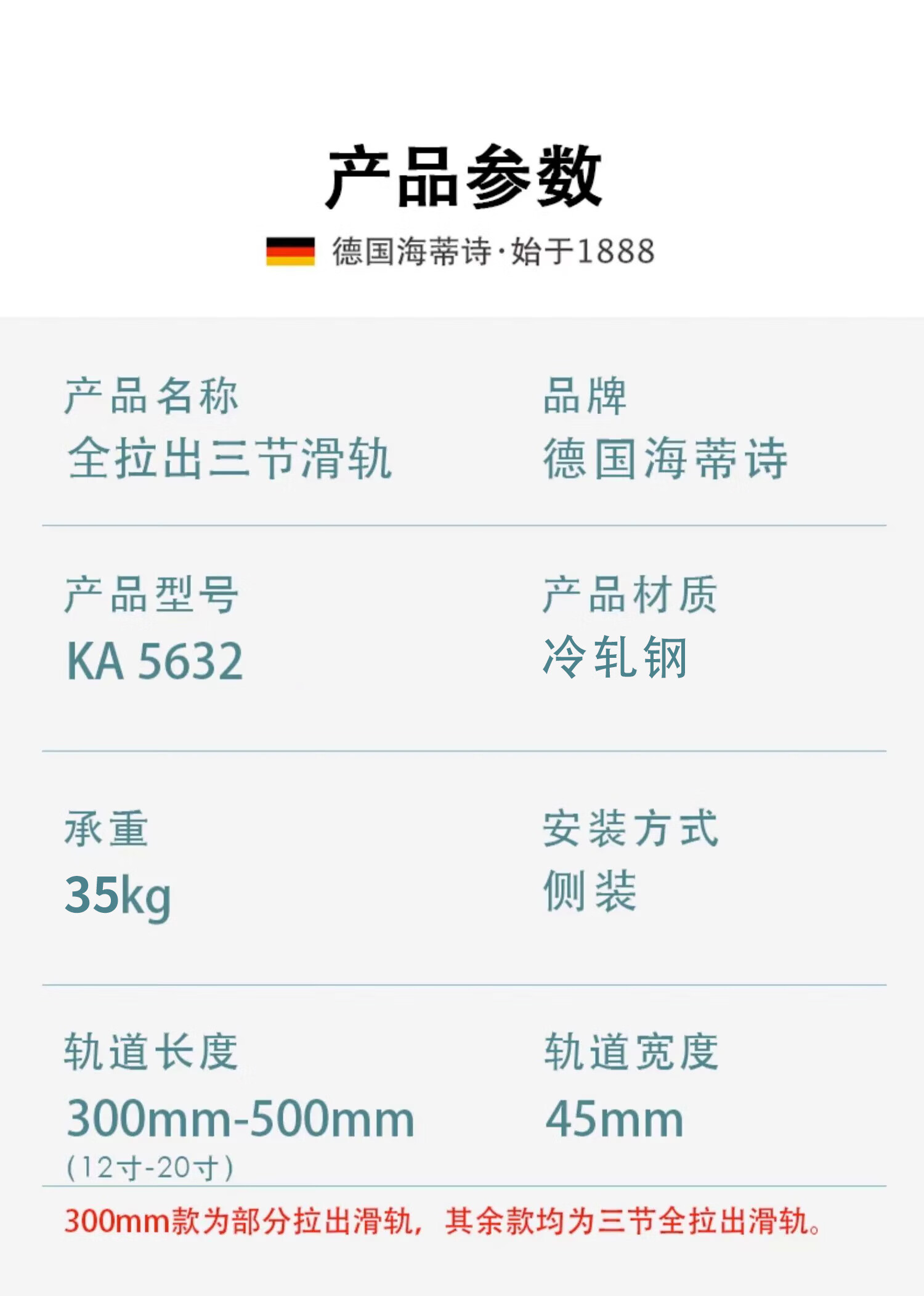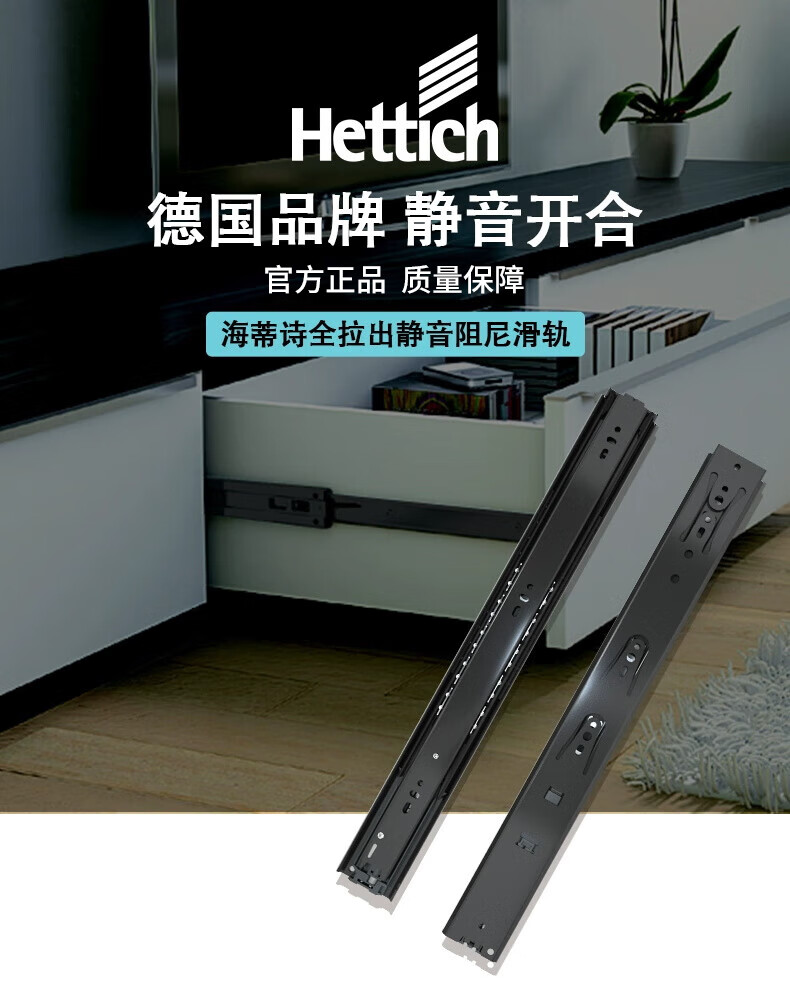 海蒂诗(Hettich)滑轨抽屉轨道阻尼缓冲滑轨加厚三节橱柜滑道导轨 KA5632 黑色 500mm=20寸