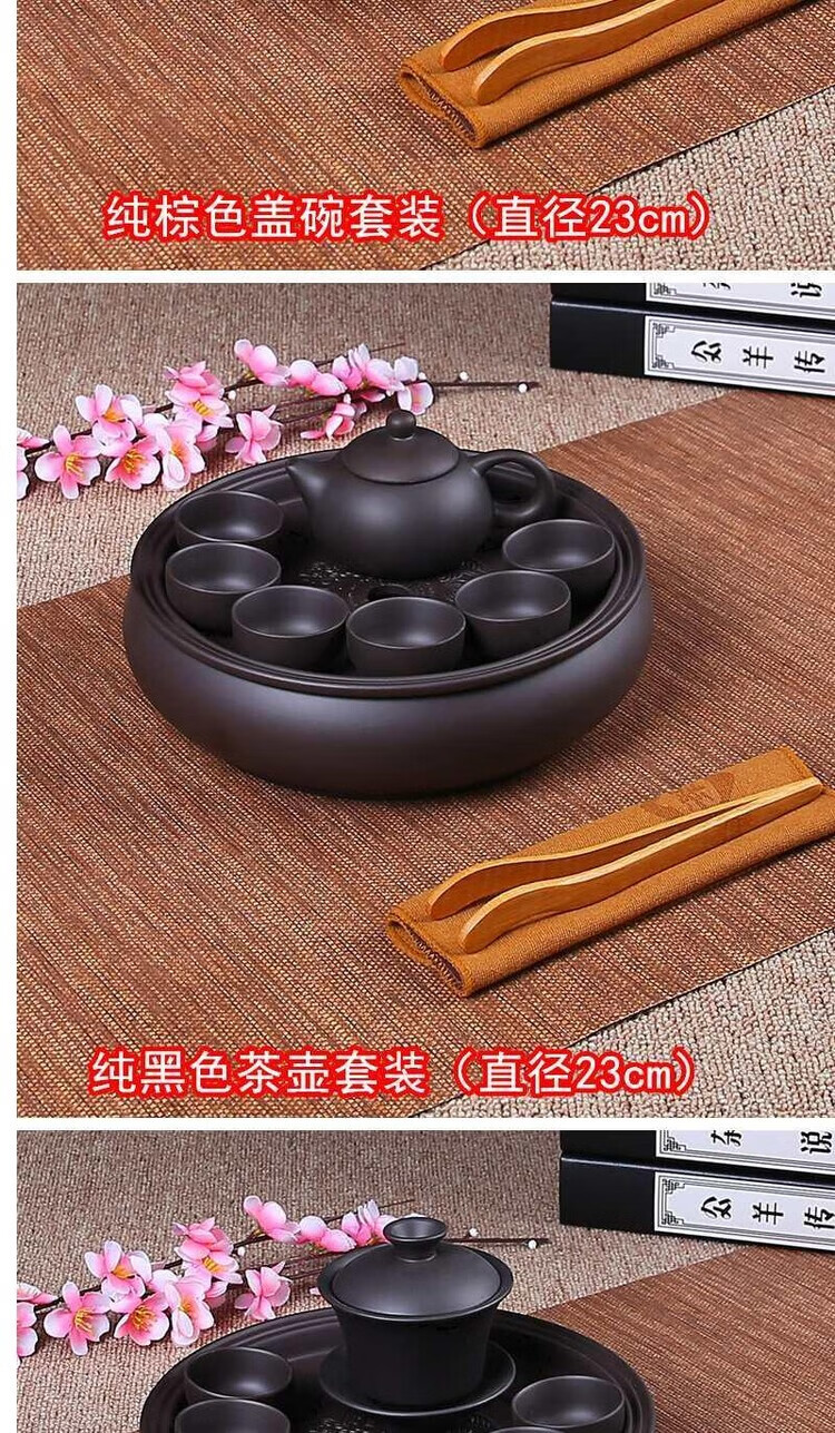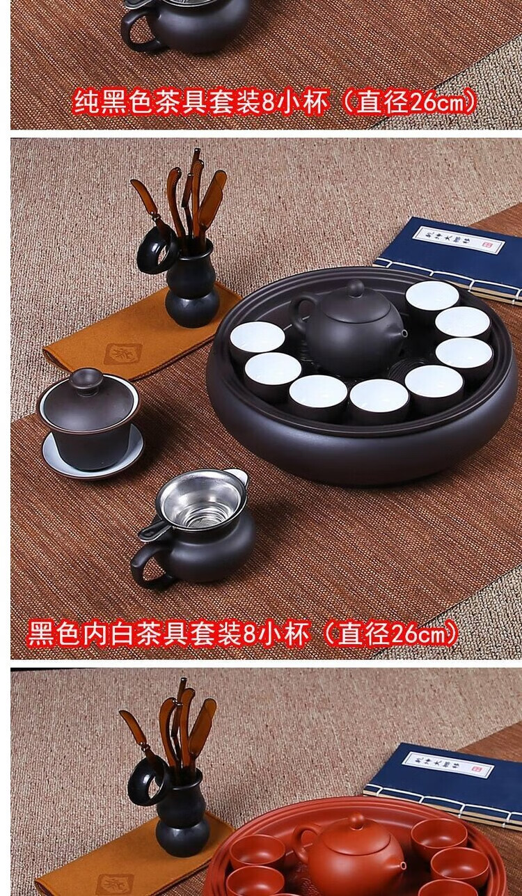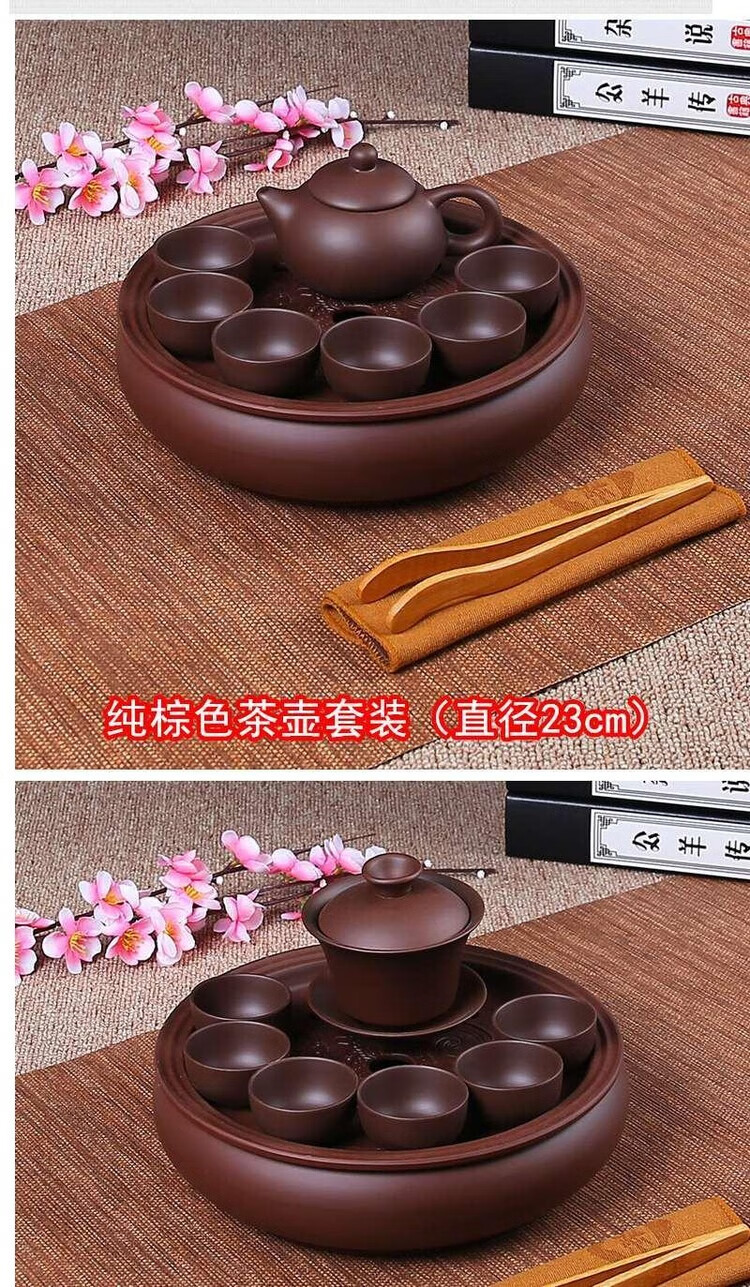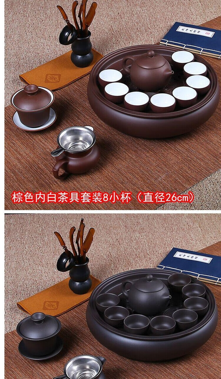 简漾紫砂功夫茶具套装现代家用简约潮汕整套陶瓷茶盘茶壶茶杯泡茶套装 9英寸紫色茶盘