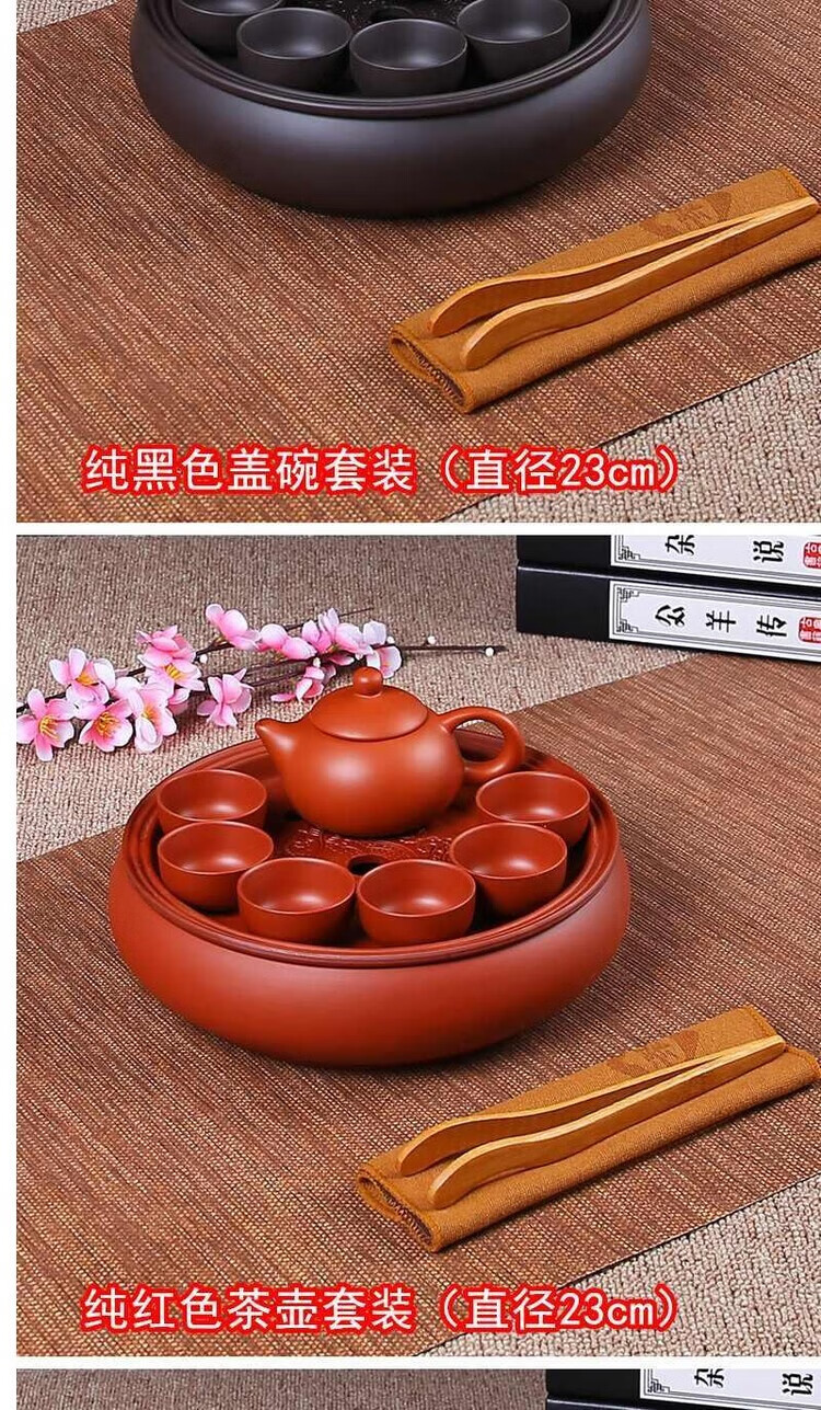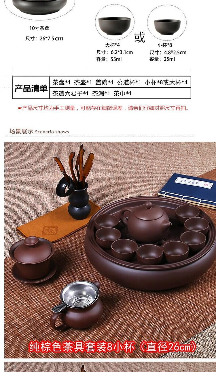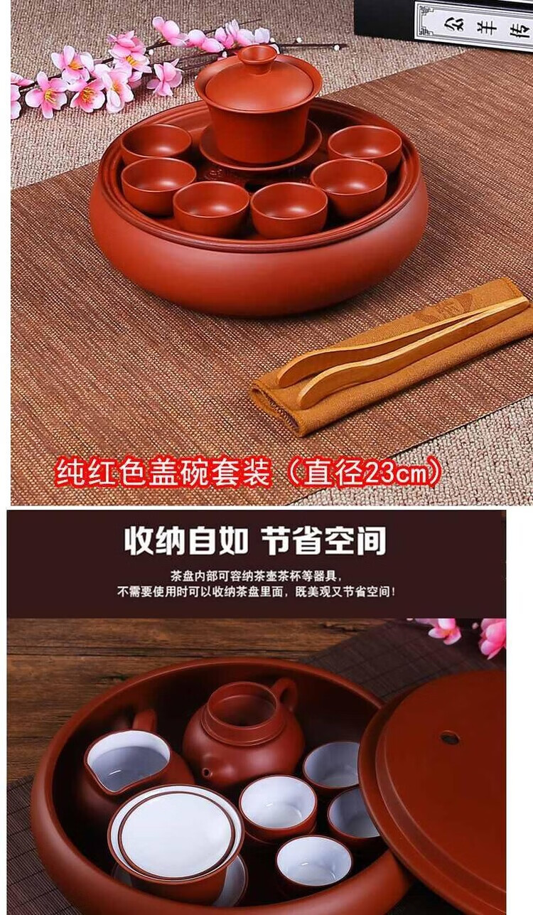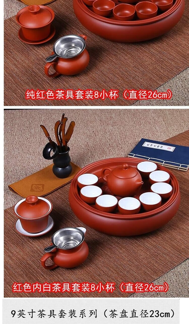 简漾紫砂功夫茶具套装现代家用简约潮汕整套陶瓷茶盘茶壶茶杯泡茶套装 9英寸紫色茶盘