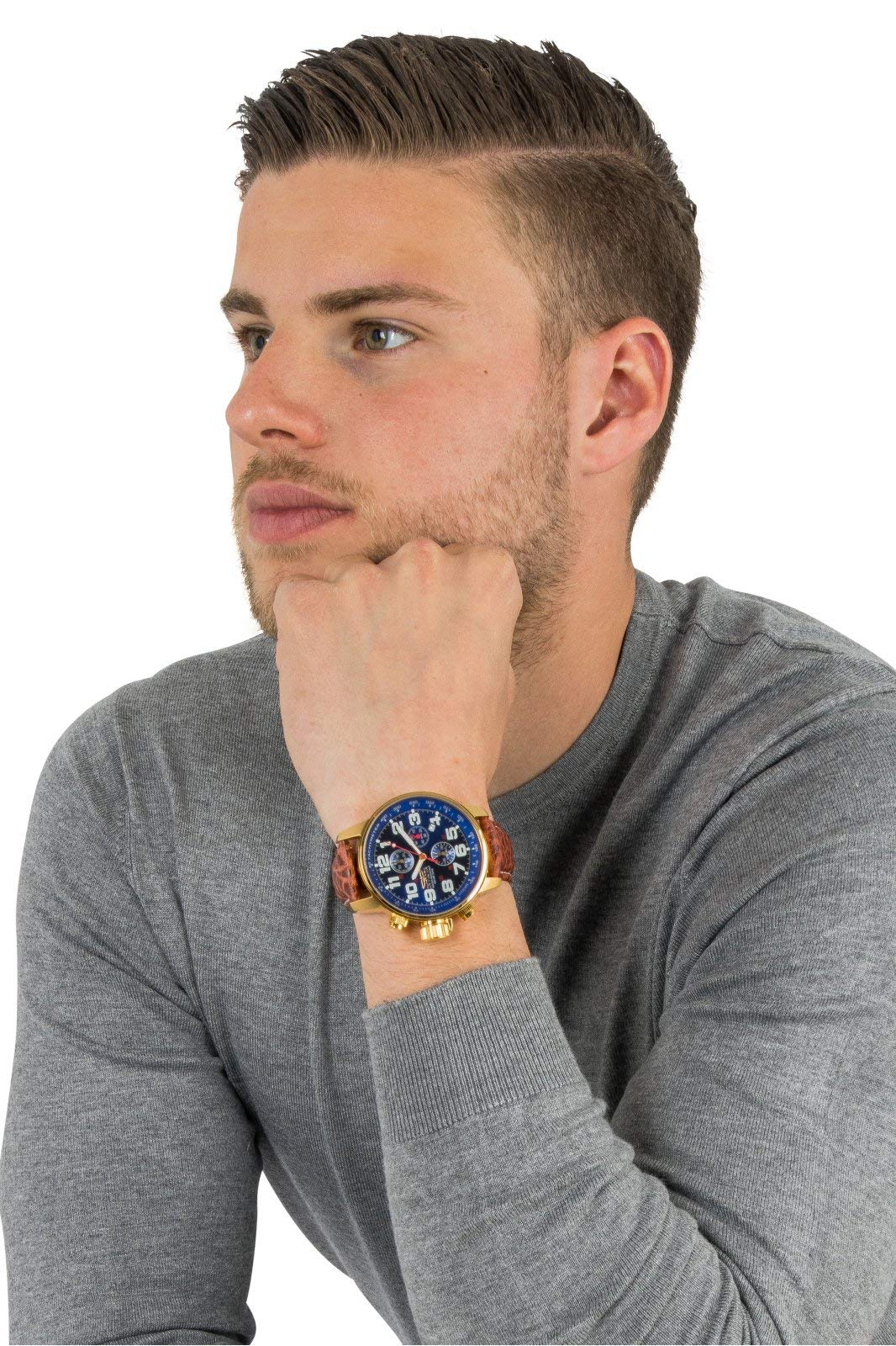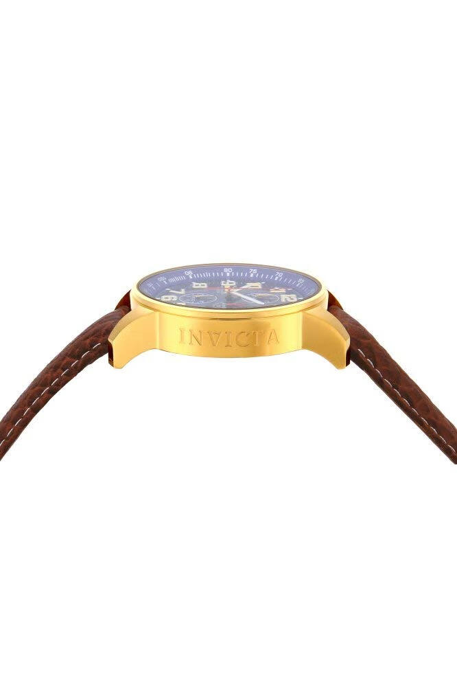 INVICTA 男士左手专属石英手表 皮革表带经典设计 棕色 标准
