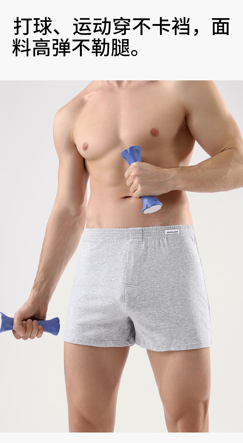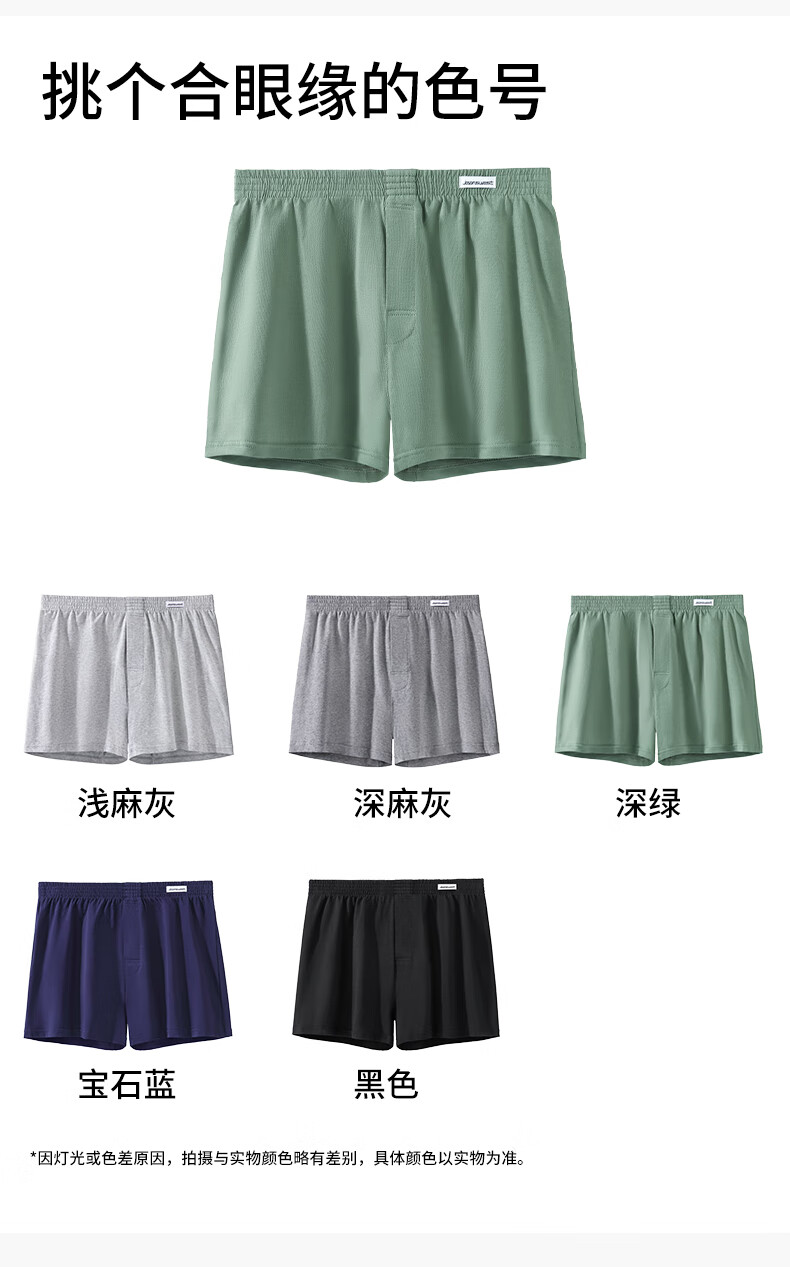 真维斯(Jeanswest)真维斯男士内裤男生长绒棉透气阿罗裤四角裤青少年宽松大码平角裤 【3条装】深麻灰+深绿+宝石蓝 2XL 110-130斤
