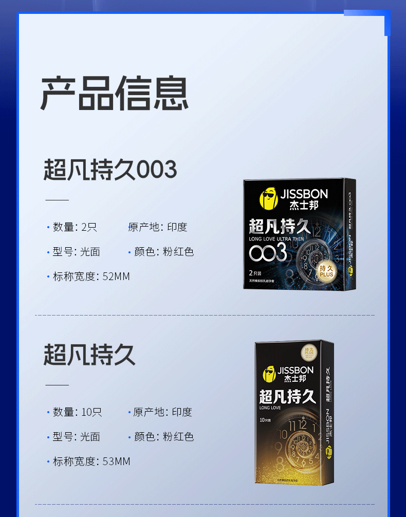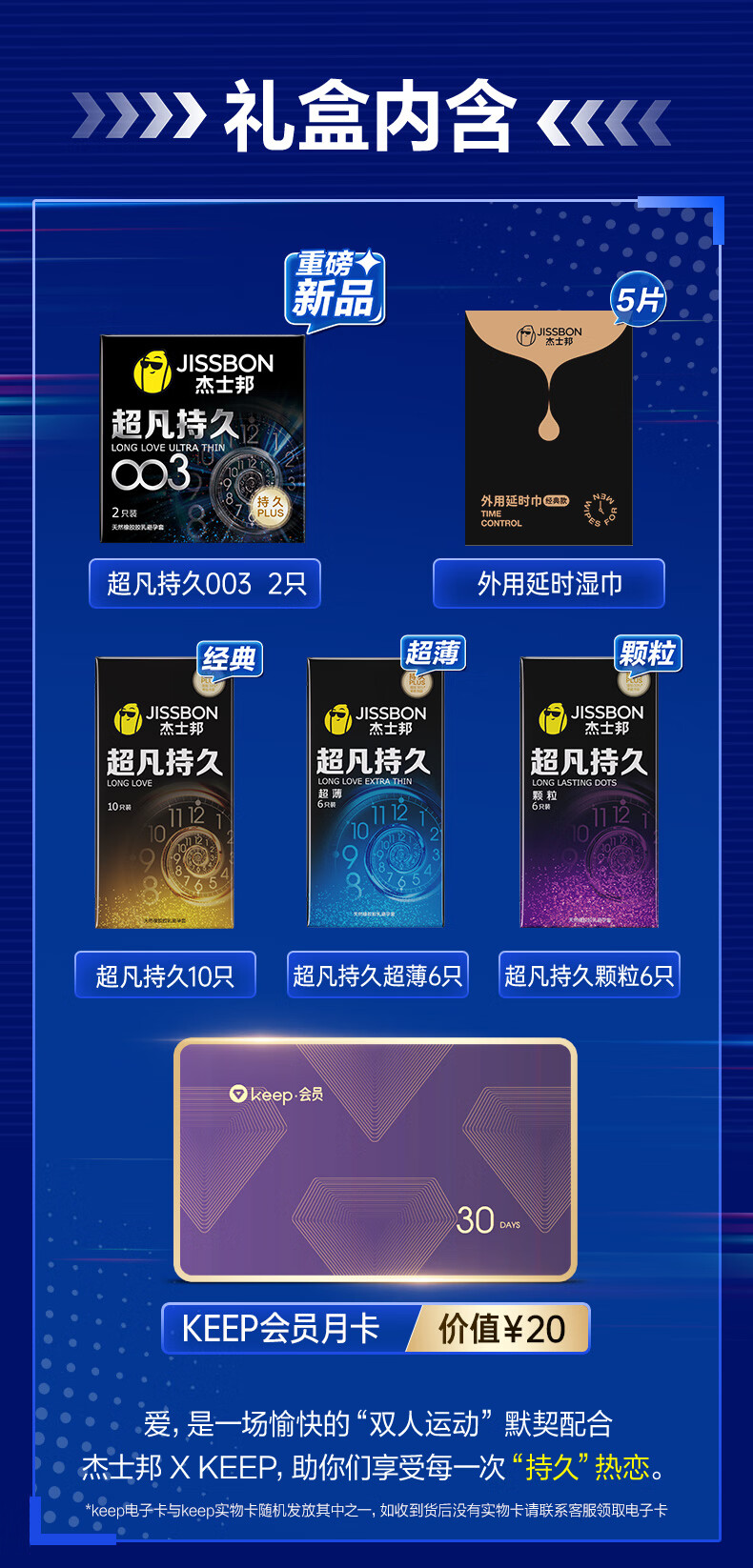 杰士邦延时避孕套超凡持久003礼盒29片(含湿巾)安全套套超薄男专用