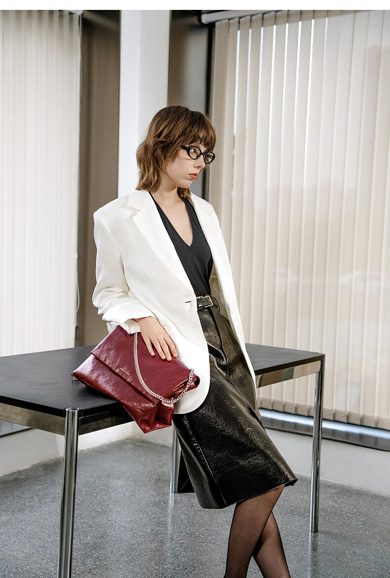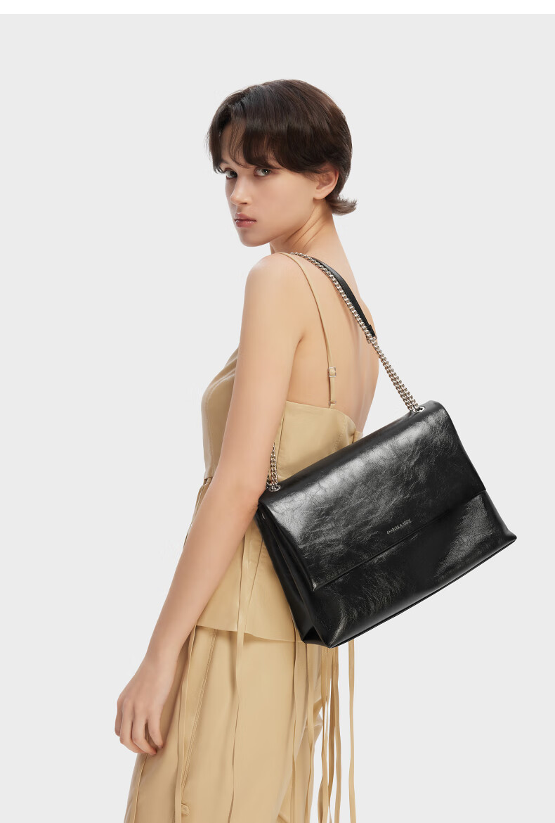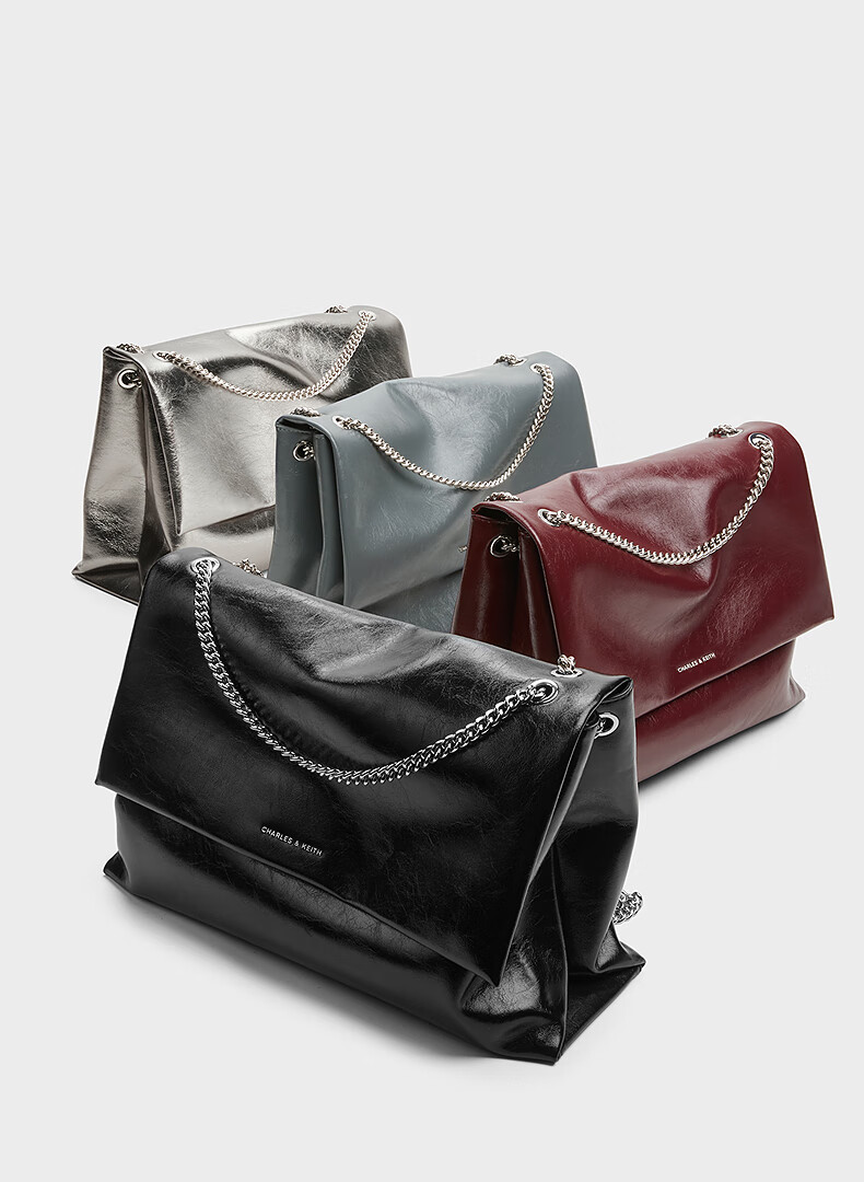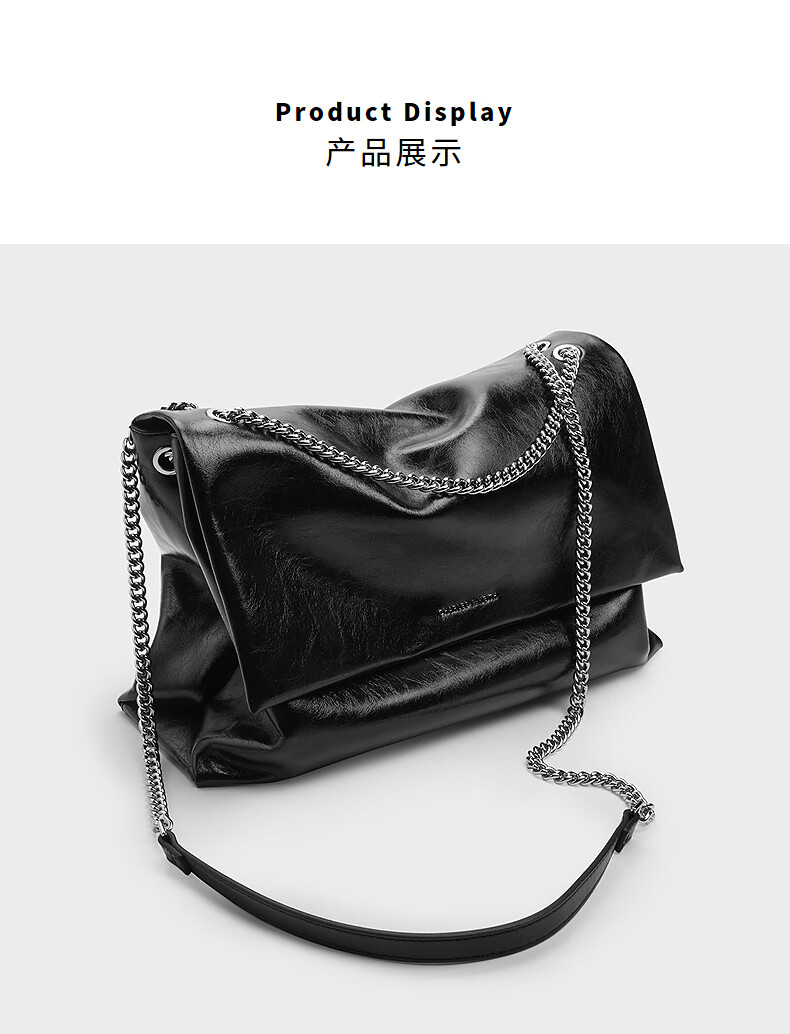 CHARLES&KEITH大容量纯色链条邮差包单肩腋下包包女包婚包圣诞礼物CK2-20271514 Black黑色 大包
