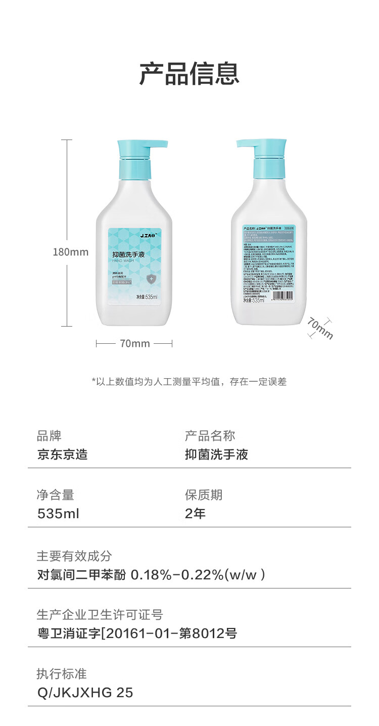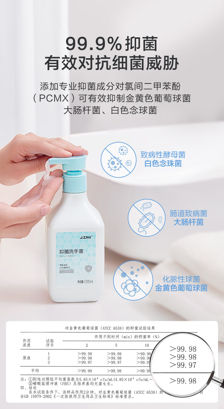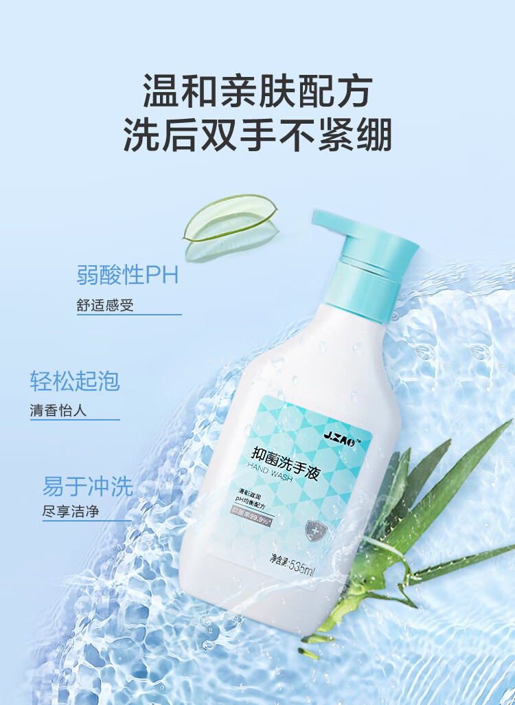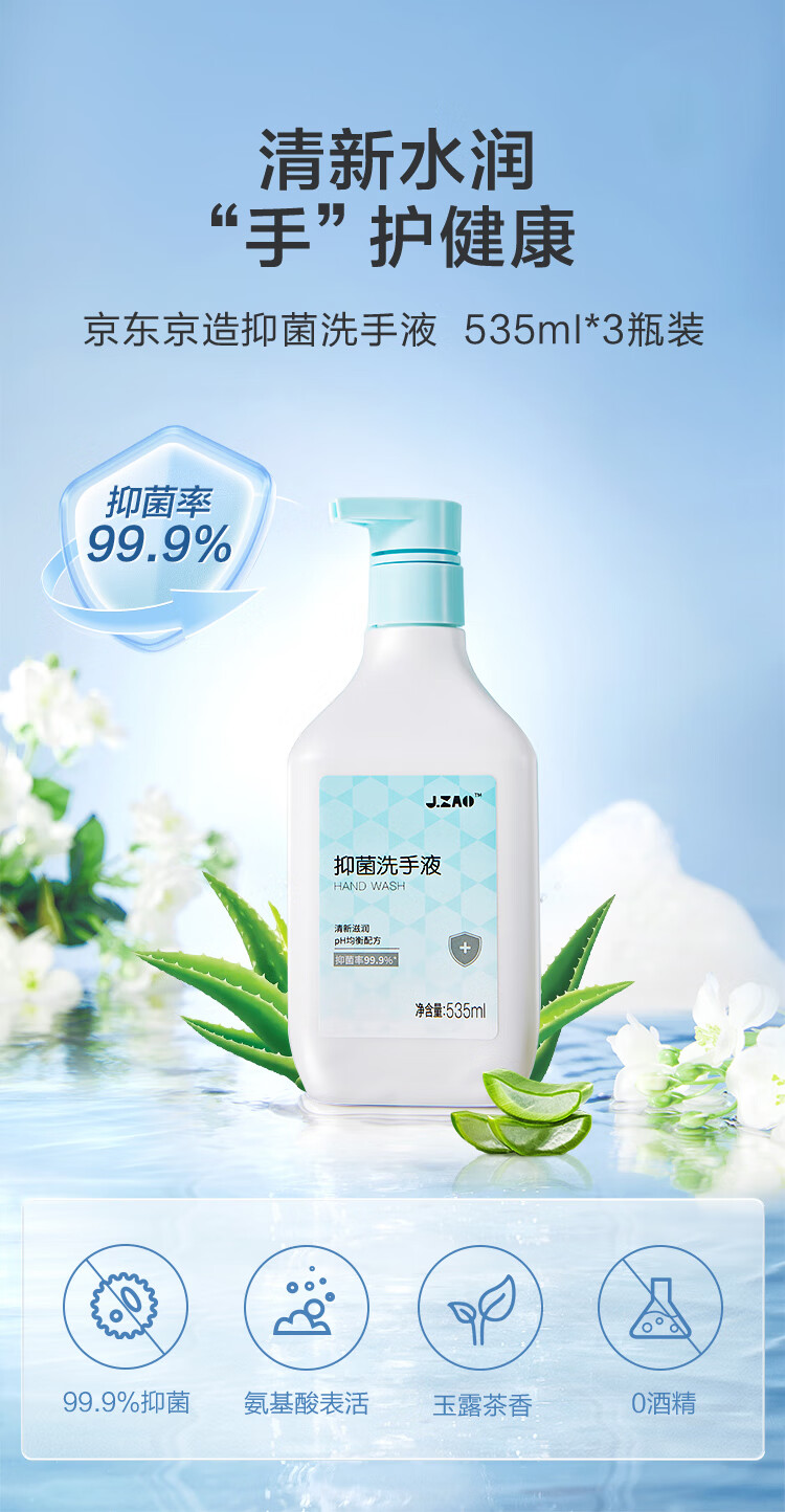 京东京造抑菌洗手液535ml*3 抑菌99.9% 氨基酸温和0酒精不伤手