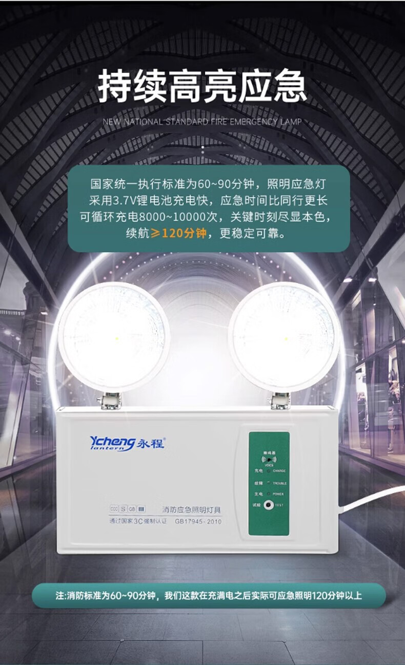 振牛消防应急灯安全出口新国标led充电式紧急停电疏散双头应急照明灯 【新国标】 经济款应急灯
