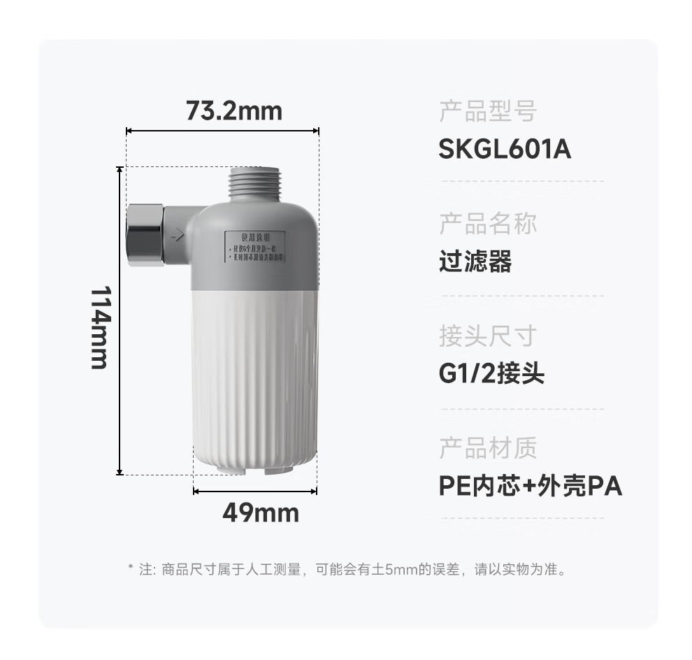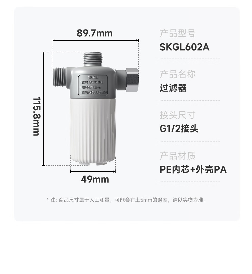 浪鲸(SSWW)智能马桶过滤器净水过滤滤芯 601A 防冻过滤器(一进一出)