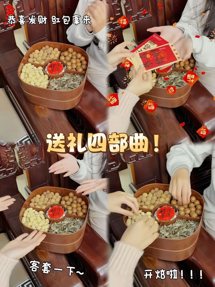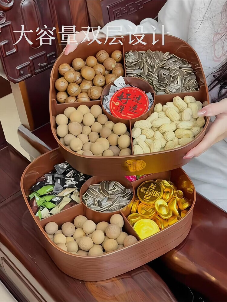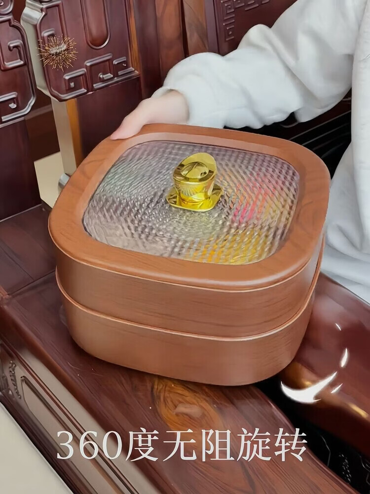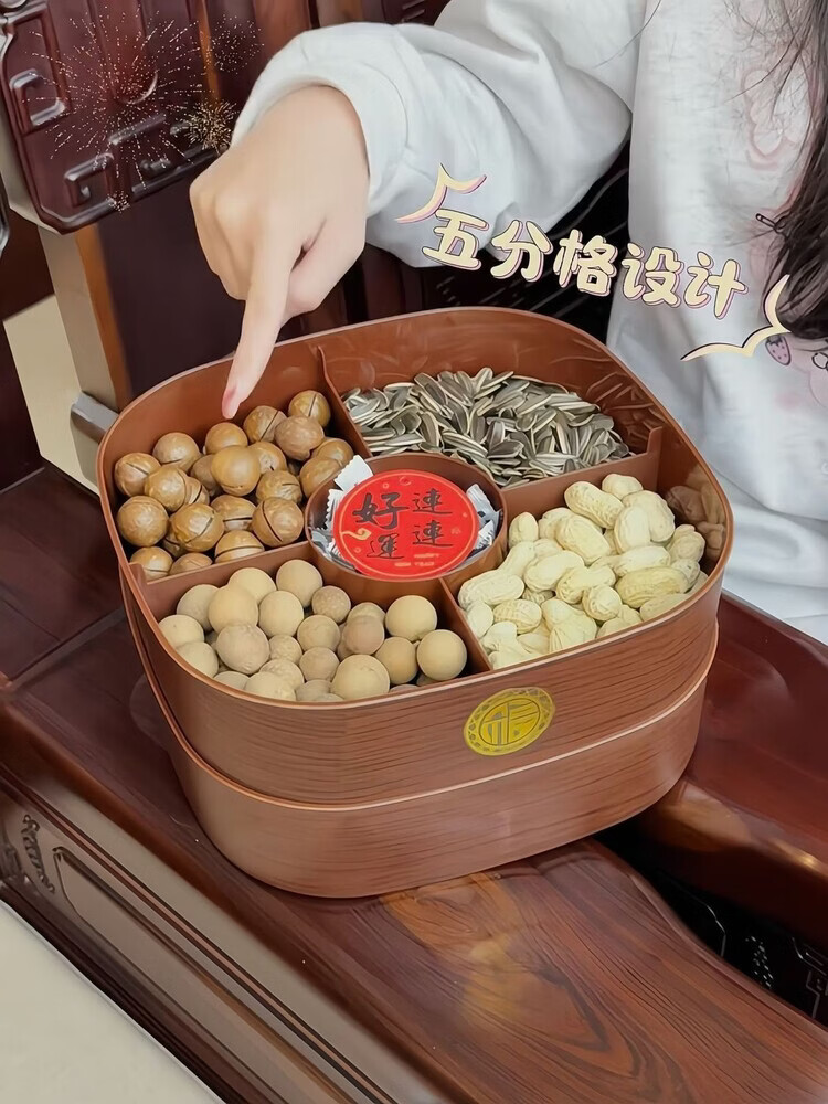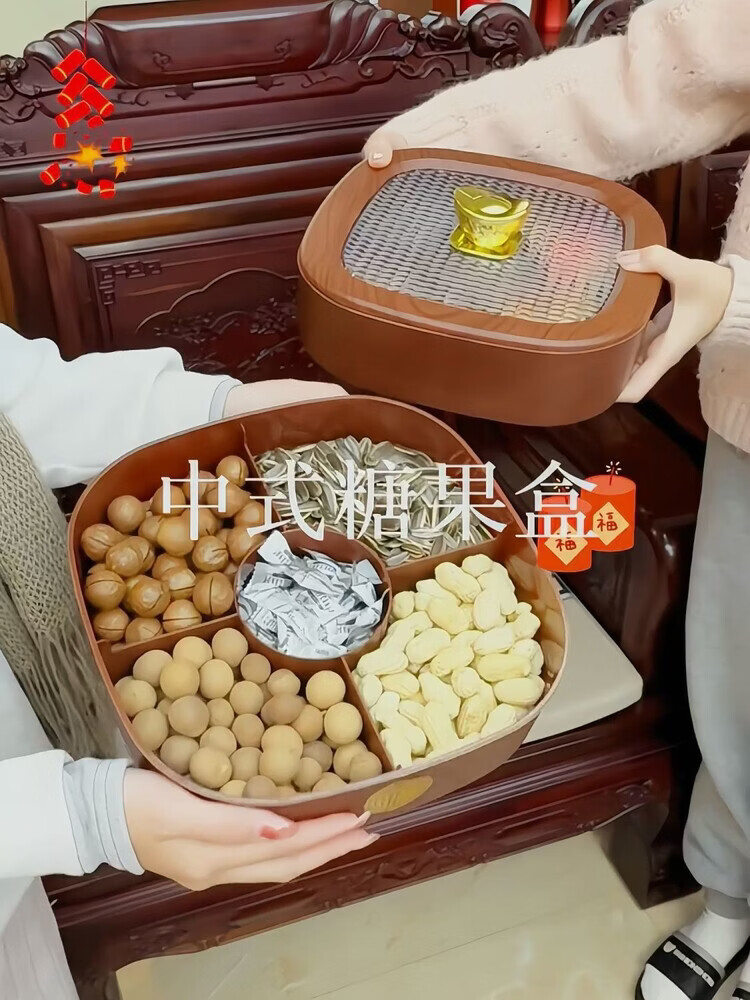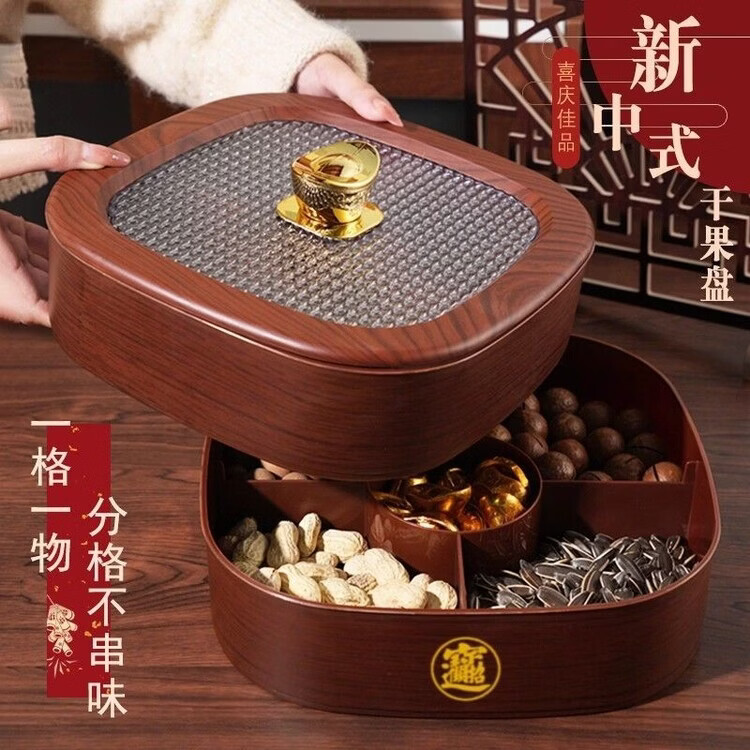 咏夏高端干果盒中国风果盘高端精致高颜值实木纹坚果盒2025家用糖果盘 单层【可旋转】加厚版