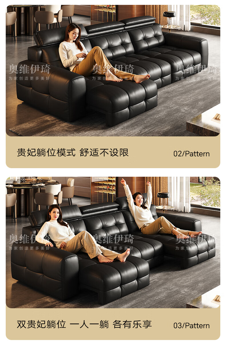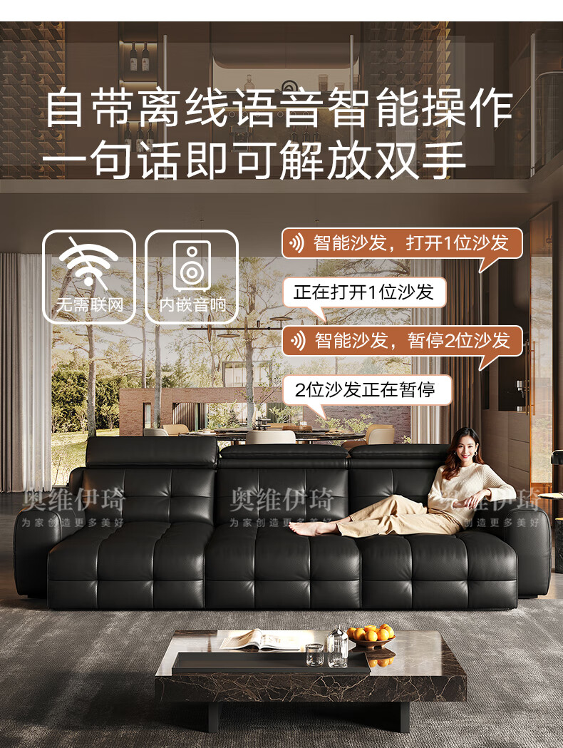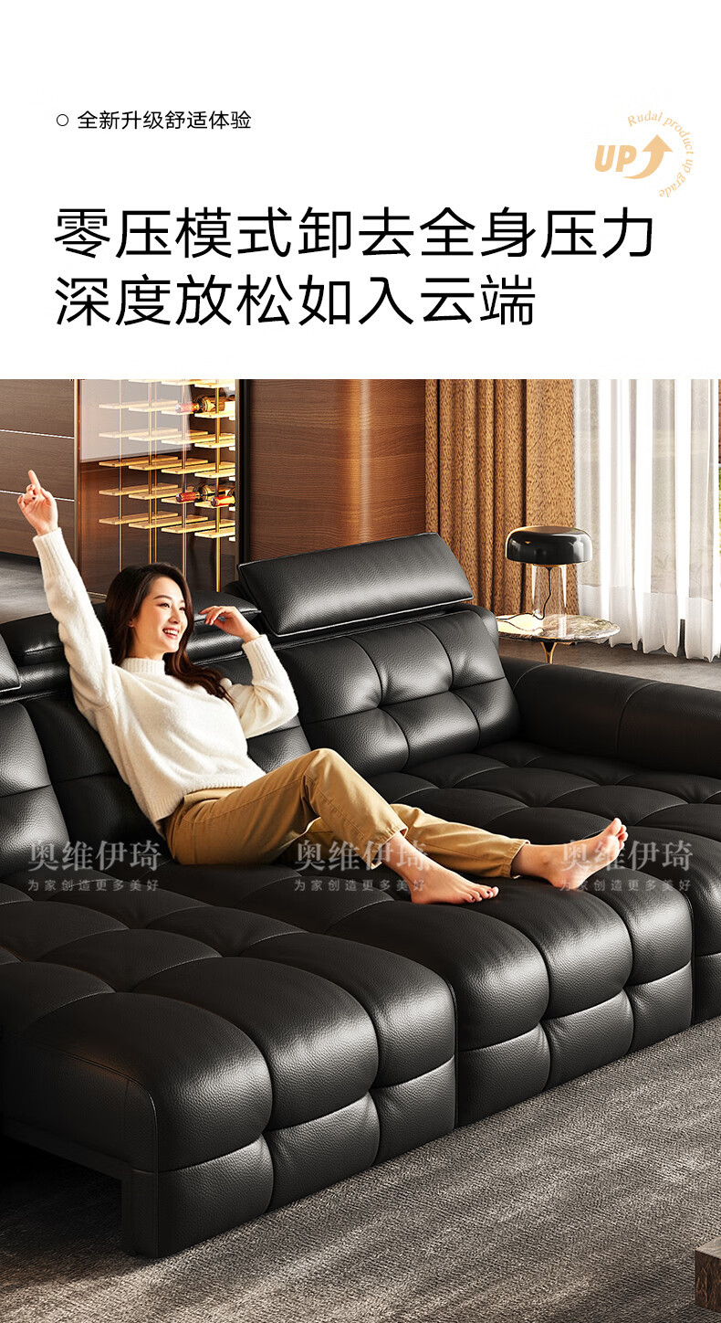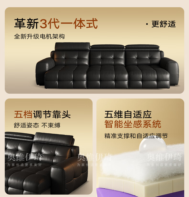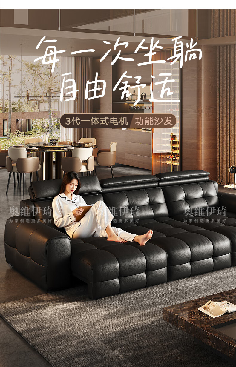 奥维伊琦国家补贴真皮沙发多功能智能电动真皮沙发头层牛皮可伸缩调节沙发 2.9米【三人位电动】【全新升级框架-终身质保】 【豪华版(接触面)】2.4mm进口头层黄牛皮