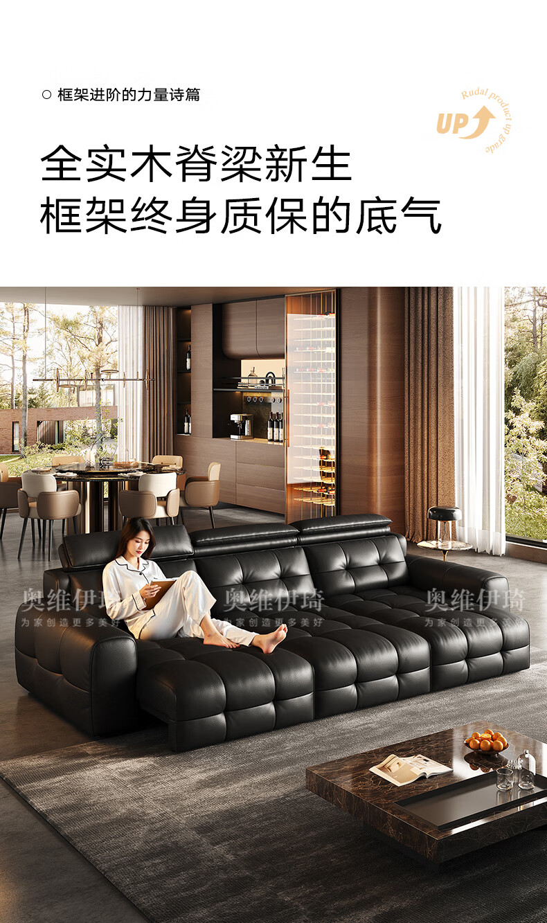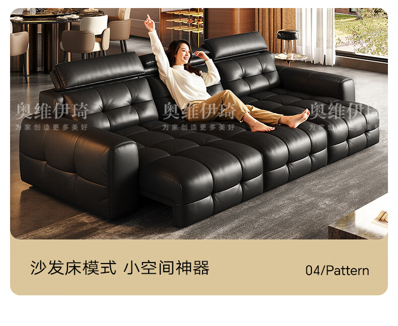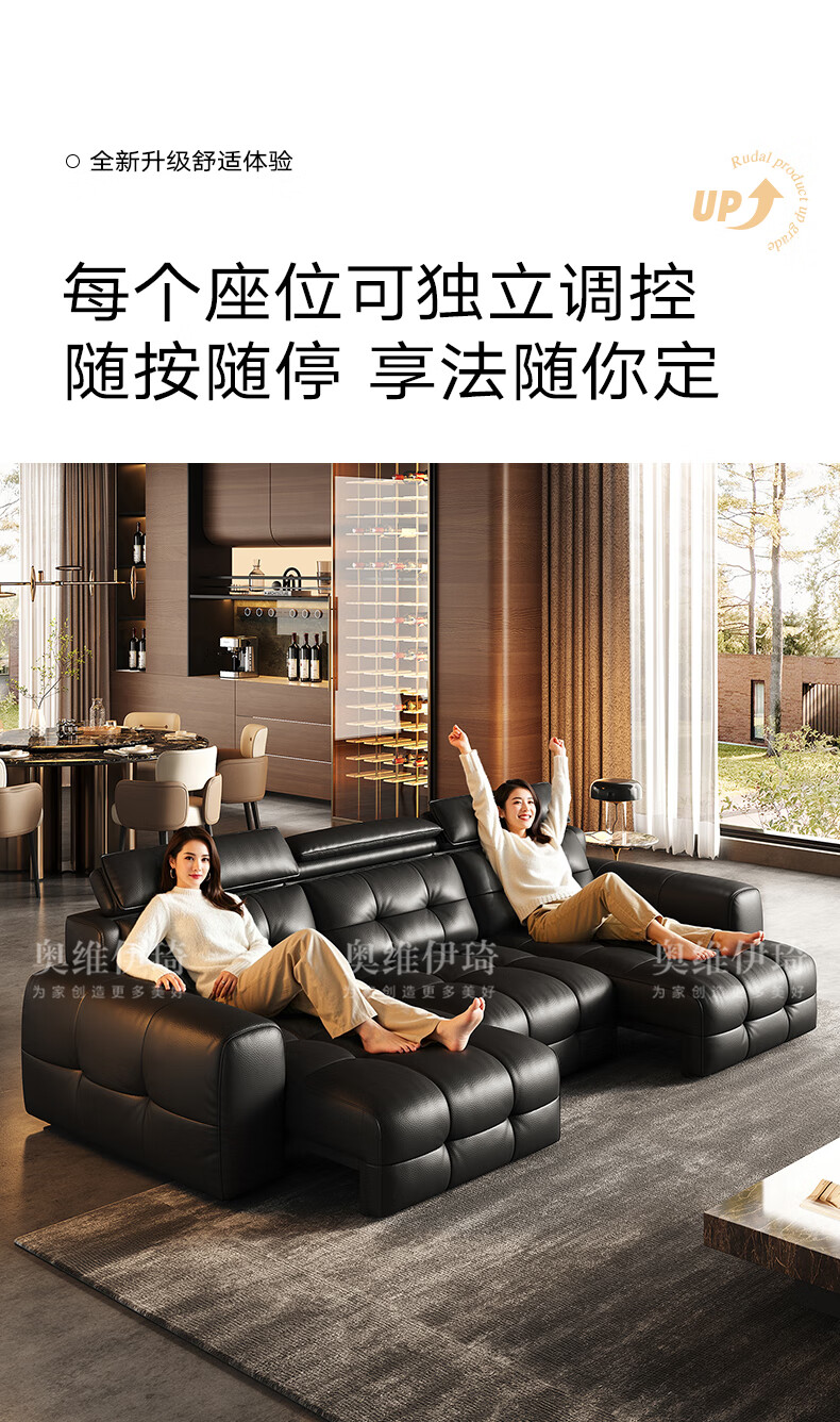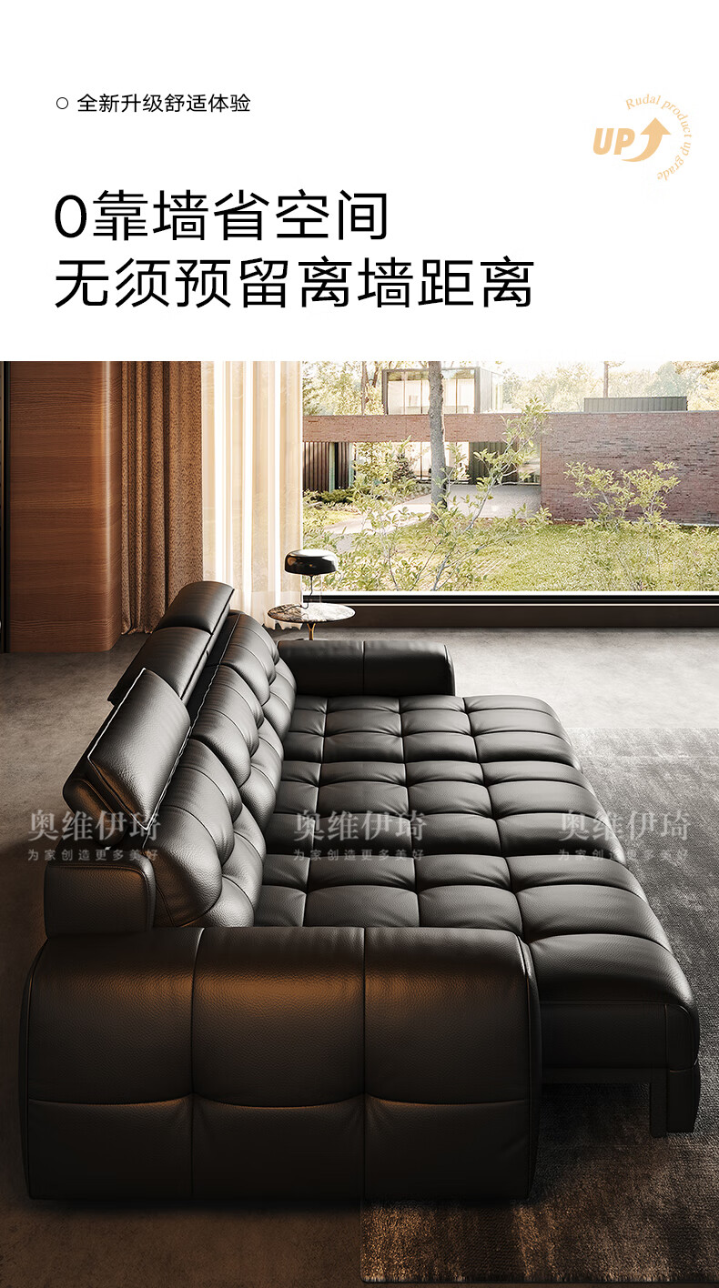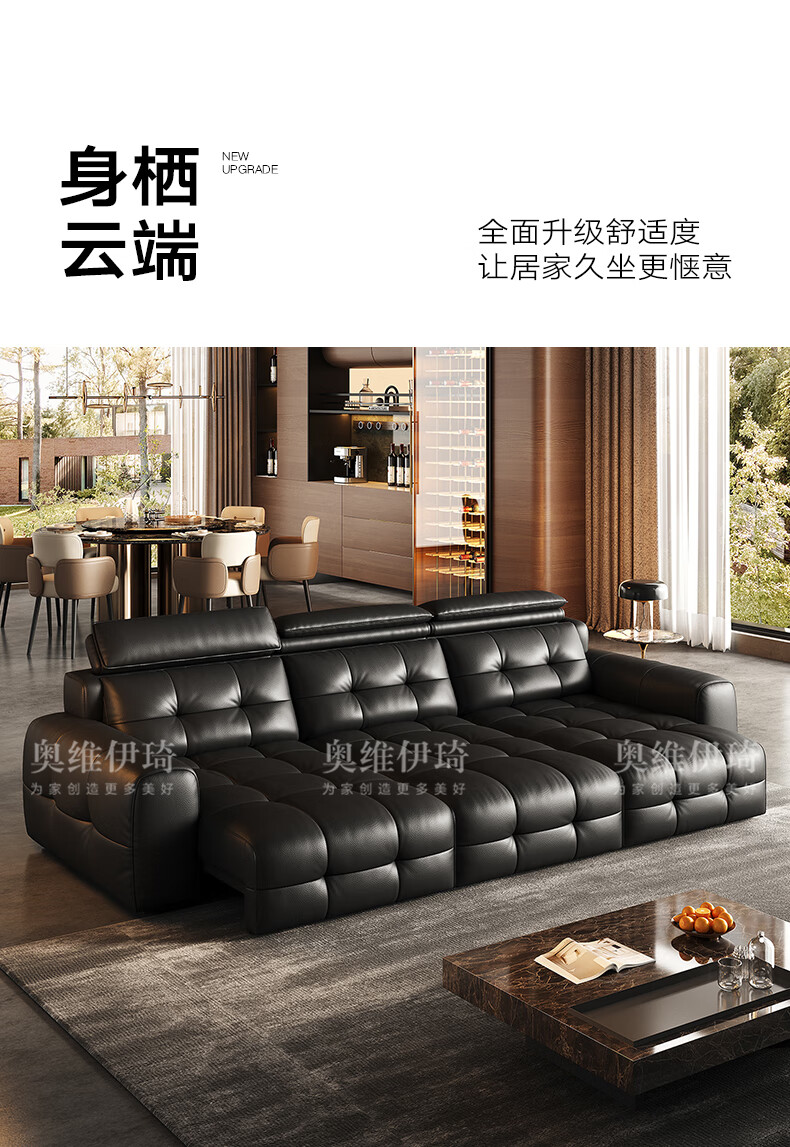 奥维伊琦国家补贴真皮沙发多功能智能电动真皮沙发头层牛皮可伸缩调节沙发 2.9米【三人位电动】【全新升级框架-终身质保】 【豪华版(接触面)】2.4mm进口头层黄牛皮