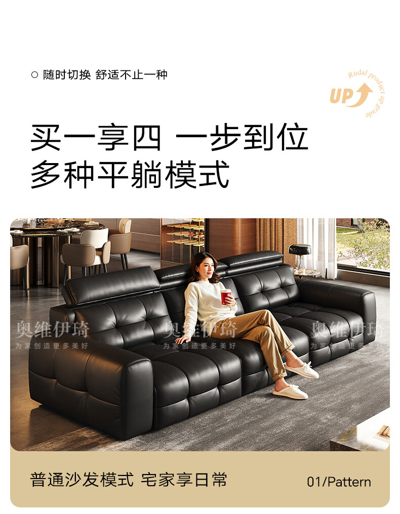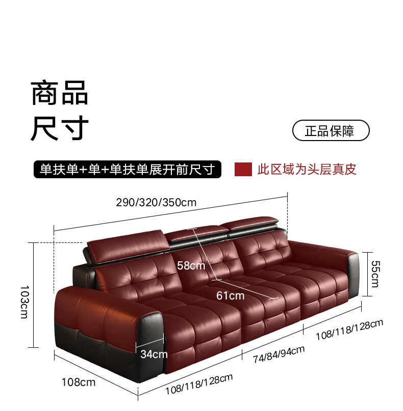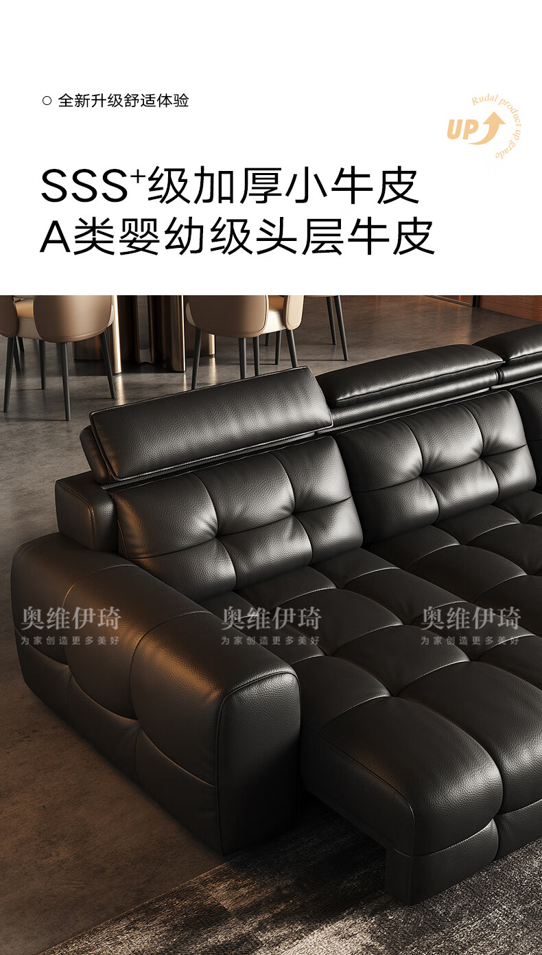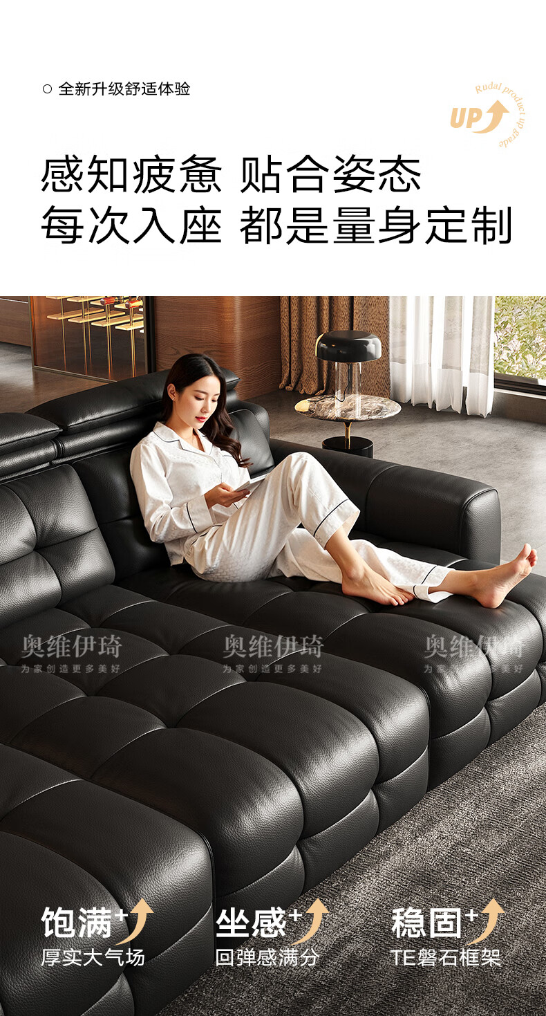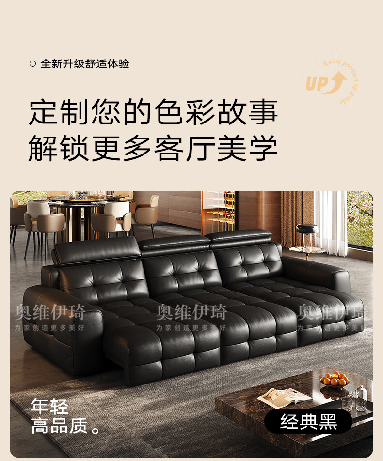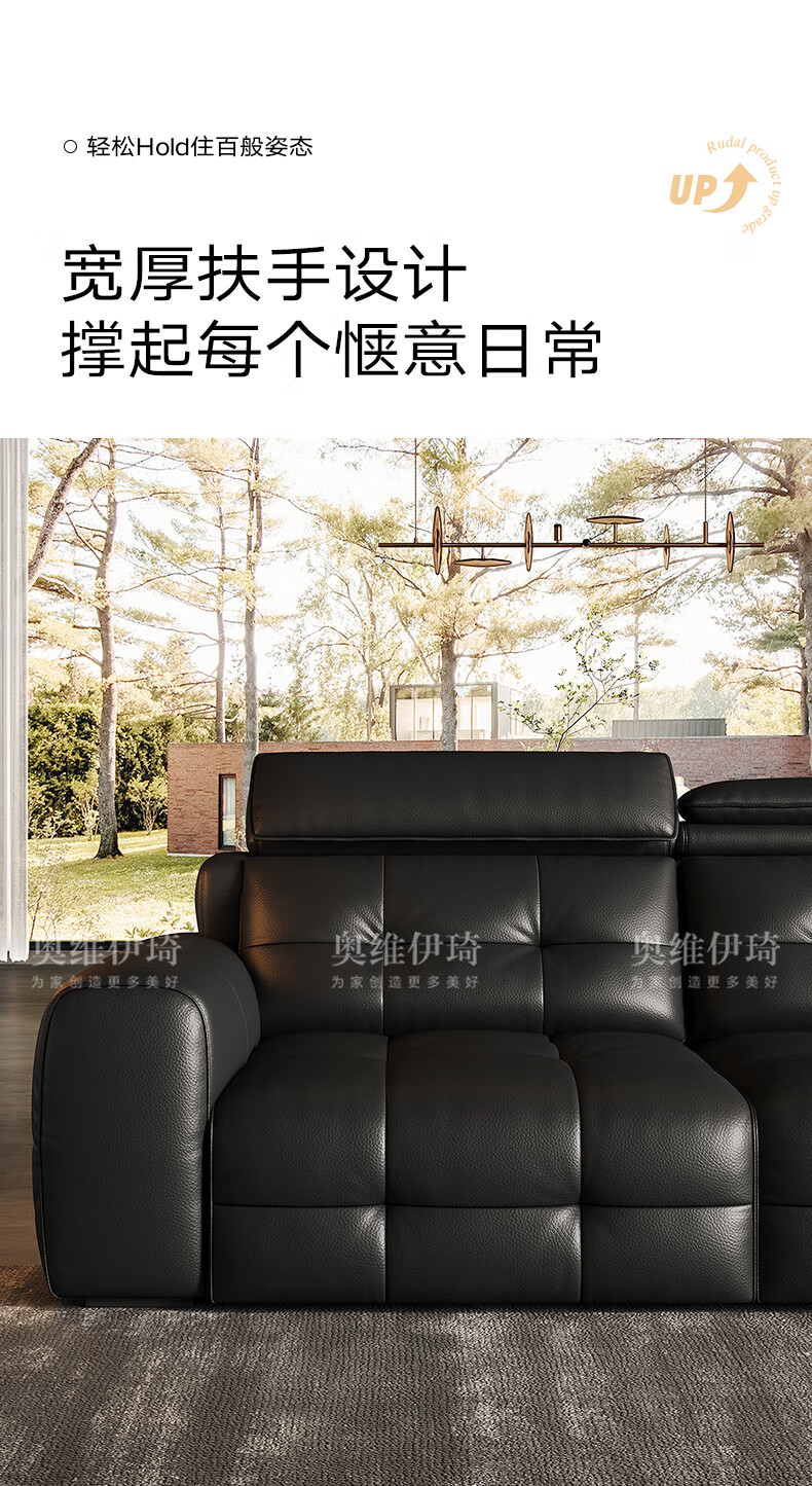 奥维伊琦国家补贴真皮沙发多功能智能电动真皮沙发头层牛皮可伸缩调节沙发 2.9米【三人位电动】【全新升级框架-终身质保】 【豪华版(接触面)】2.4mm进口头层黄牛皮
