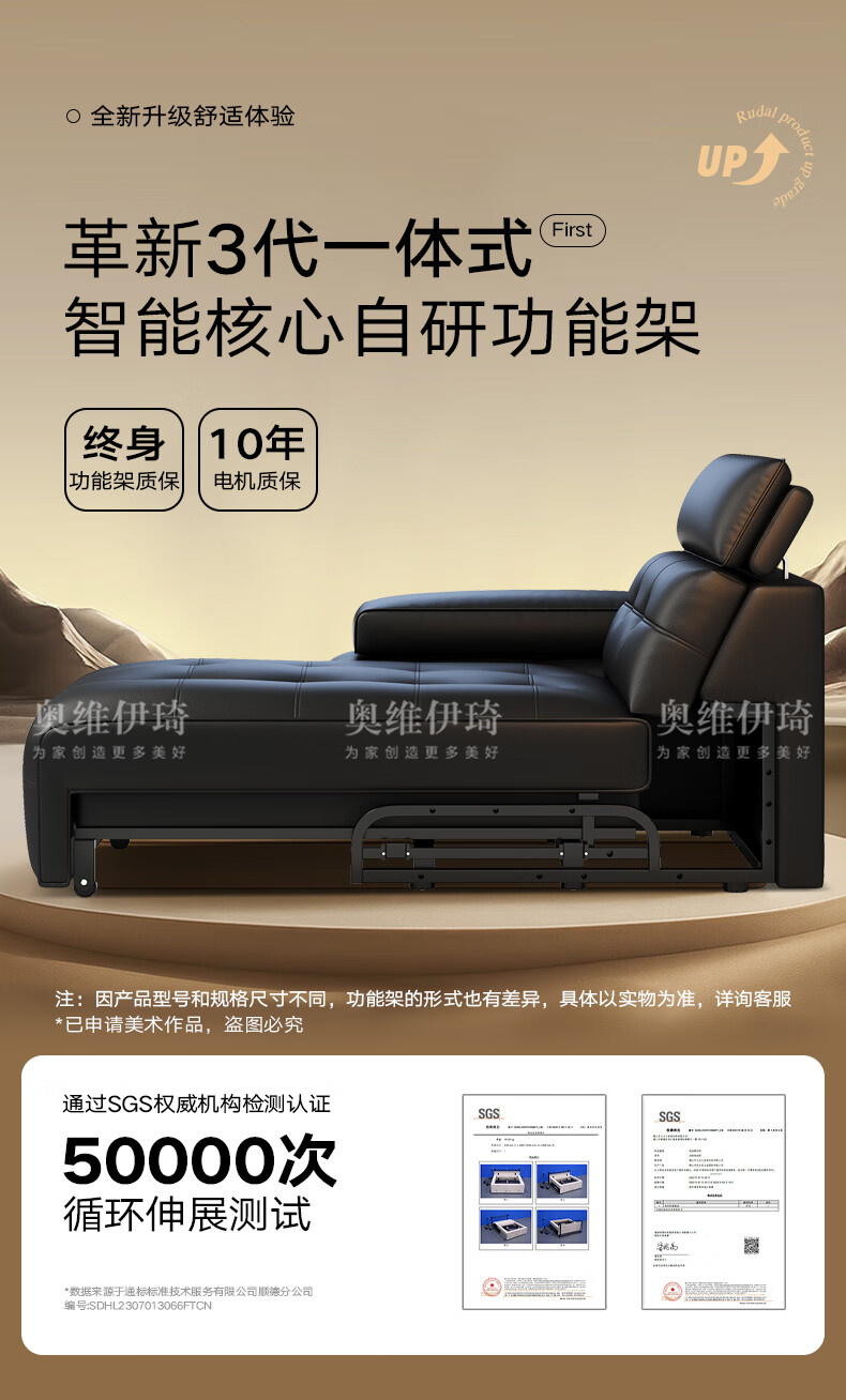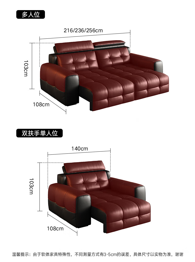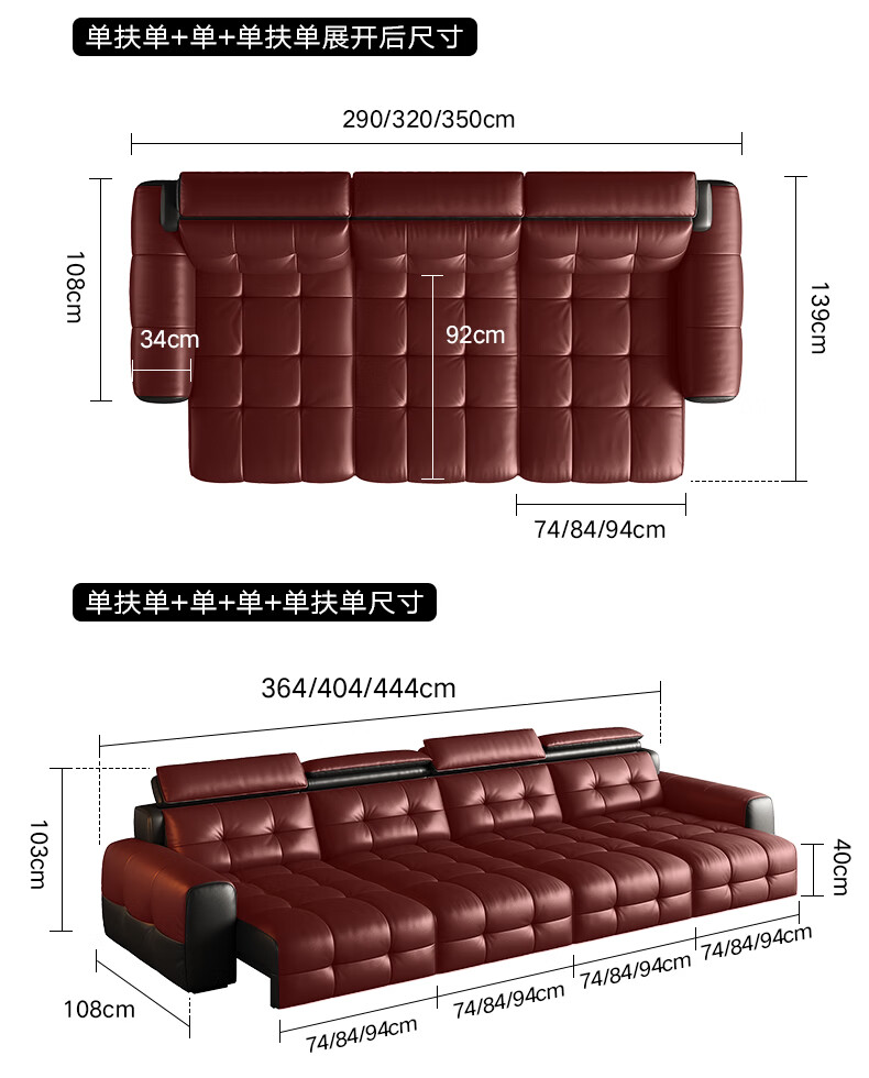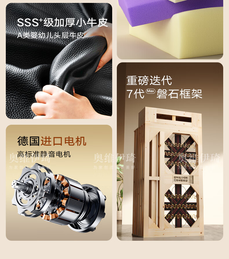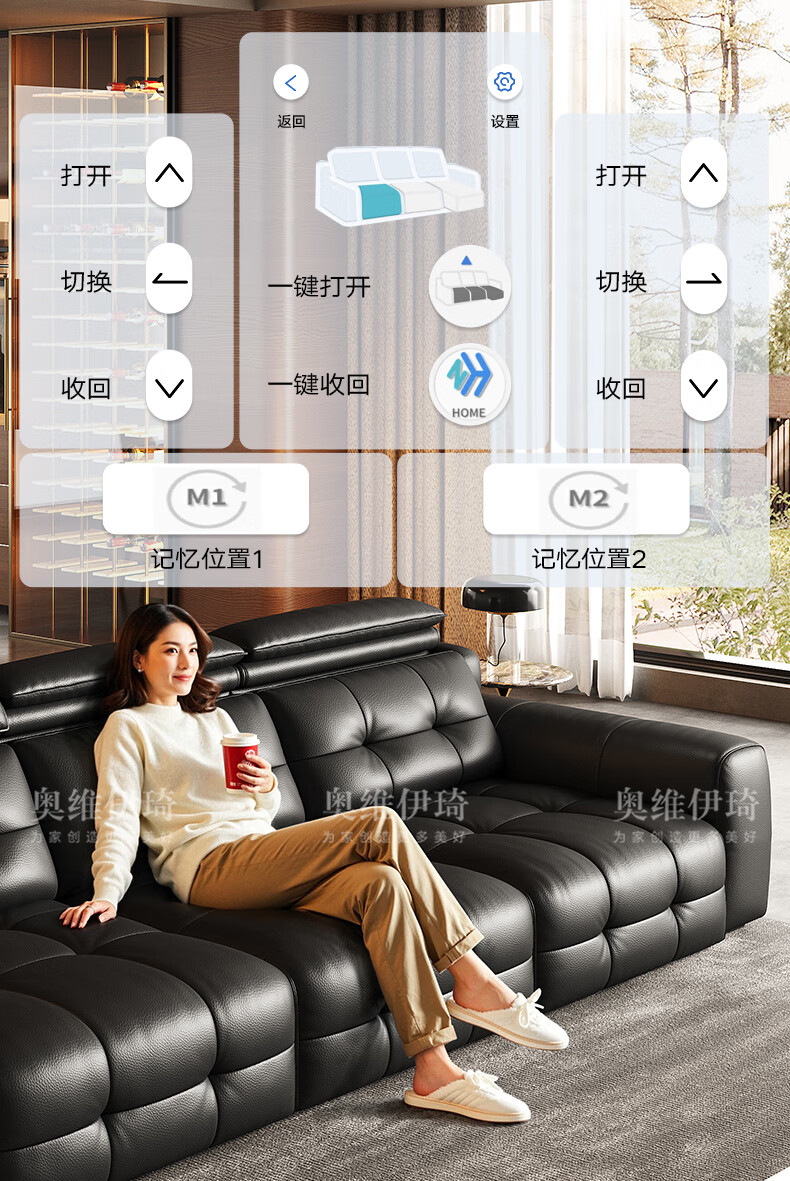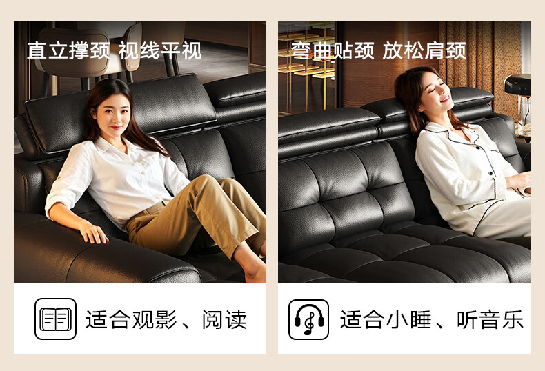 奥维伊琦国家补贴真皮沙发多功能智能电动真皮沙发头层牛皮可伸缩调节沙发 2.9米【三人位电动】【全新升级框架-终身质保】 【豪华版(接触面)】2.4mm进口头层黄牛皮