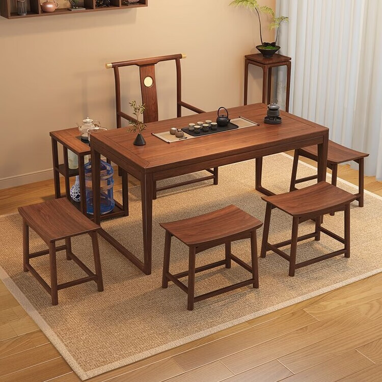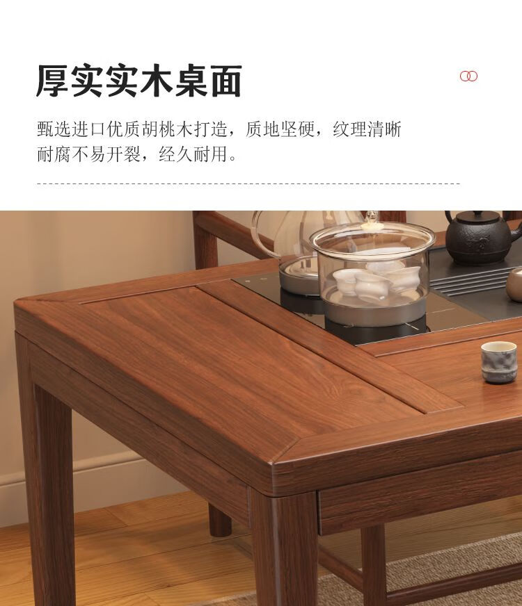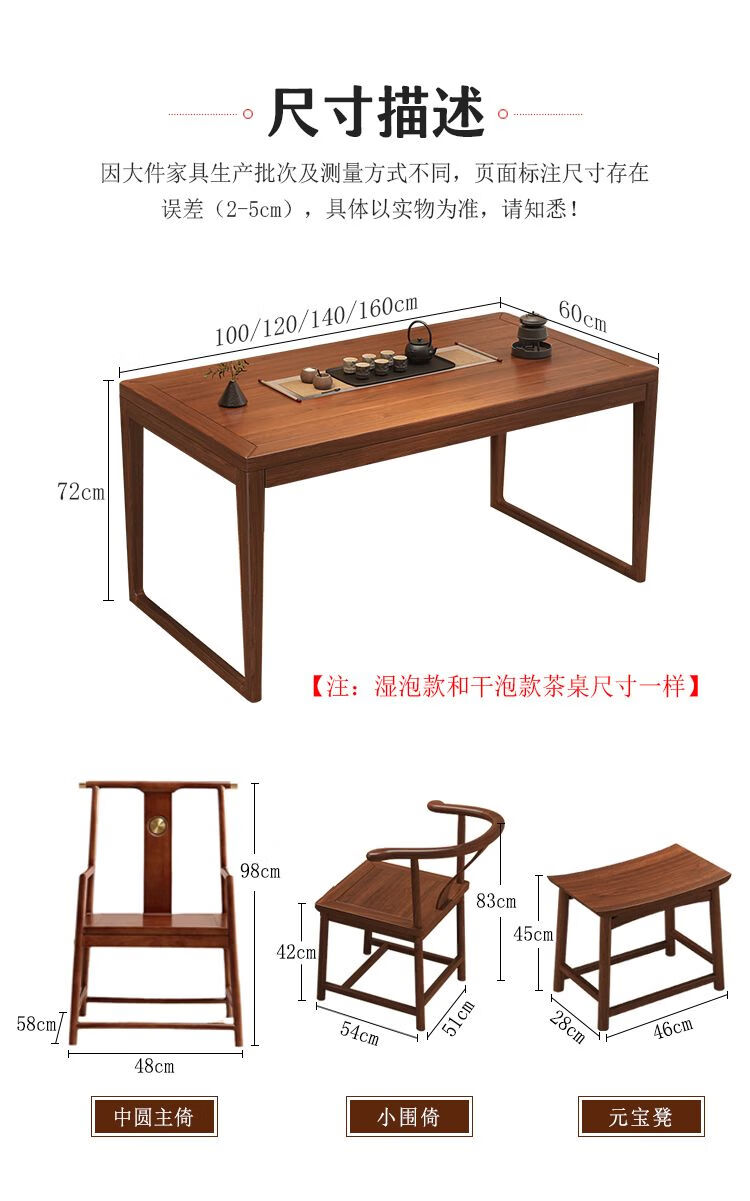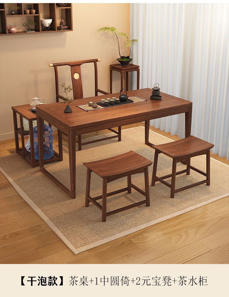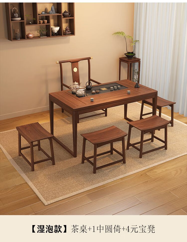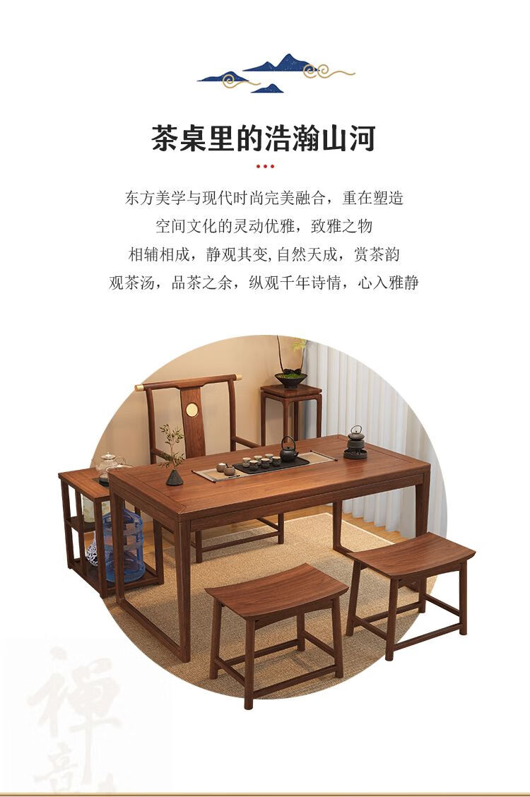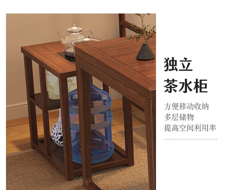 迈途森胡桃木茶台阳台小型实木茶桌椅组合客厅家用小茶台简约功夫茶几 1米素茗平面款+1中圆椅2元宝凳+茶水柜 送货上门