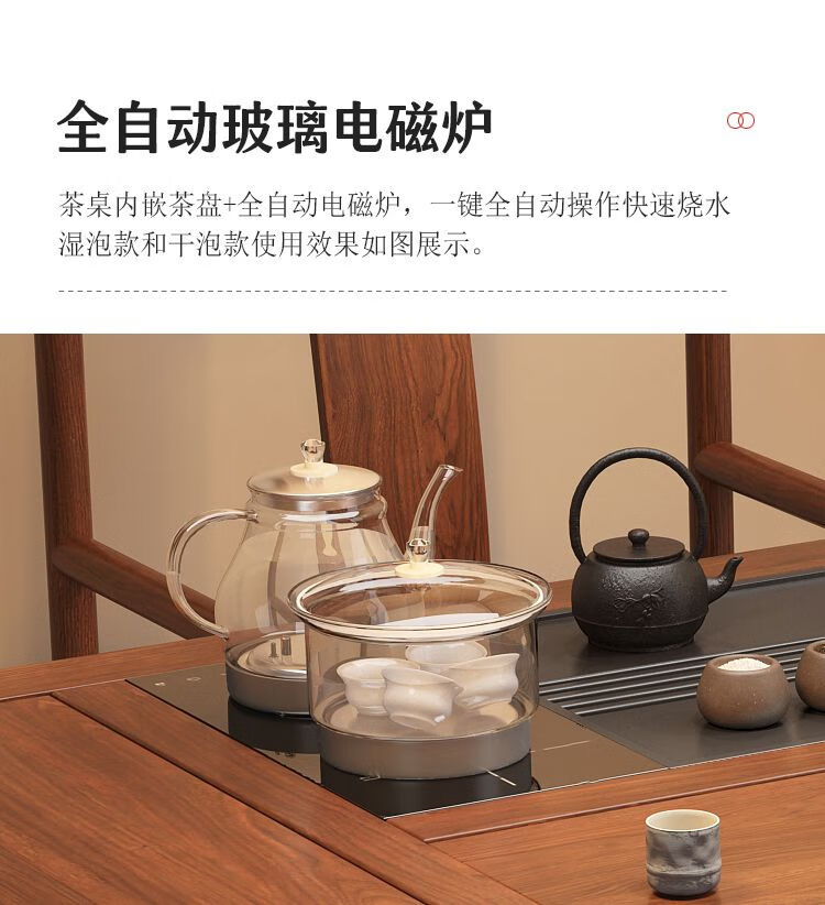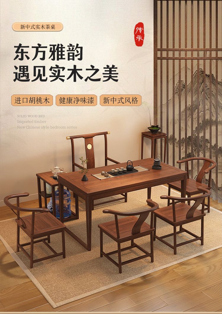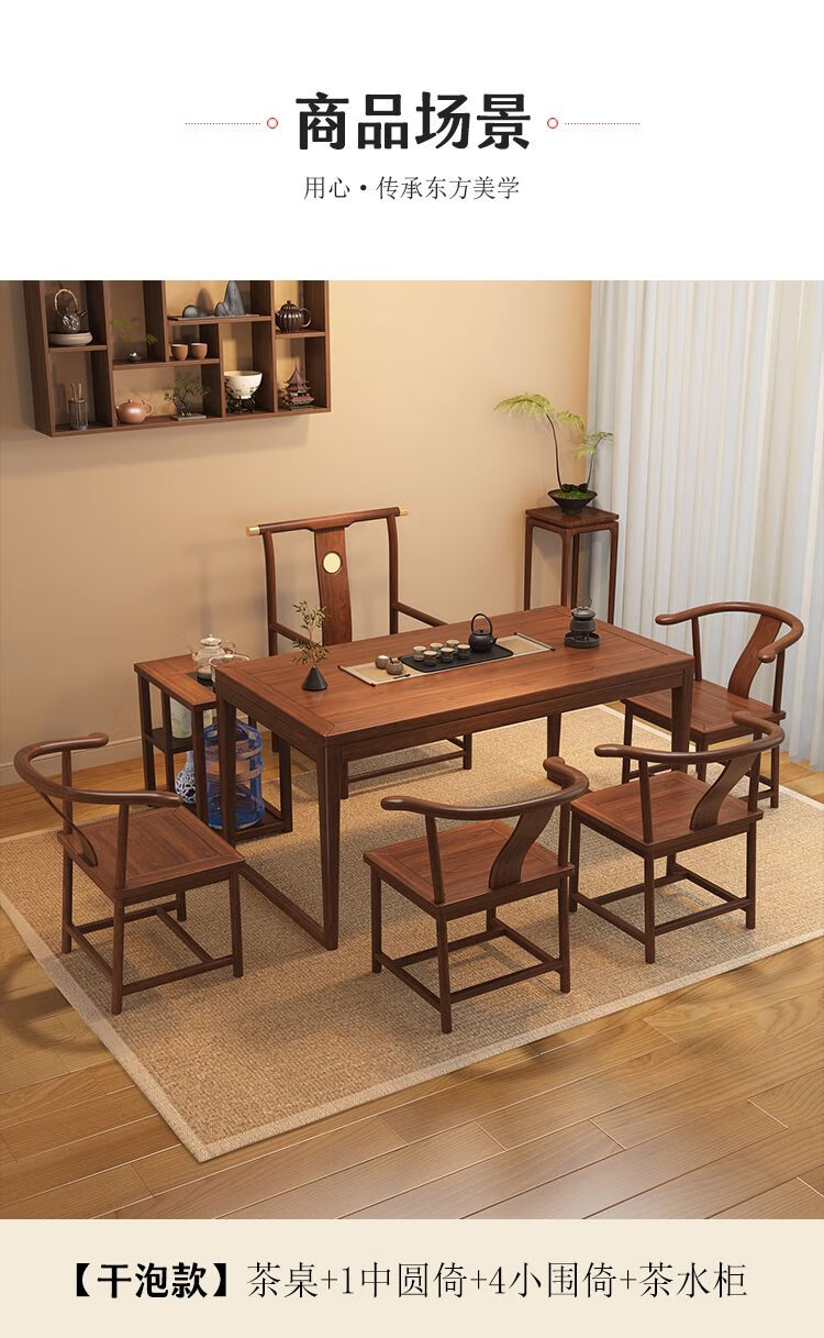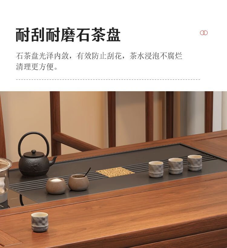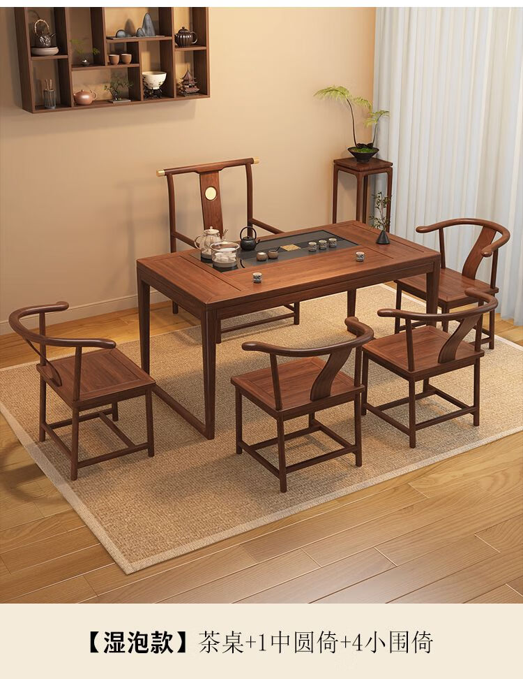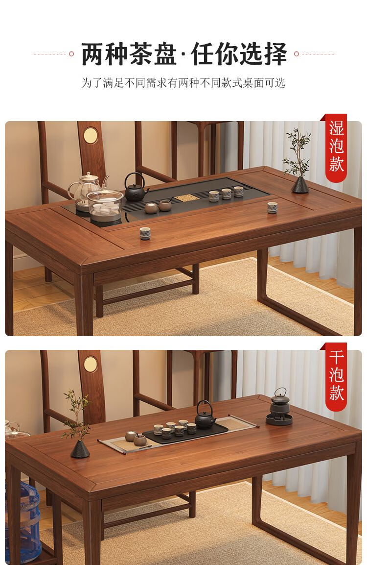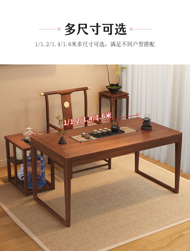 迈途森胡桃木茶台阳台小型实木茶桌椅组合客厅家用小茶台简约功夫茶几 1米素茗平面款+1中圆椅2元宝凳+茶水柜 送货上门