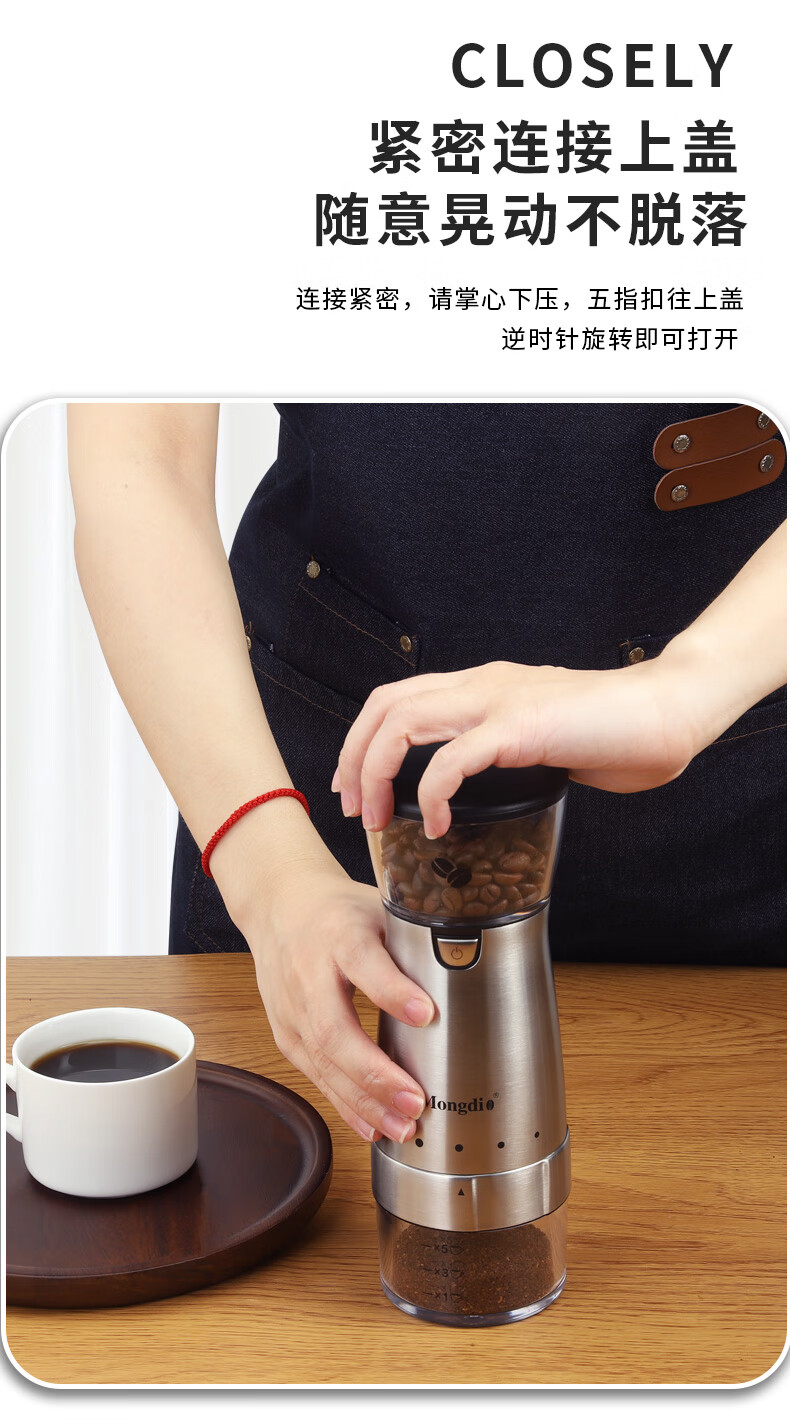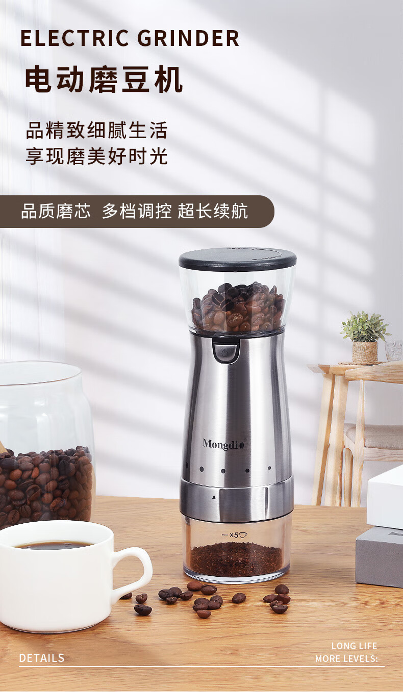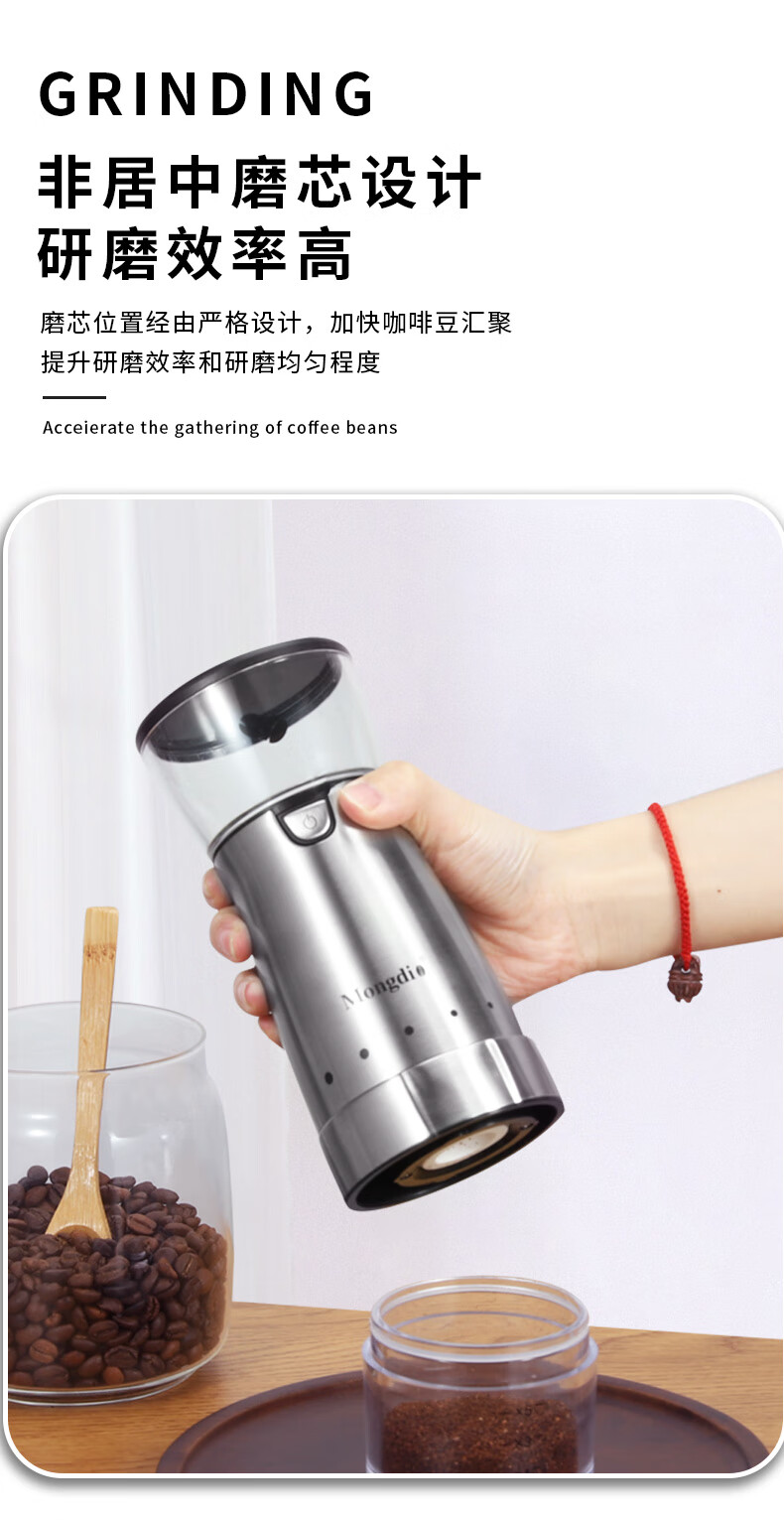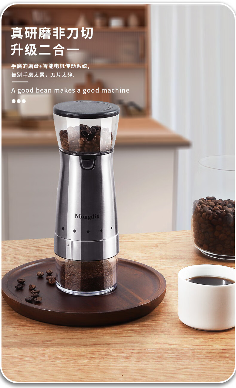 WCZ德国电动磨豆机咖啡豆研磨机咖啡磨豆机家用小型手磨咖啡机意式研 【充电版科技银】 陶瓷磨芯.