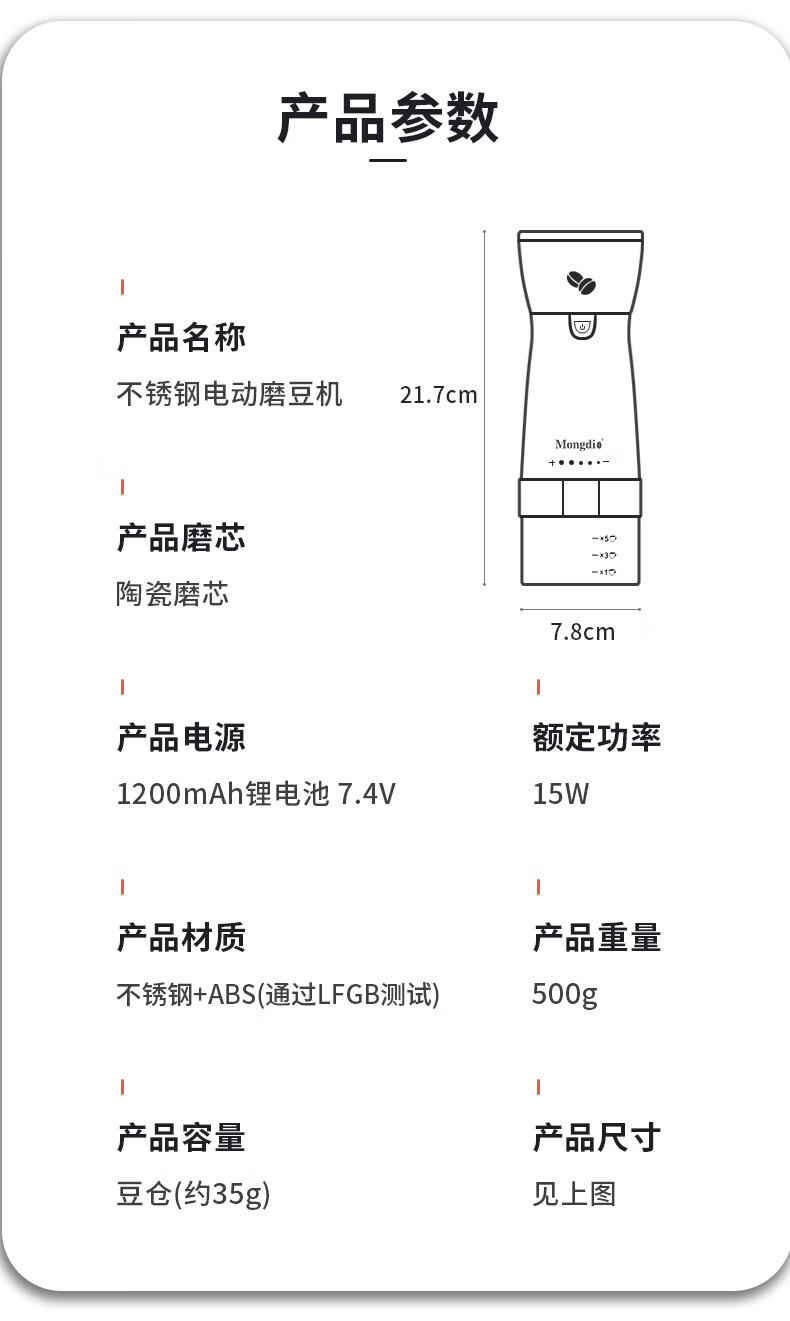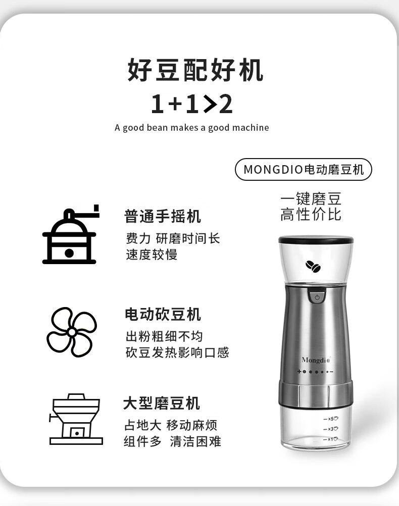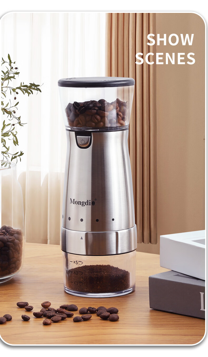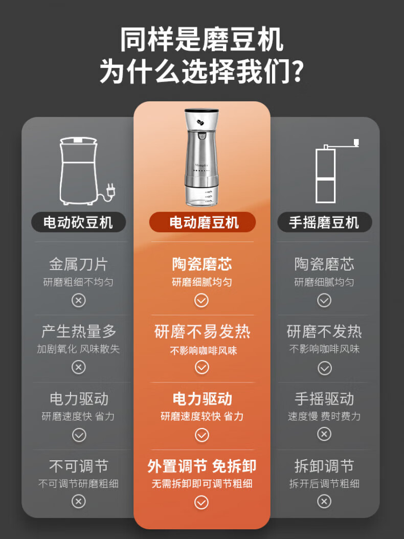 WCZ德国电动磨豆机咖啡豆研磨机咖啡磨豆机家用小型手磨咖啡机意式研 【充电版科技银】 陶瓷磨芯.