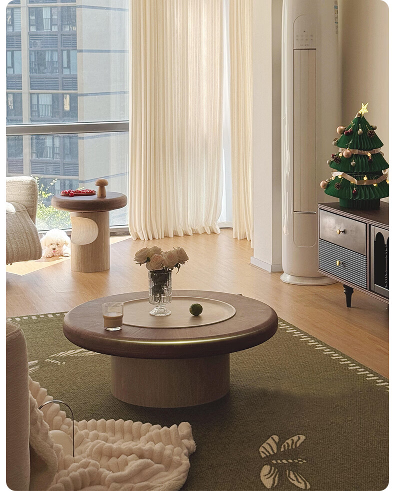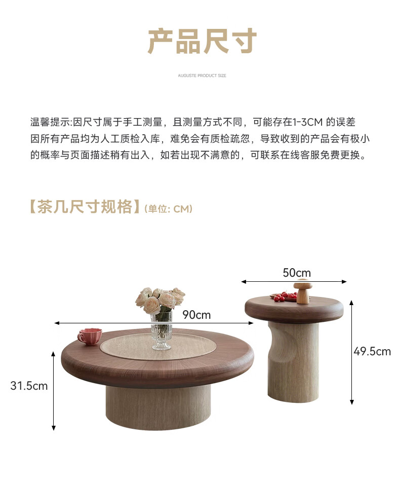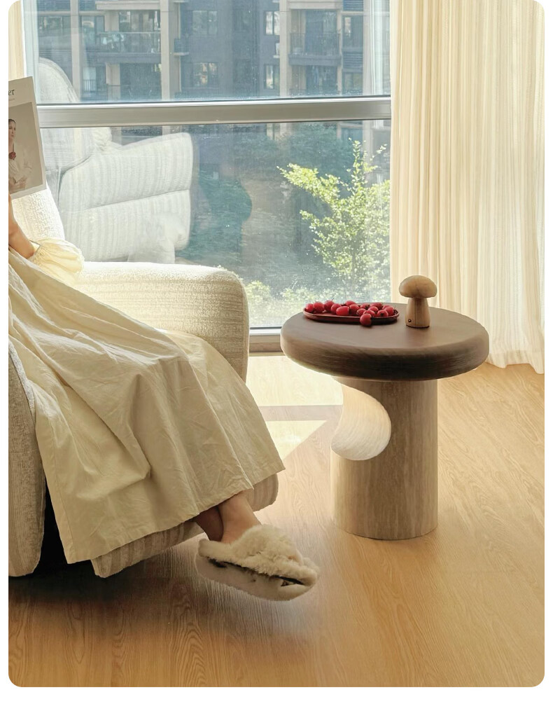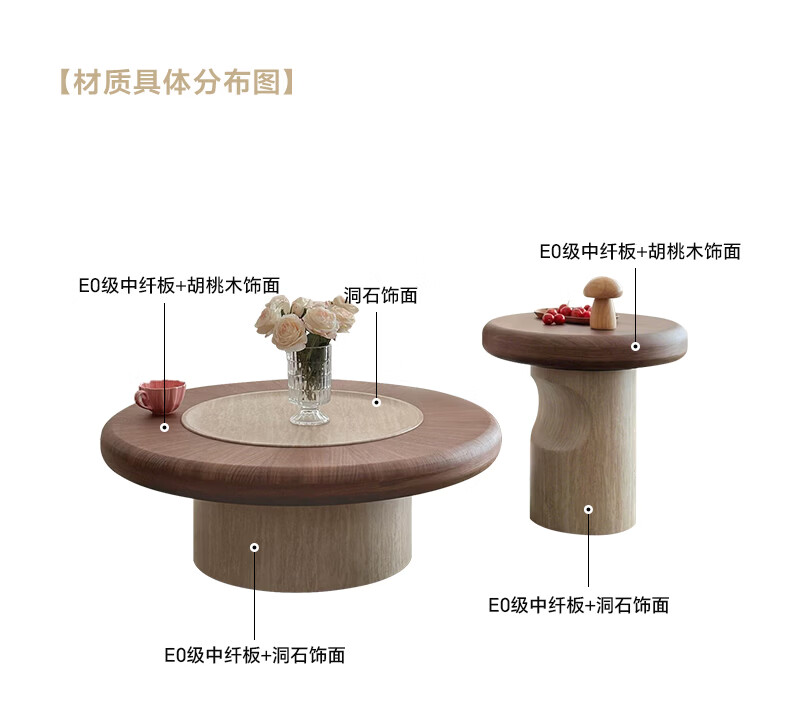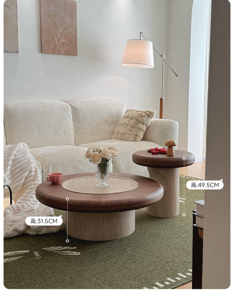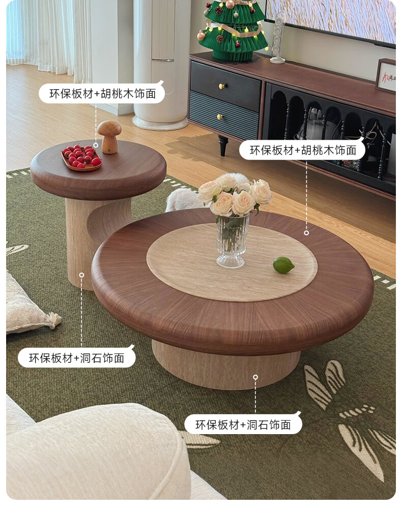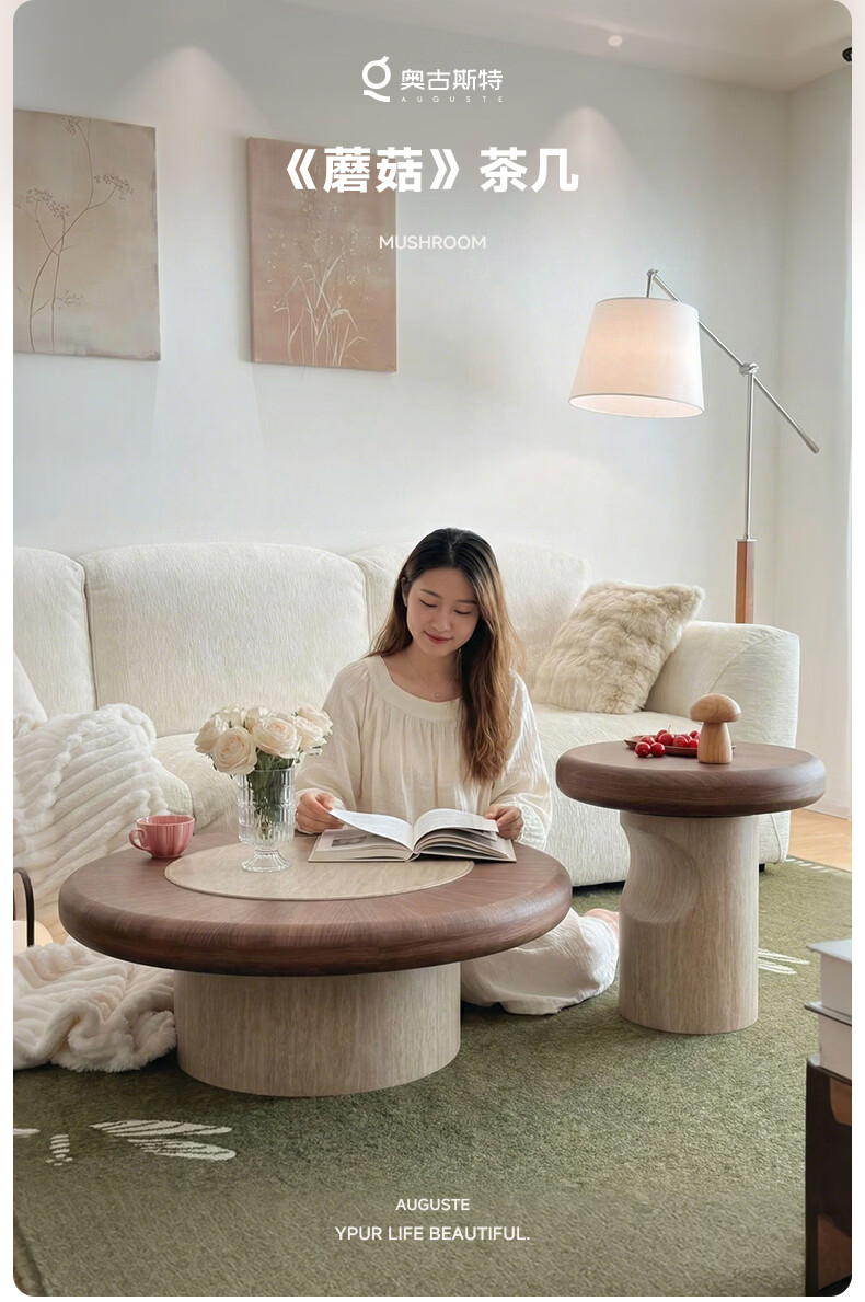 AUGUSTE奥古斯特蘑菇茶几中古风洞石圆形茶几2026新款小户型大小圆茶几 蘑菇大小圆茶几组合*1