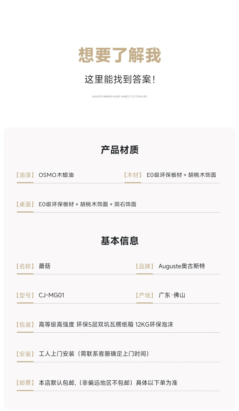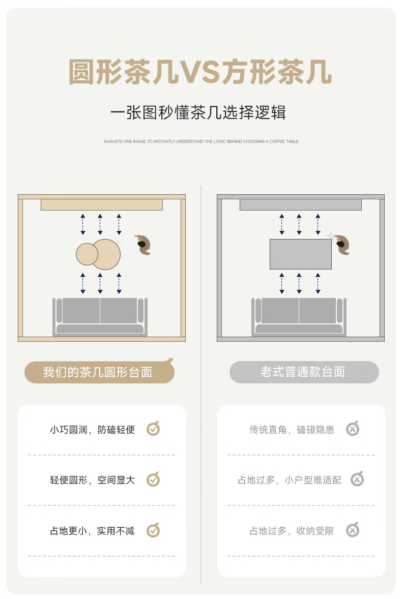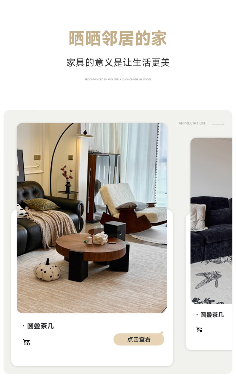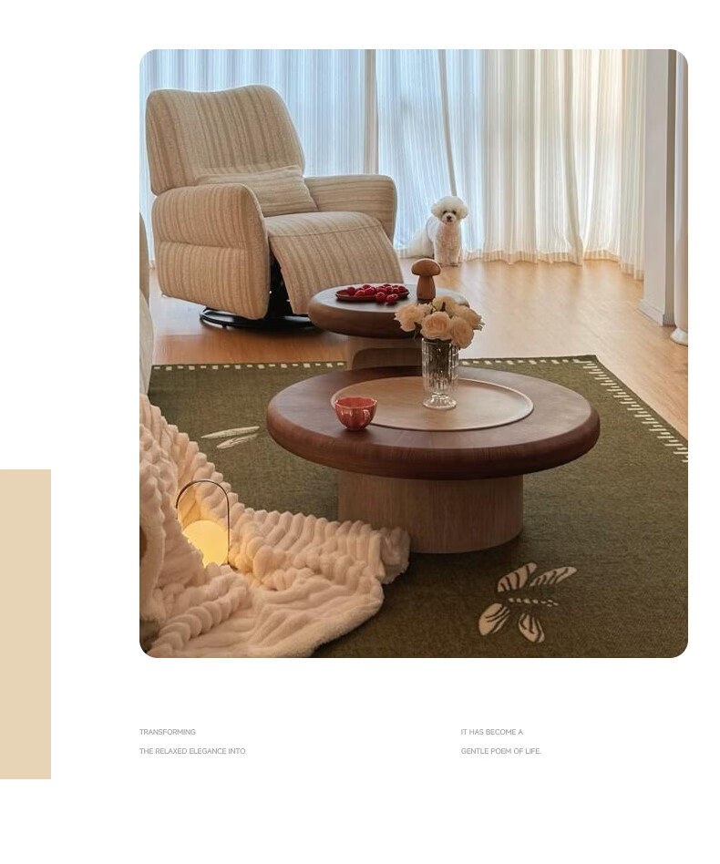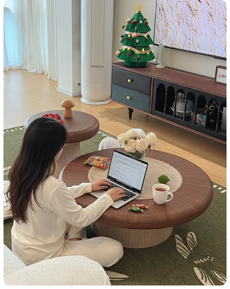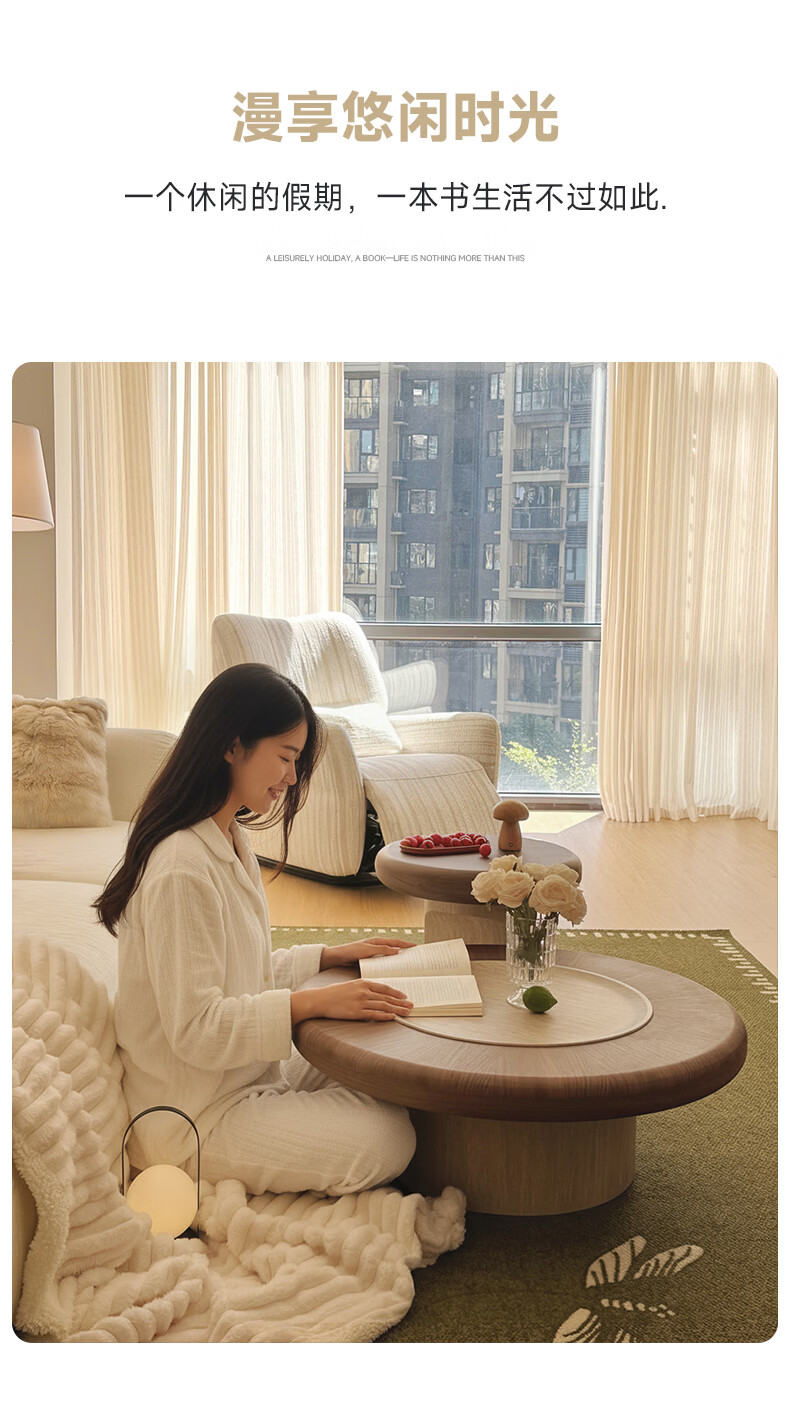AUGUSTE奥古斯特蘑菇茶几中古风洞石圆形茶几2026新款小户型大小圆茶几 蘑菇大小圆茶几组合*1