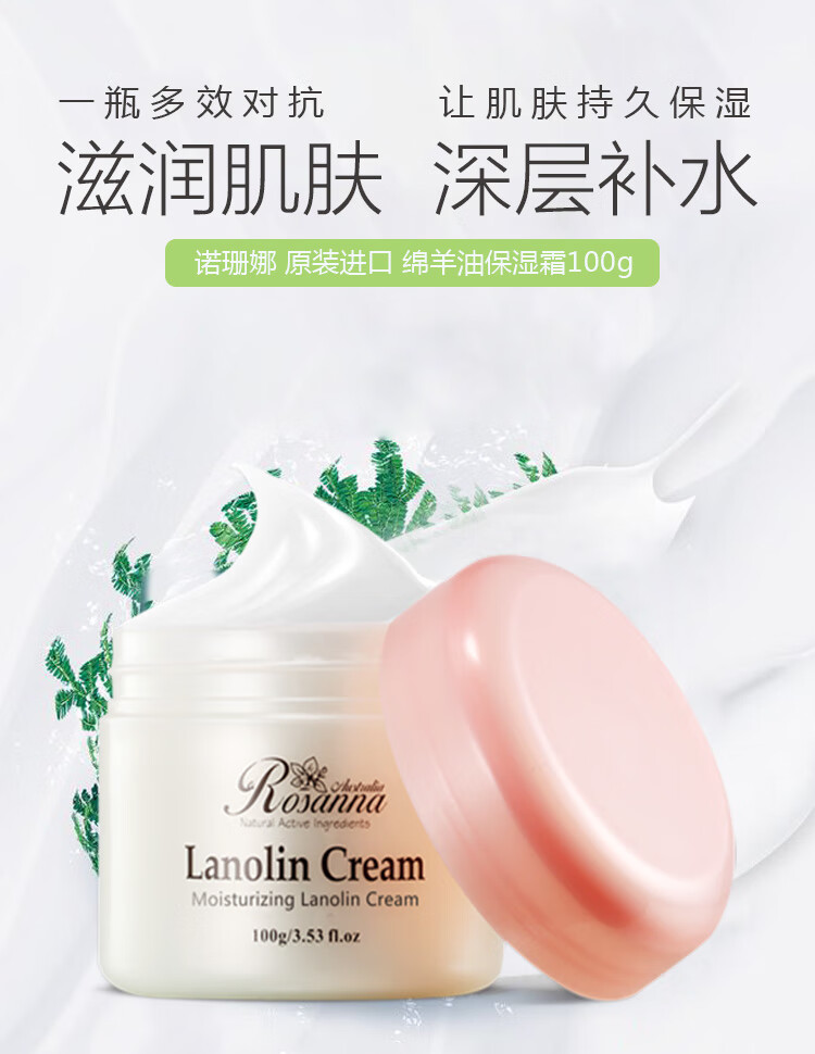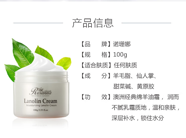 诺珊娜(larosanna)保湿霜绵羊油滋润面霜补水保湿全身不油腻 补水保湿面霜 诺珊娜绵羊油保湿霜 100g