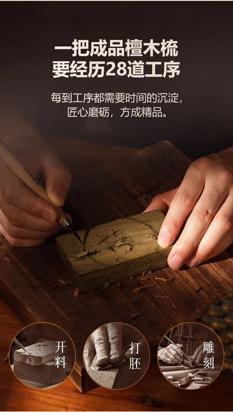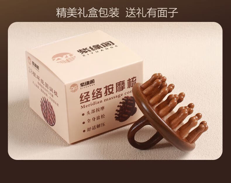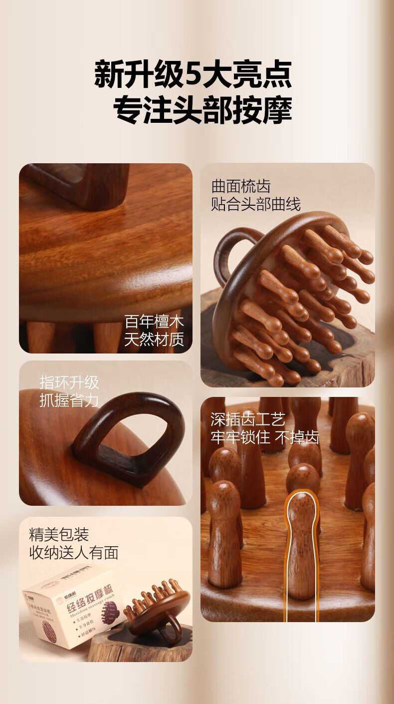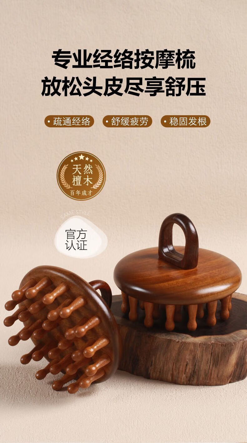 通用天然檀木圆盘按摩梳头皮经络毛囊疏通神器头疗脱发养生木梳子通用 檀木圆盘按摩梳【礼盒装】