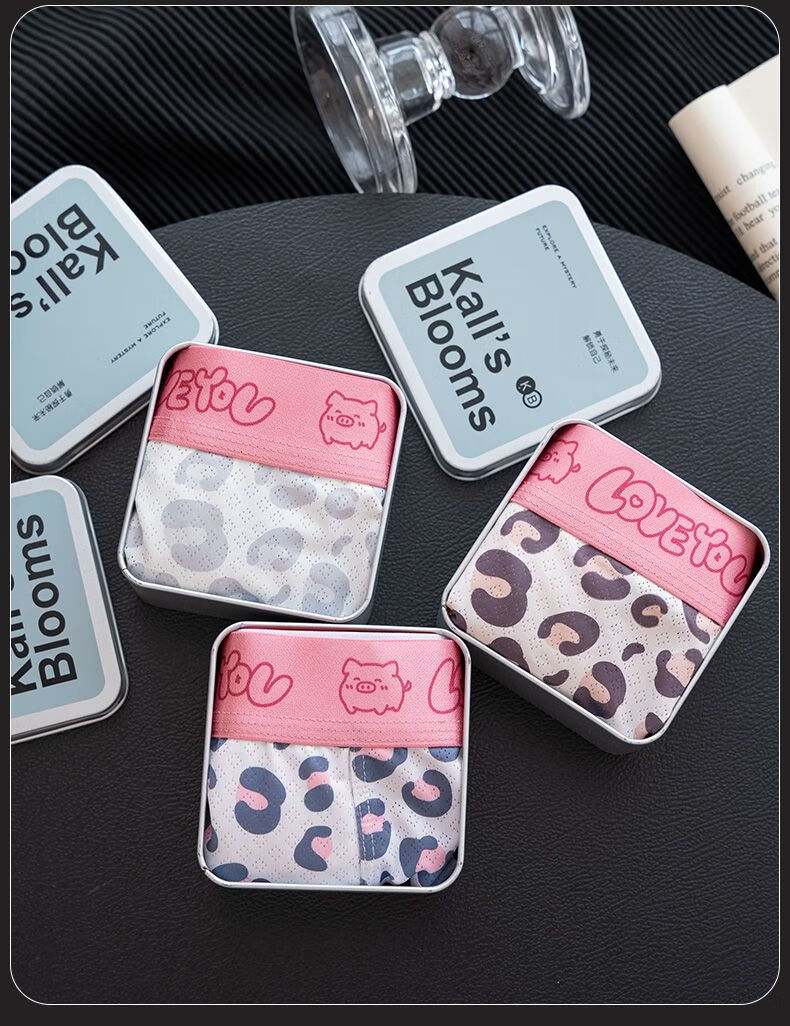 开始绽放(KALL'S BLOOMS)【礼盒装】KT内裤*冰丝男士内裤10A抗菌卡通可爱粉 红盒:豹堤粉+豹堤灰+堤棕+堤墨 2XL 建议体重125-145斤
