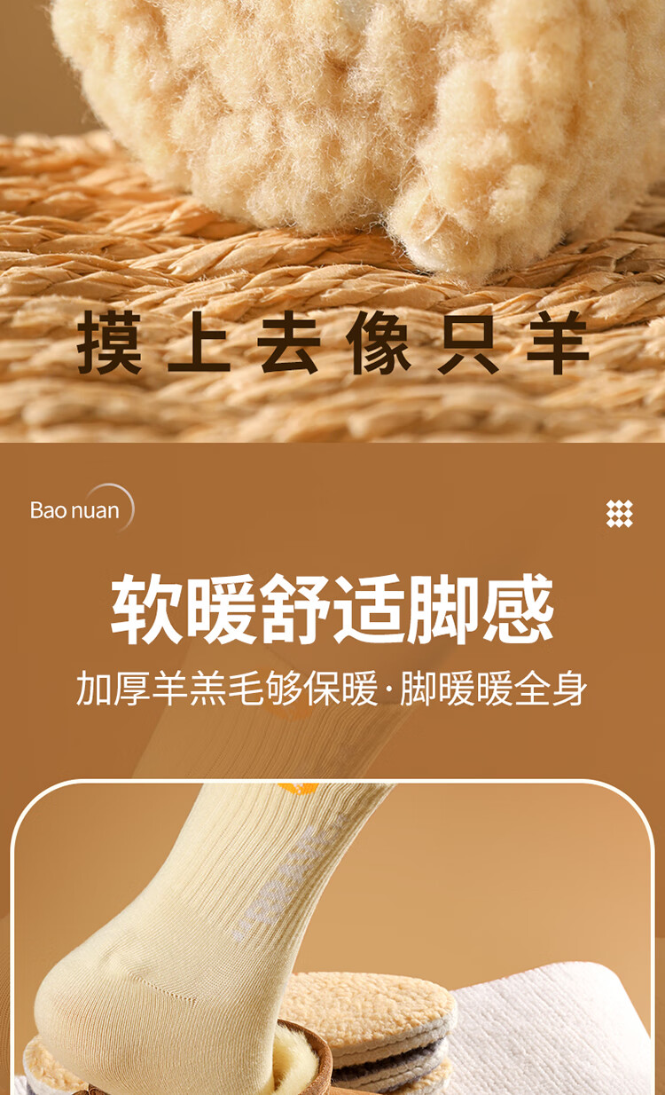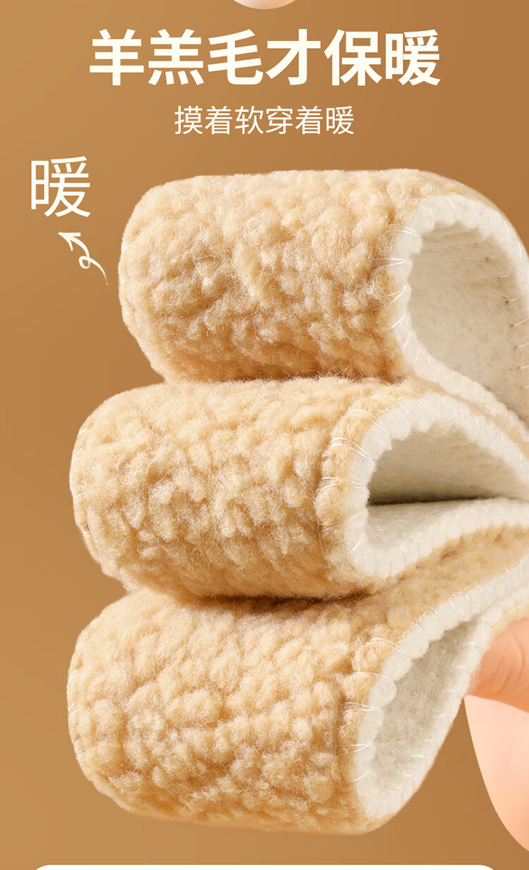 足印部落羊毛保暖鞋垫男款加绒加厚羊羔绒冬季防寒皮毛一体毛毡棉鞋垫女 3双装-暖咖】加厚羊羔毛保暖 43码