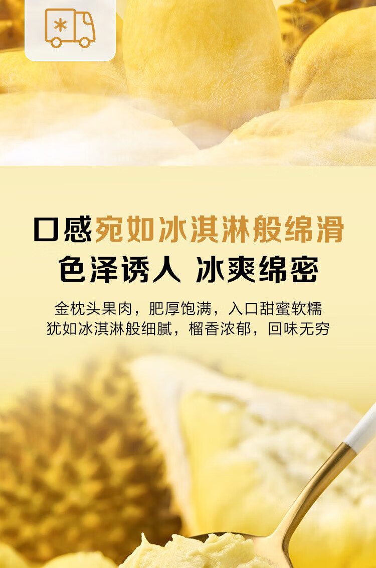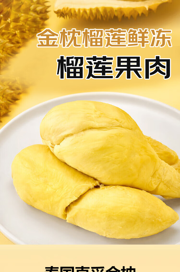 泰国金枕榴莲肉1000g液氮冷冻保鲜独立包装方便即食自然树熟批发 净重1000g手剥榴莲肉【带核】