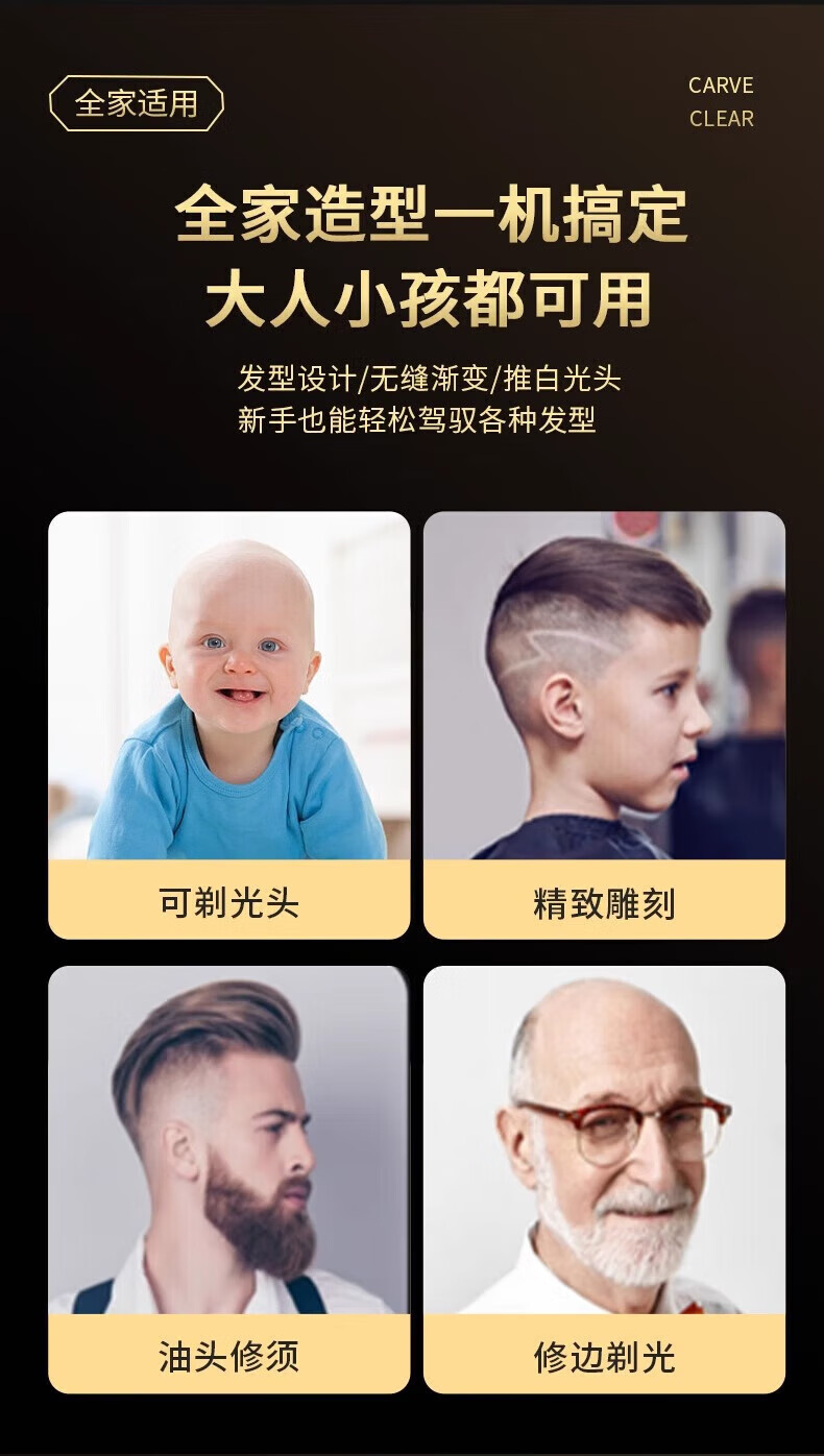 飞利浦(PHILIPS)同款理发神器自理发器剃头理发推子剃头神器男士专用光头神器电动刮胡刀剃须刀 电动理发器[数显款]